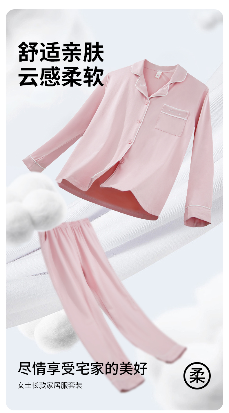 雅黛丽全棉睡衣女春秋季2023新透气长袖长裤可外穿家居服套装