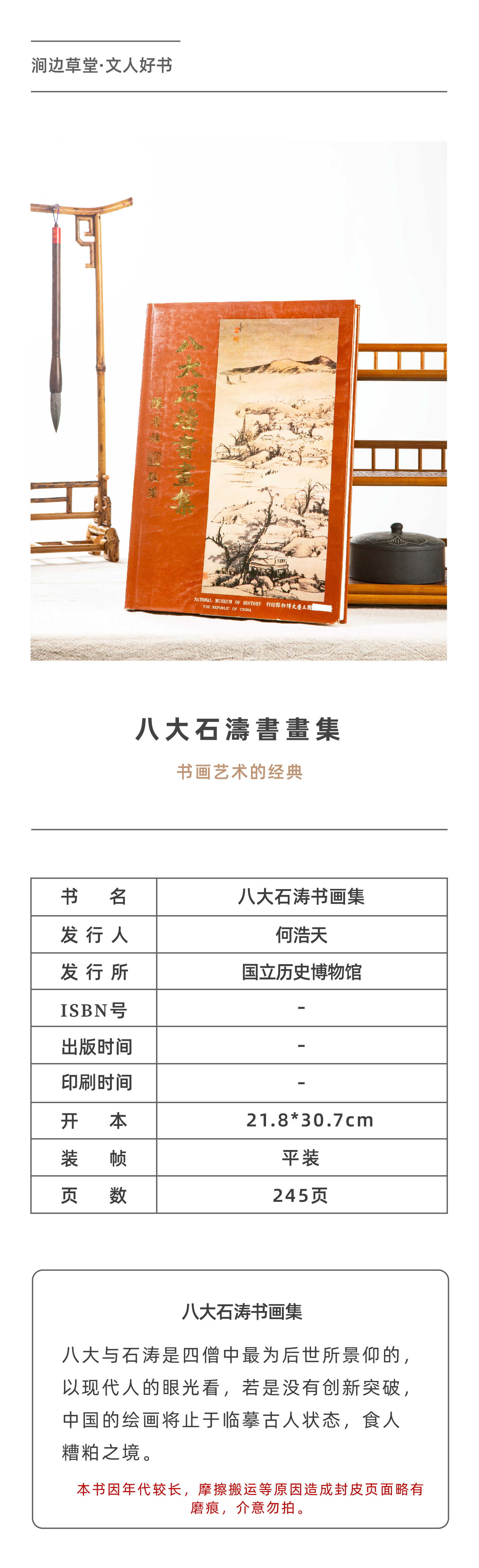 【绝版好书】《八大石涛书画集》16开精装245页,1984年国立历史博物馆初版,收录纽约大都会博物馆、王季迁、王方宇藏品,