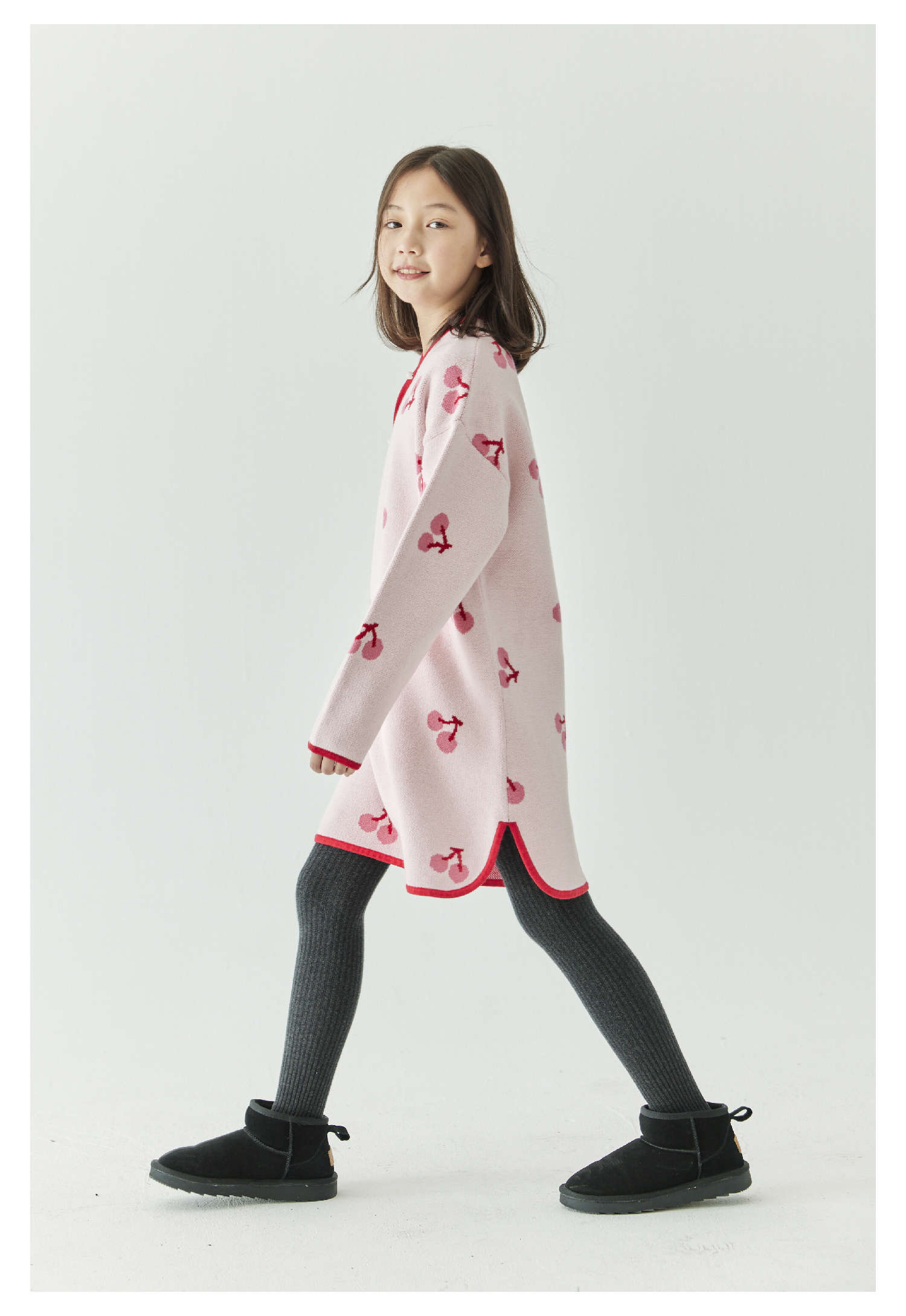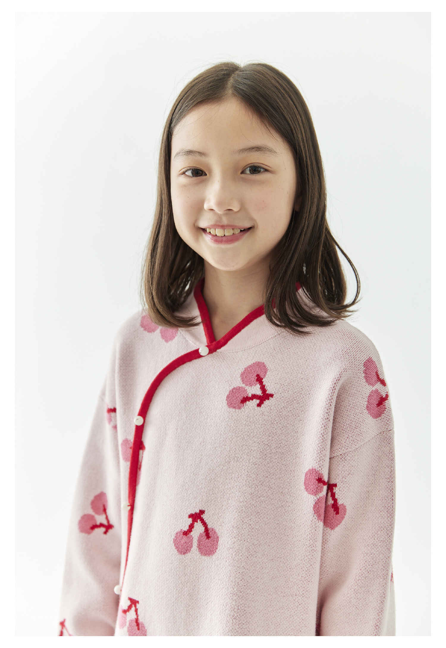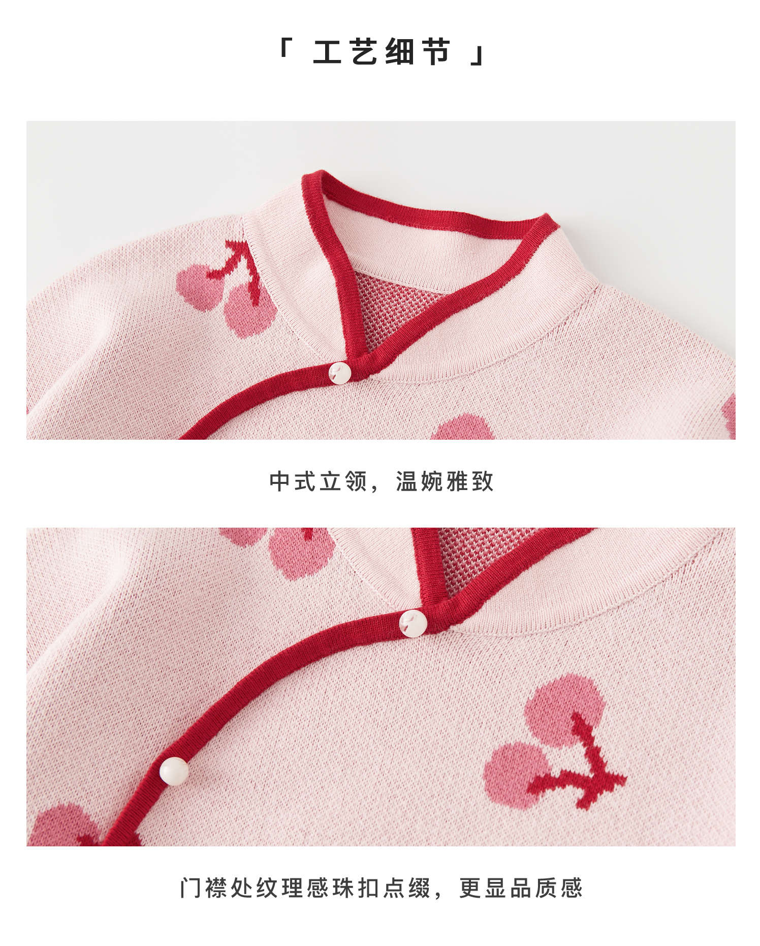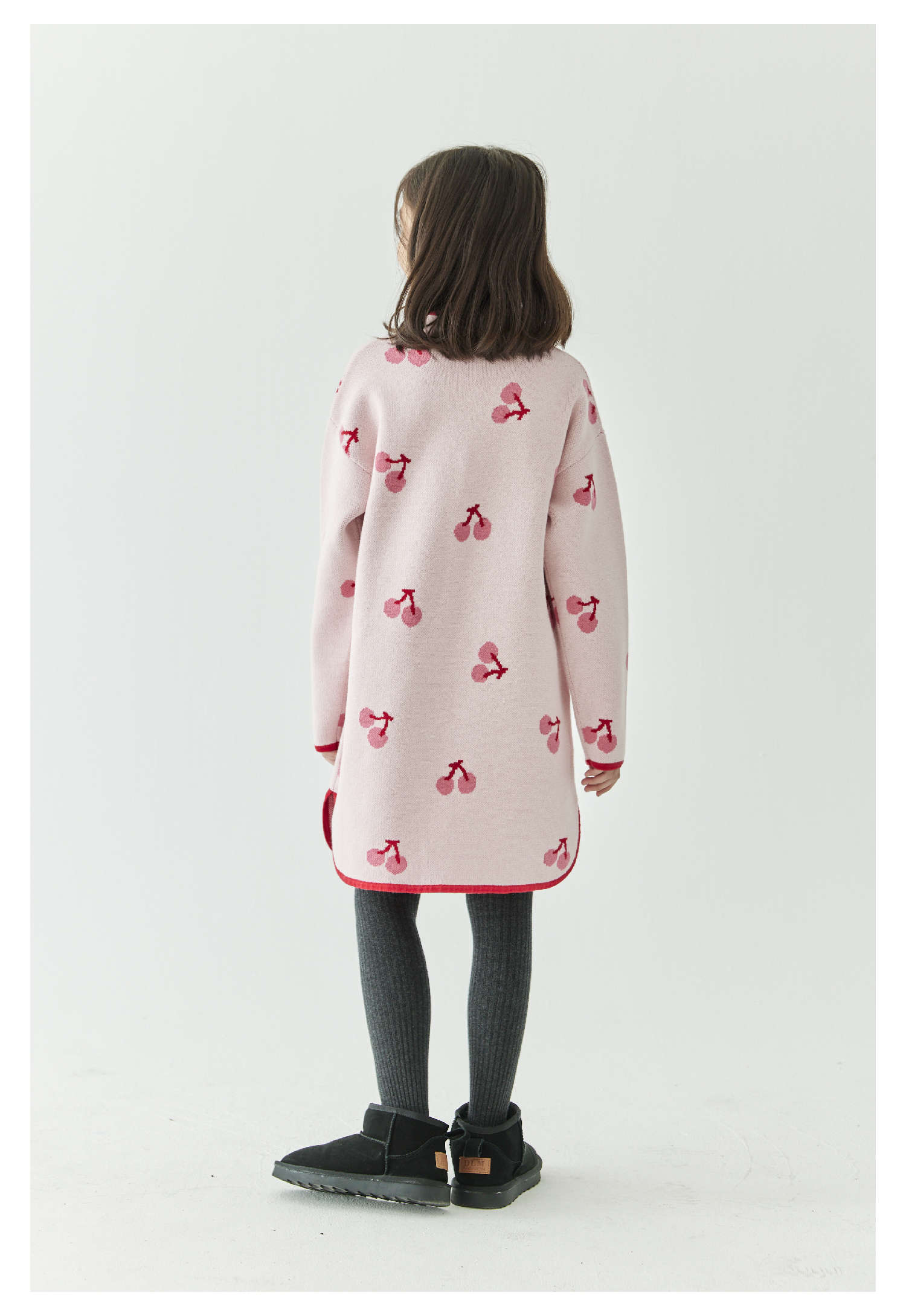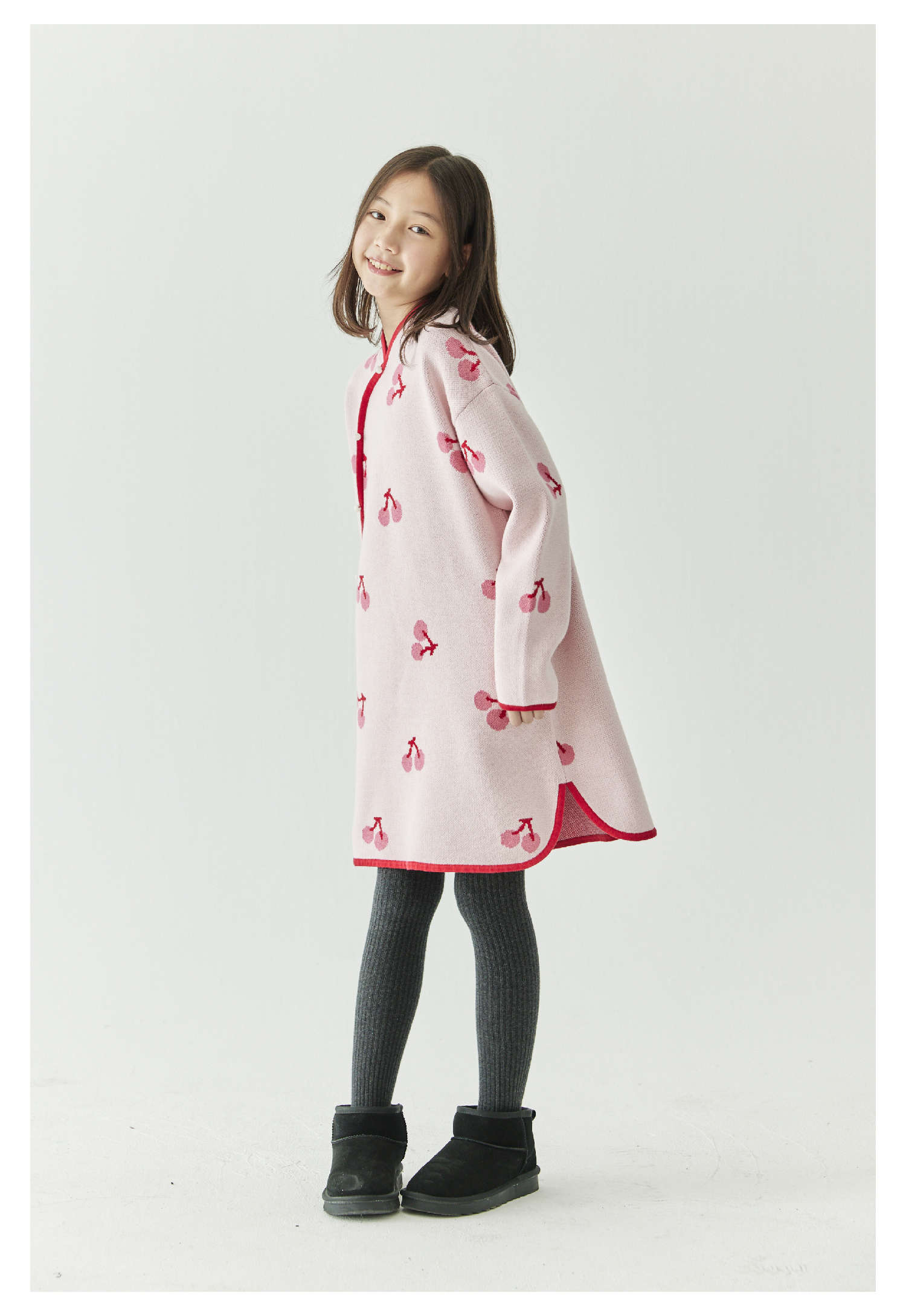 棵初2024年冬季新款女童新中式全棉针织旗袍裙甜美俏皮樱桃连衣裙