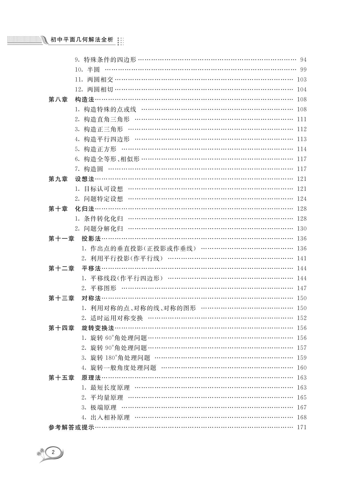 全书分15章全面介绍了平面几何的解题方法,每一种方法均配以充足的例题和练习进行知识巩固,并附以详细的解答过程。书中涵盖的知识内容由浅入深,从培优到竞赛,对于参加数学竞赛的选手及辅导教师有实际帮助,对于广大平面几何爱好者而言更是值得收藏的书籍。