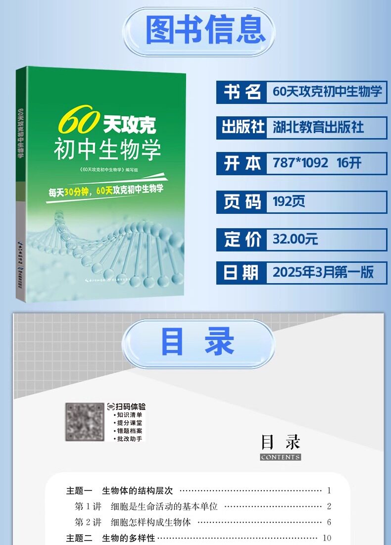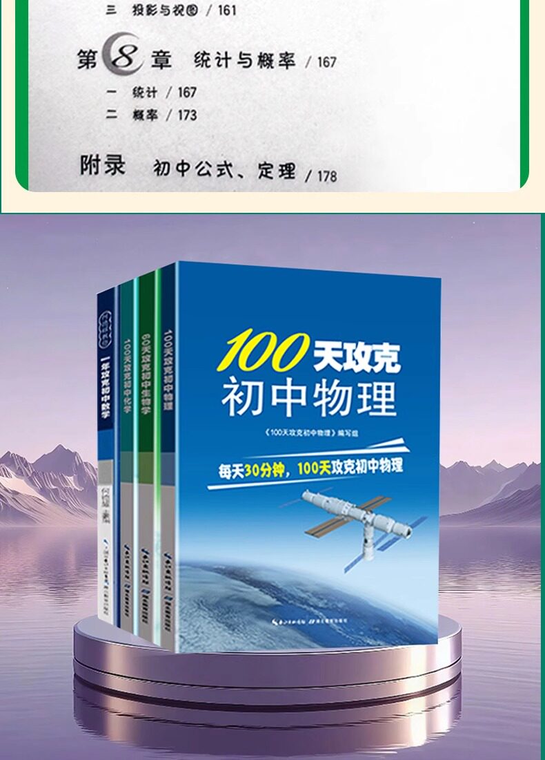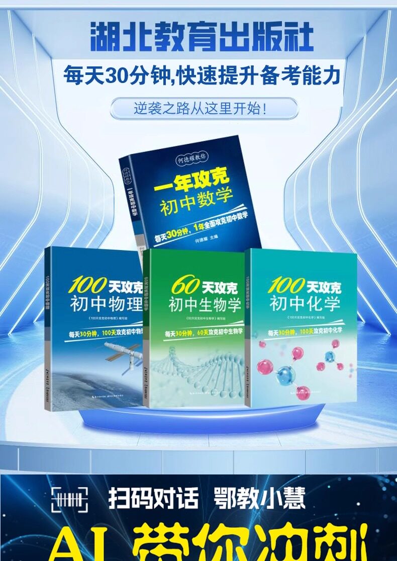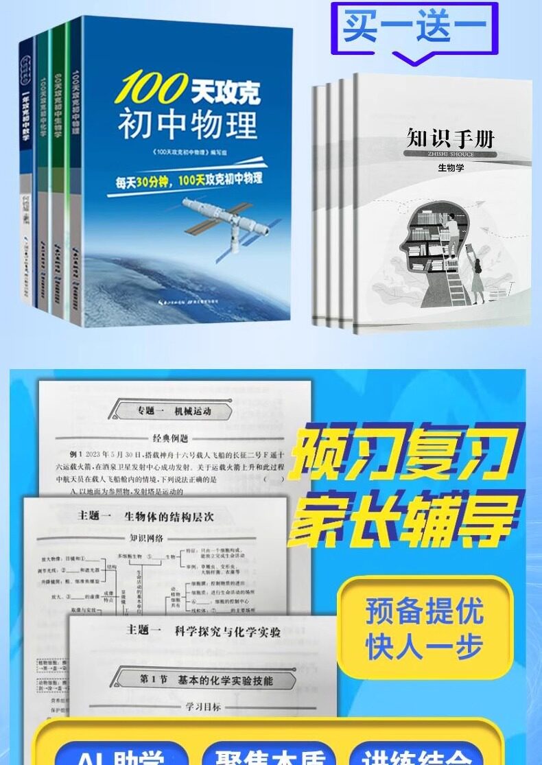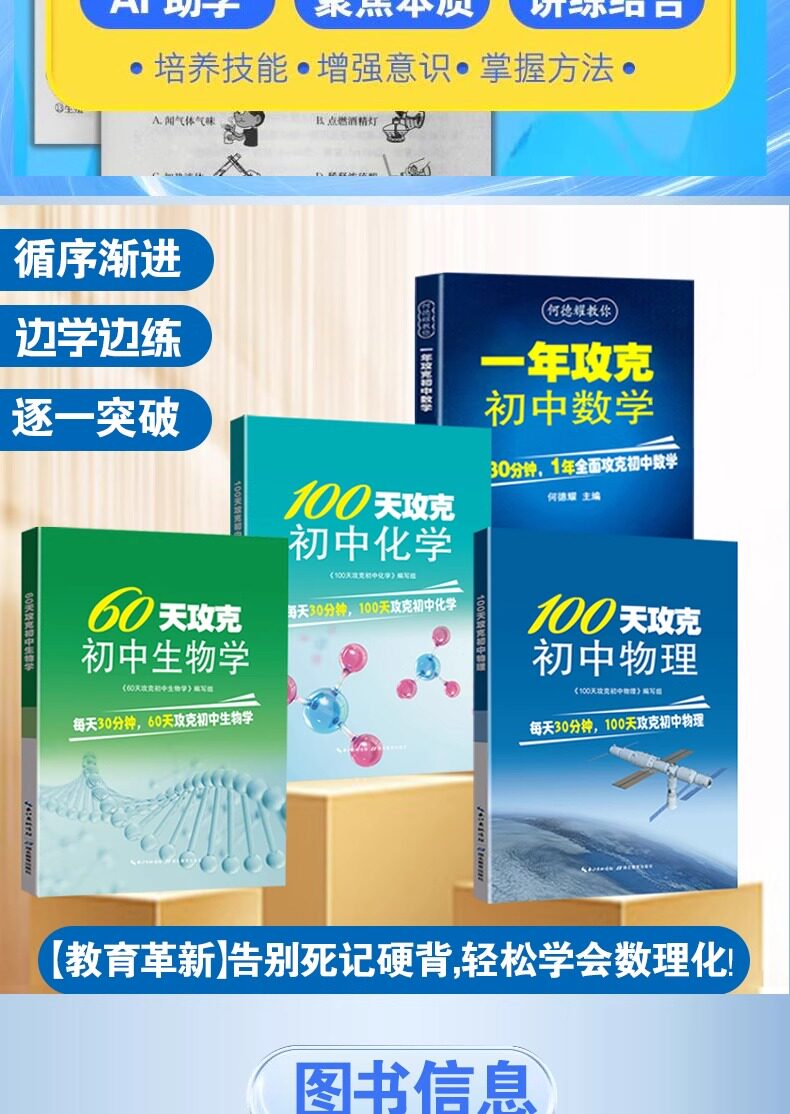 初中教辅一年攻克初中数学60天攻克初中生物学100天攻克初中物理