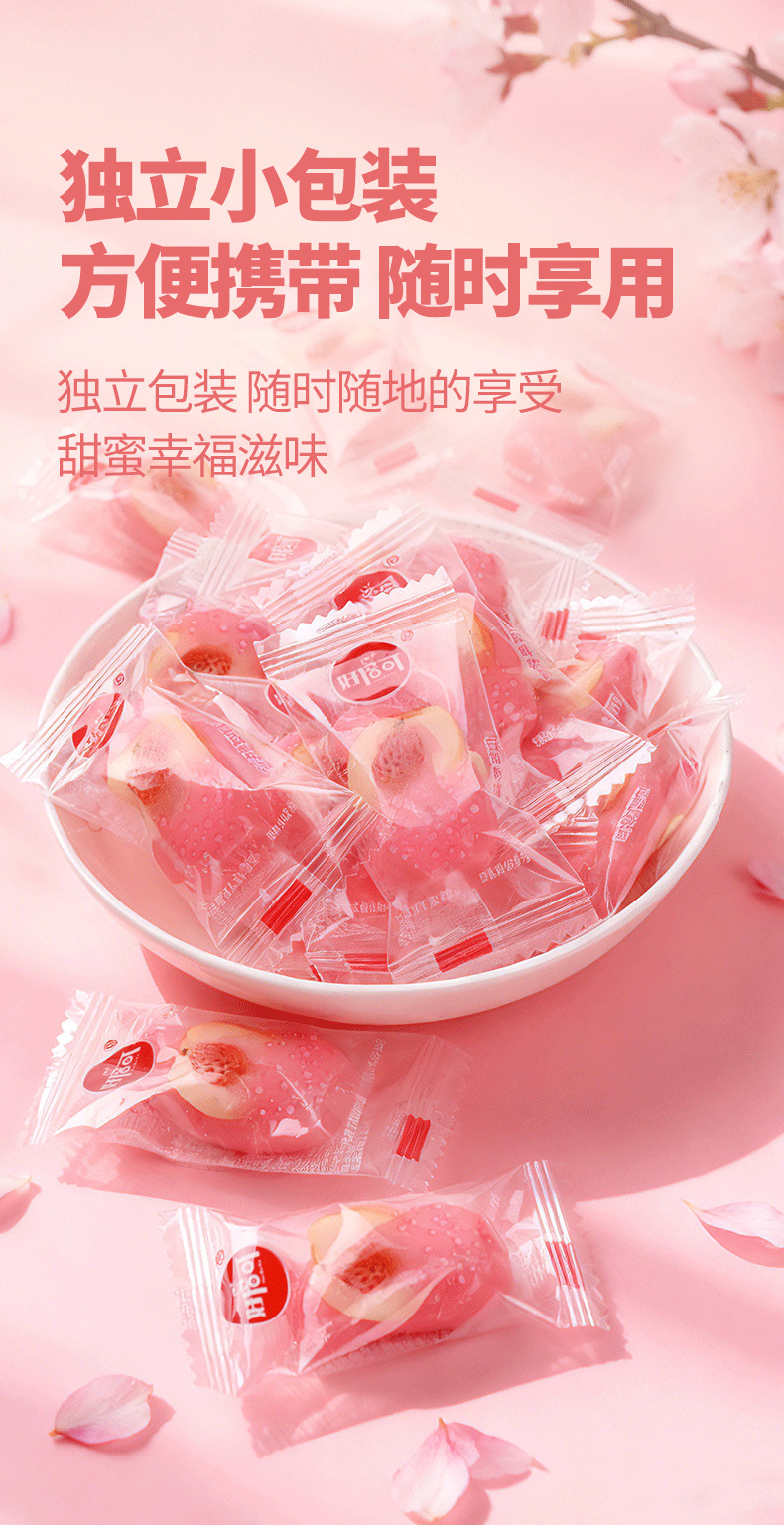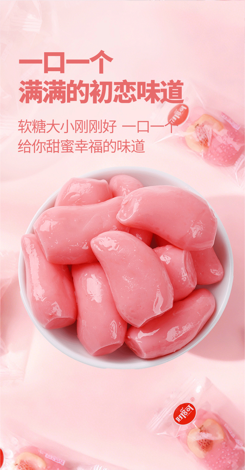 【果香四溢!软糯Q弹】白桃果汁软糖500g袋装网红高颜值休闲零食结婚订婚伴手礼喜糖.xb