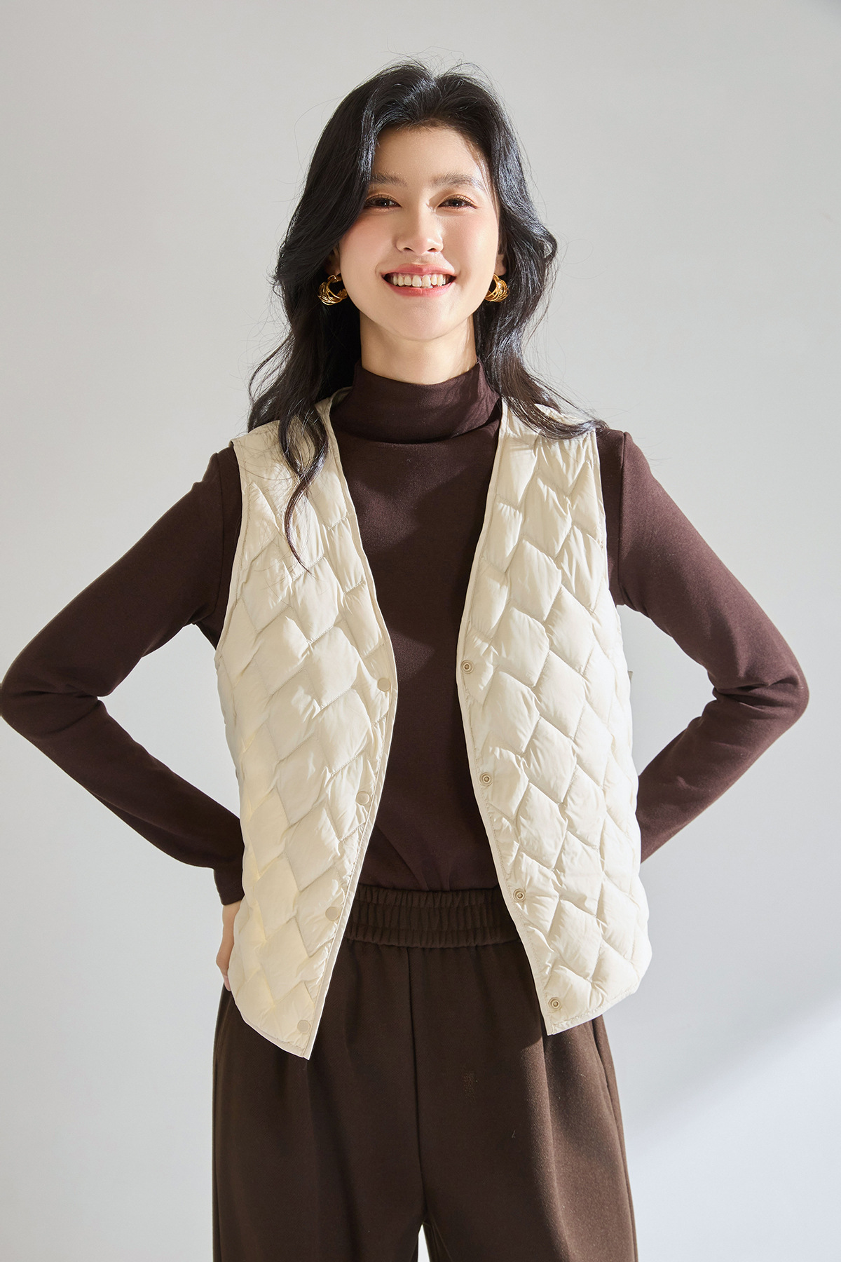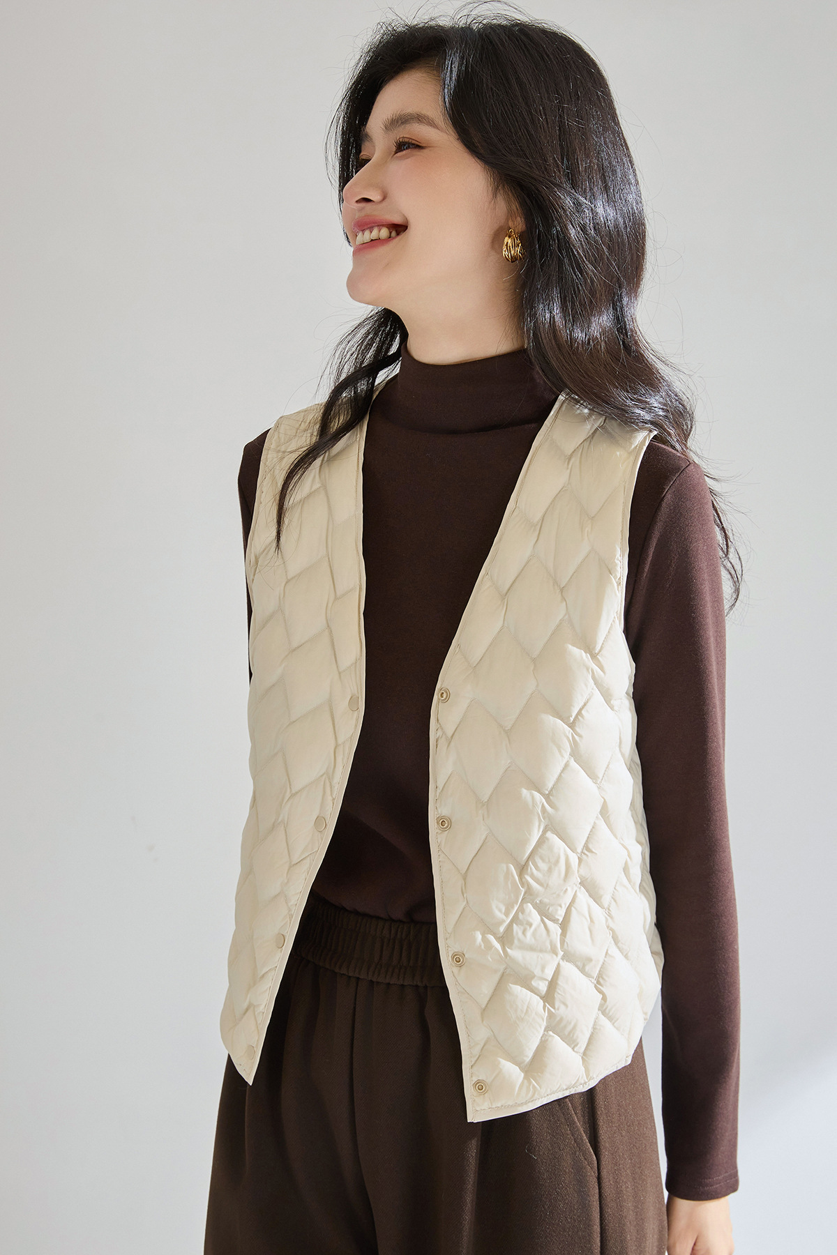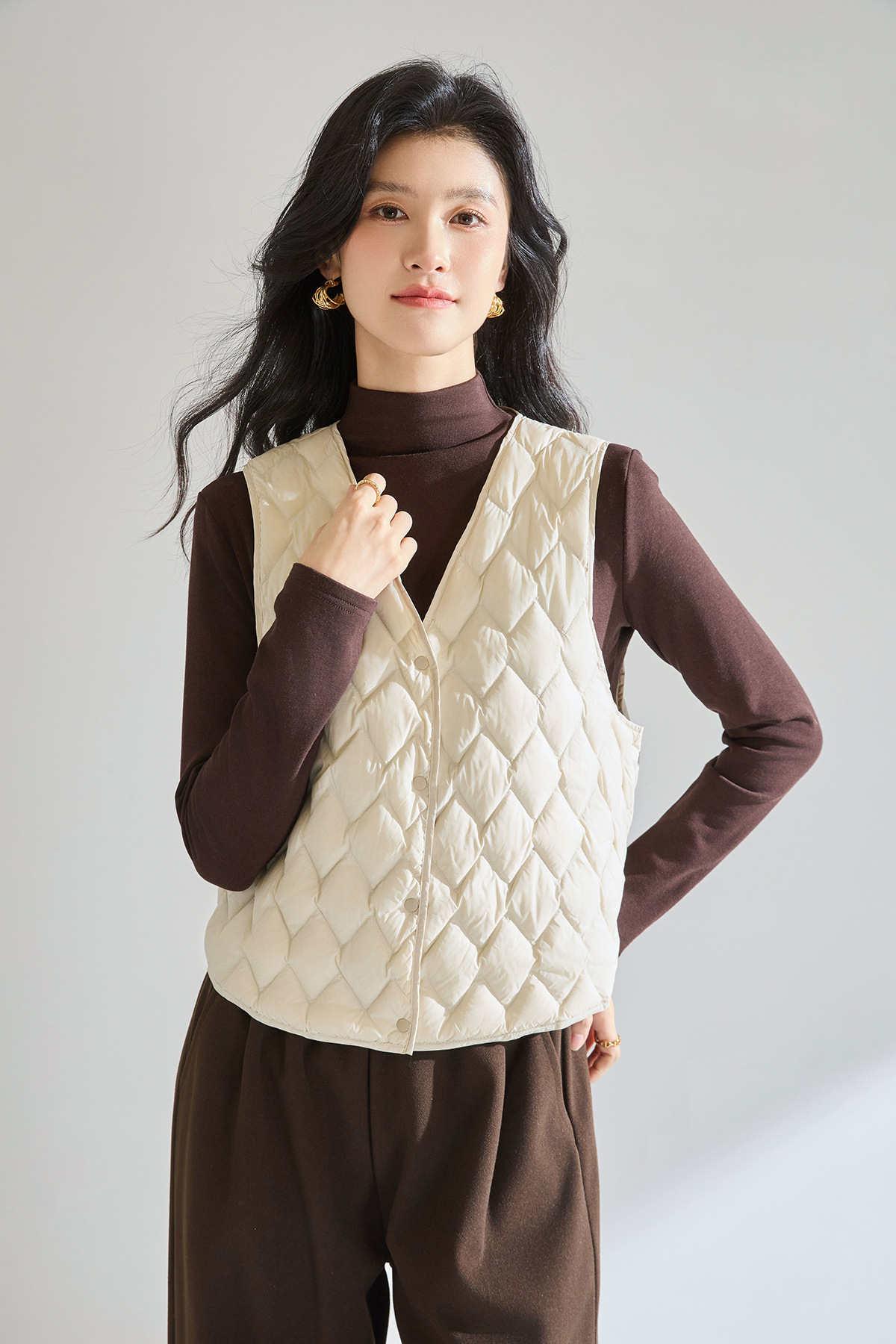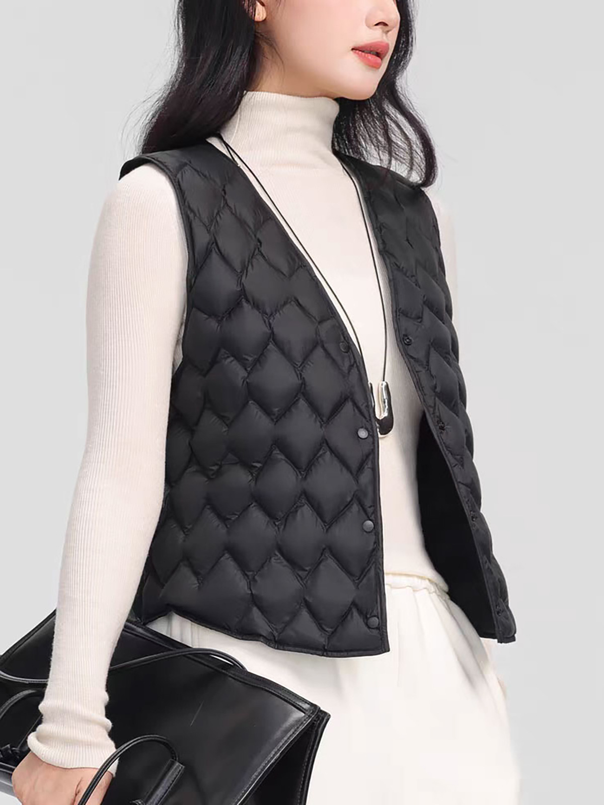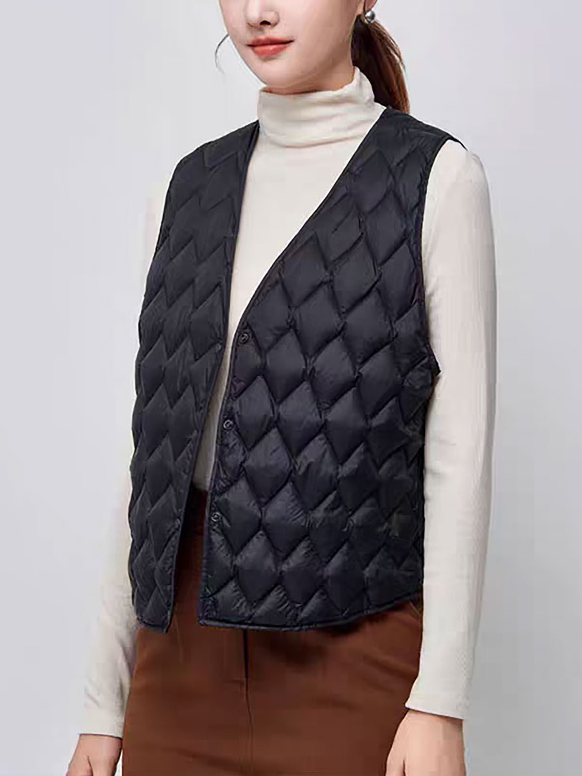 「高货sh」全新升级【铂金会员211/天猫279/差价68】(01420)洛诗琳菱格90白鸭绒羽绒马甲2025冬季V领保暖叠穿保暖内胆