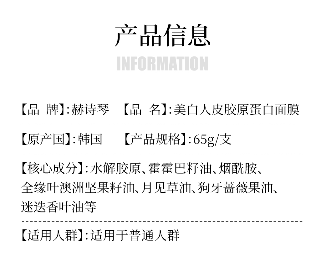 HEXKIN/赫诗琴美白人皮面膜胶原蛋白撕拉软膜紧致抗皱65g/支