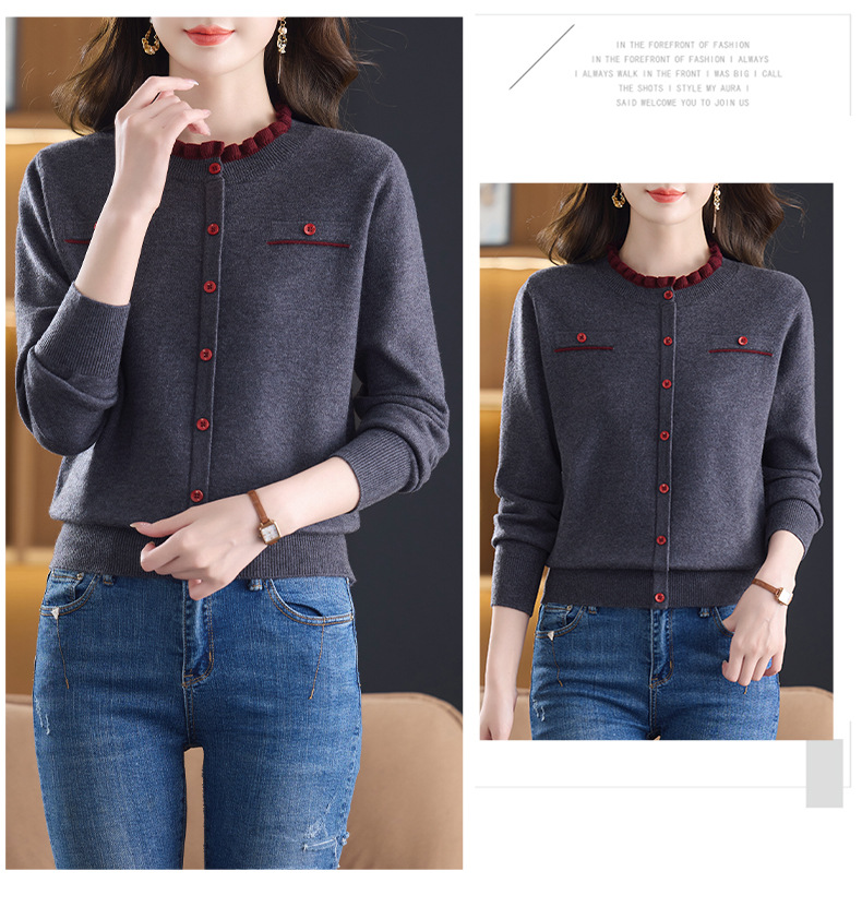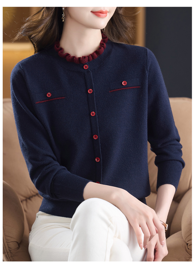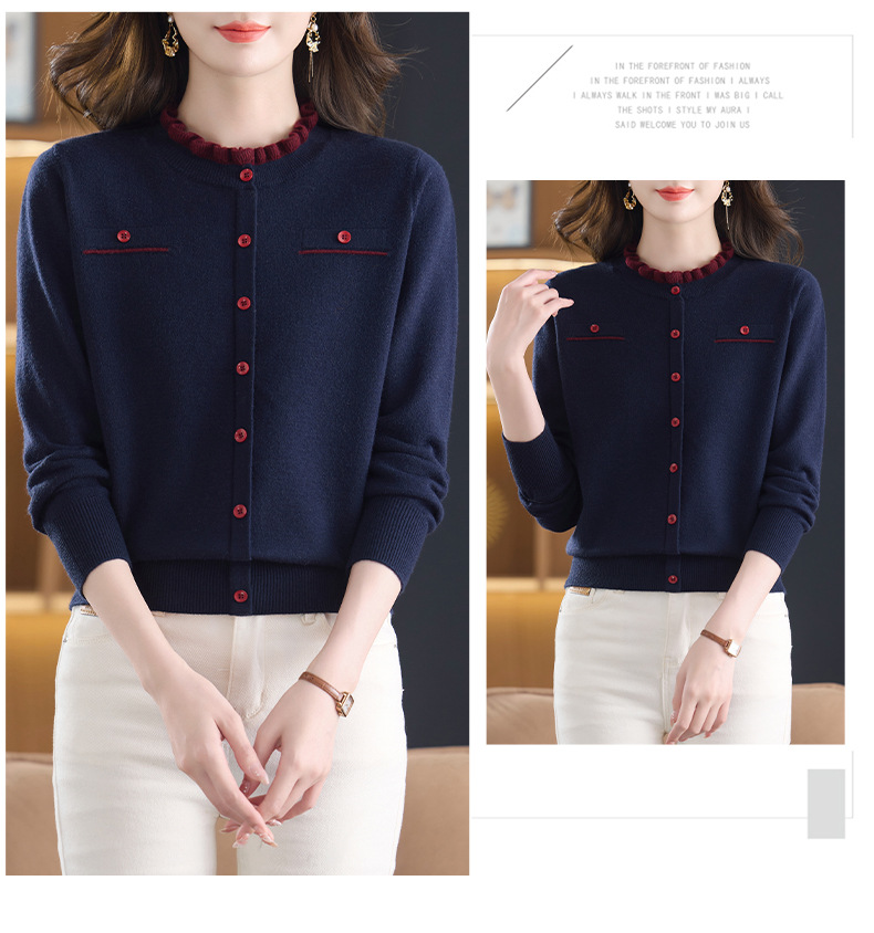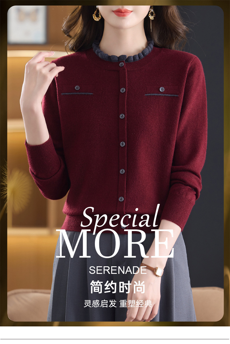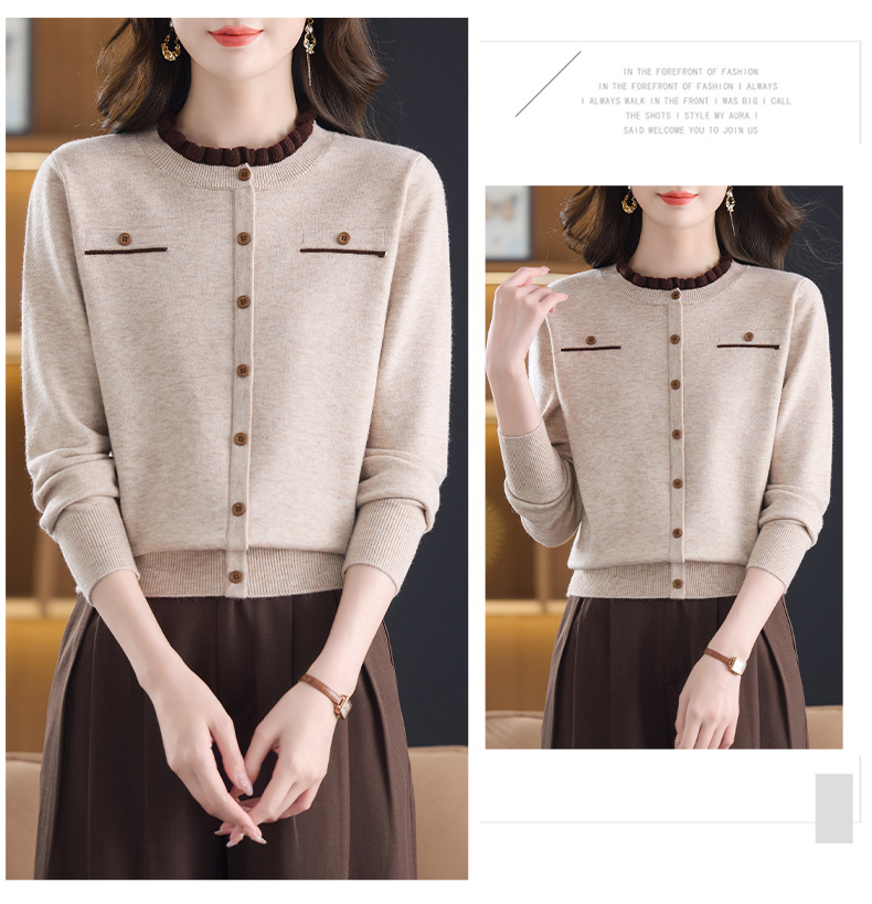 CC木耳边领毛衣女短款秋冬2025新款洋气时尚上衣针织打底衫