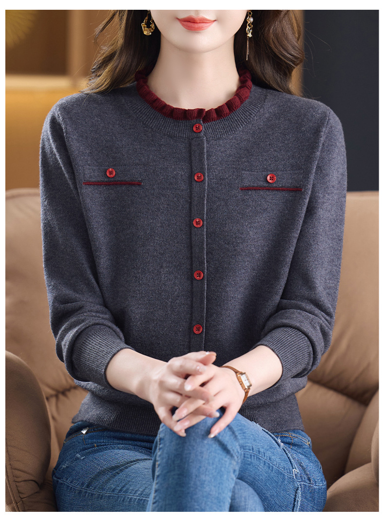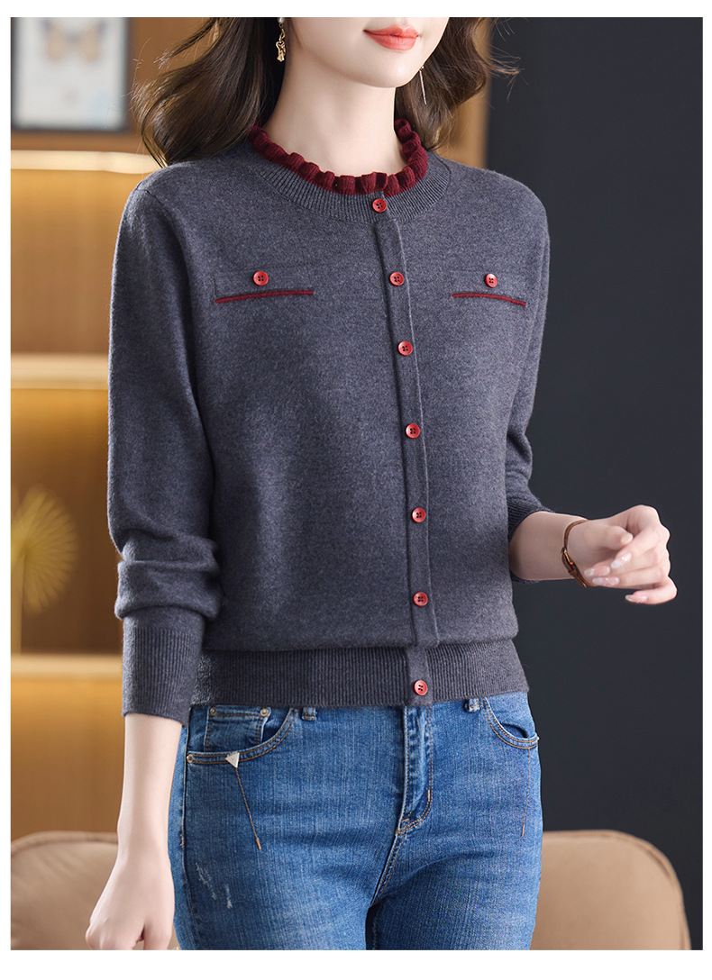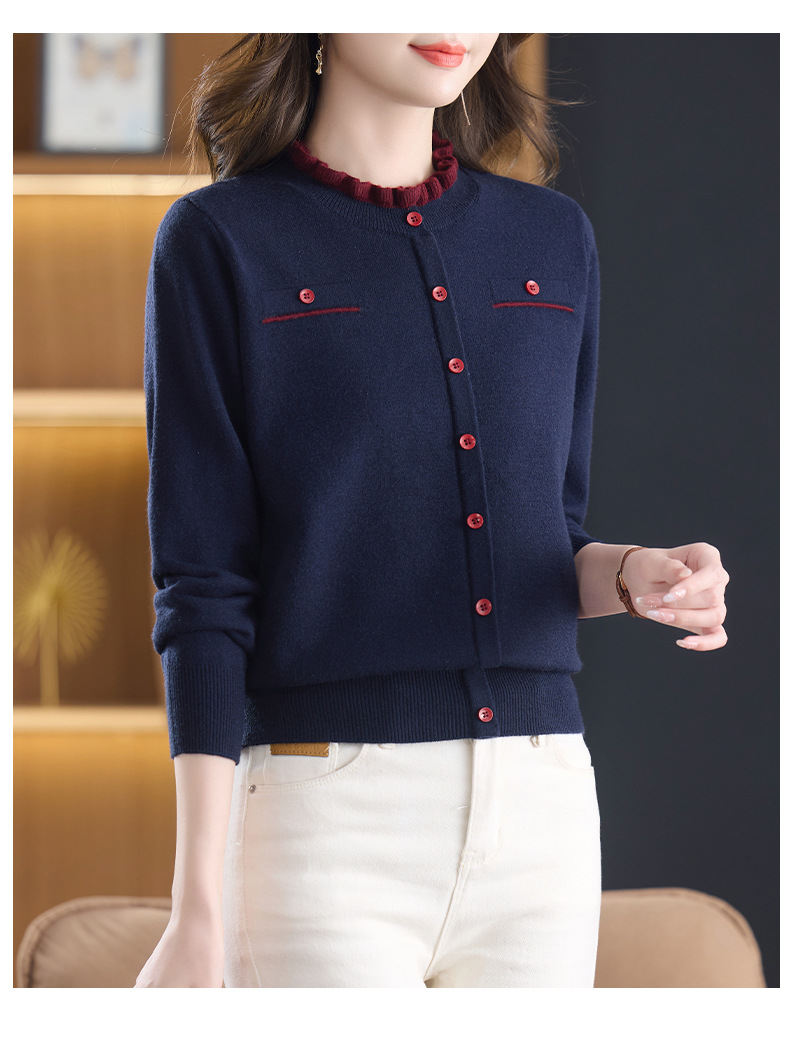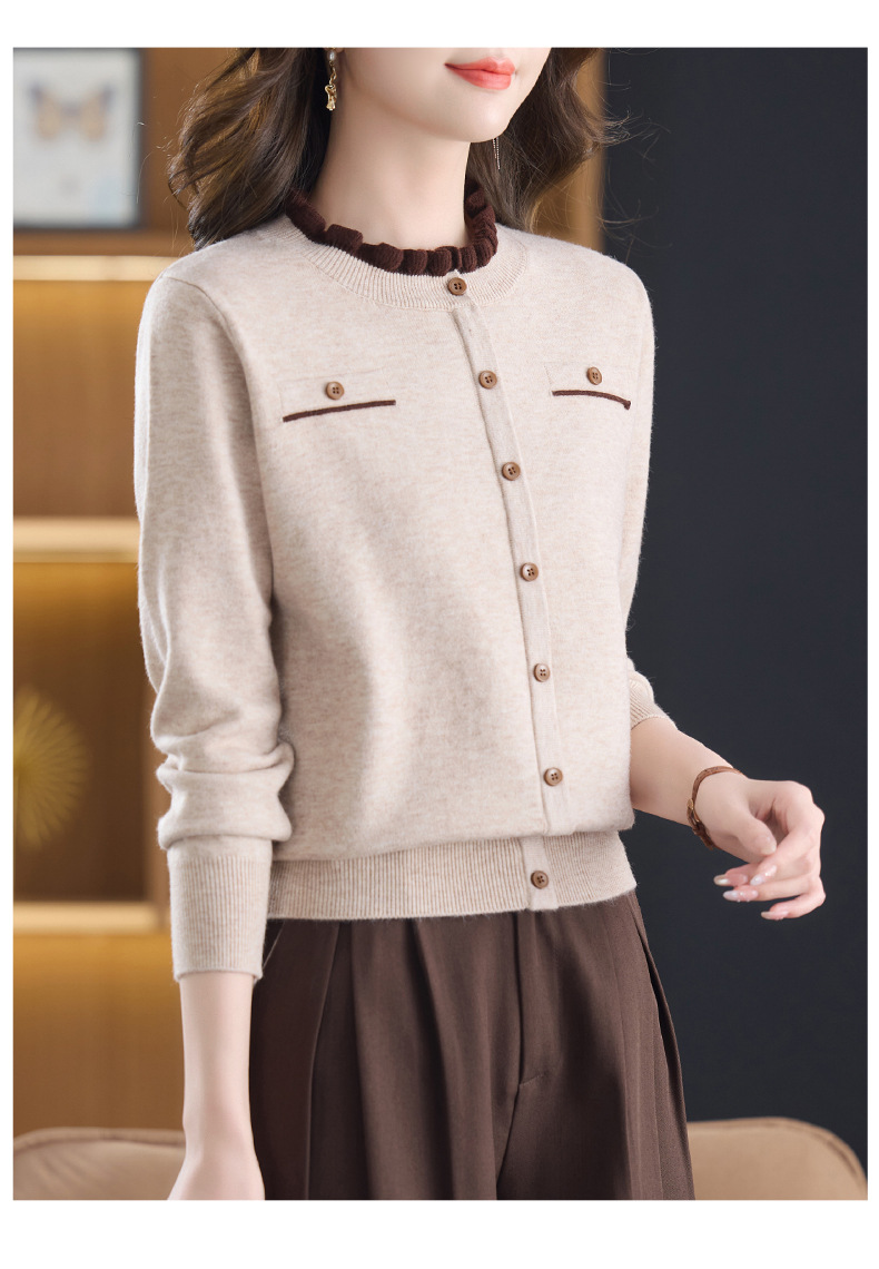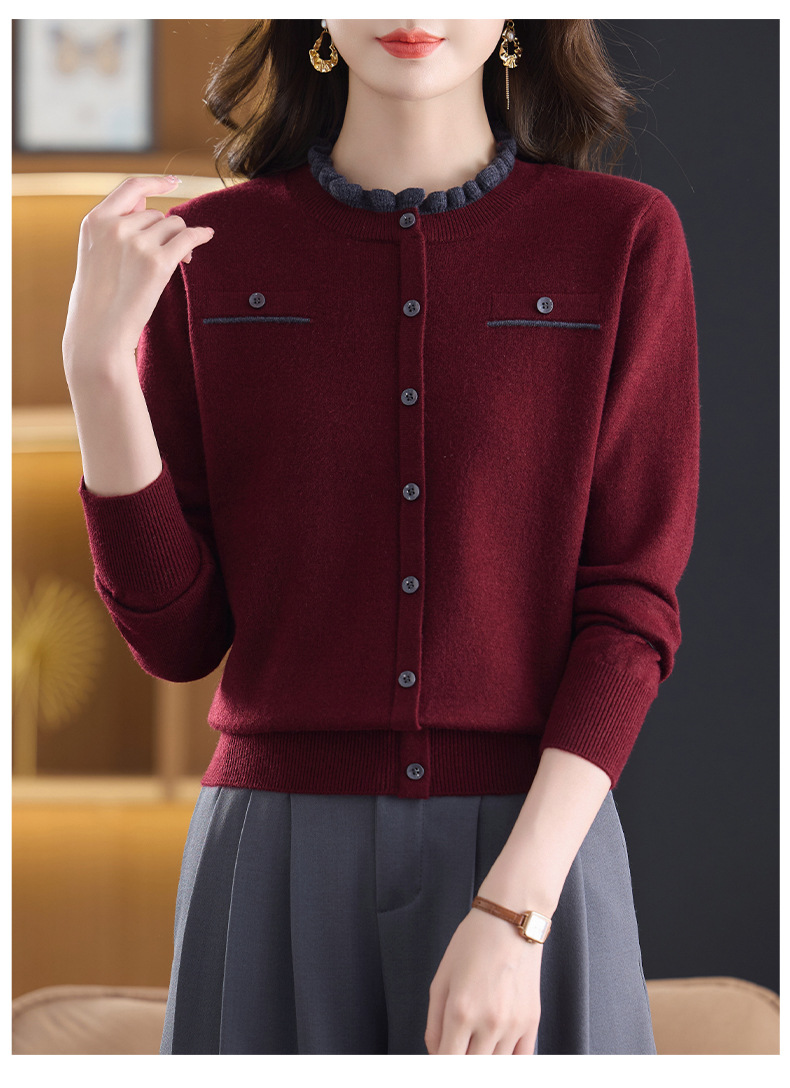 CC木耳边领毛衣女短款秋冬2025新款洋气时尚上衣针织打底衫