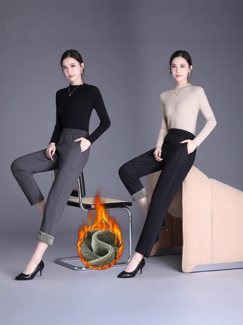 【舒适好搭❗️触感柔软】2025加绒休闲裤加厚哈伦裤新款秋冬宽松小脚裤高腰显瘦九分铅笔裤。ja