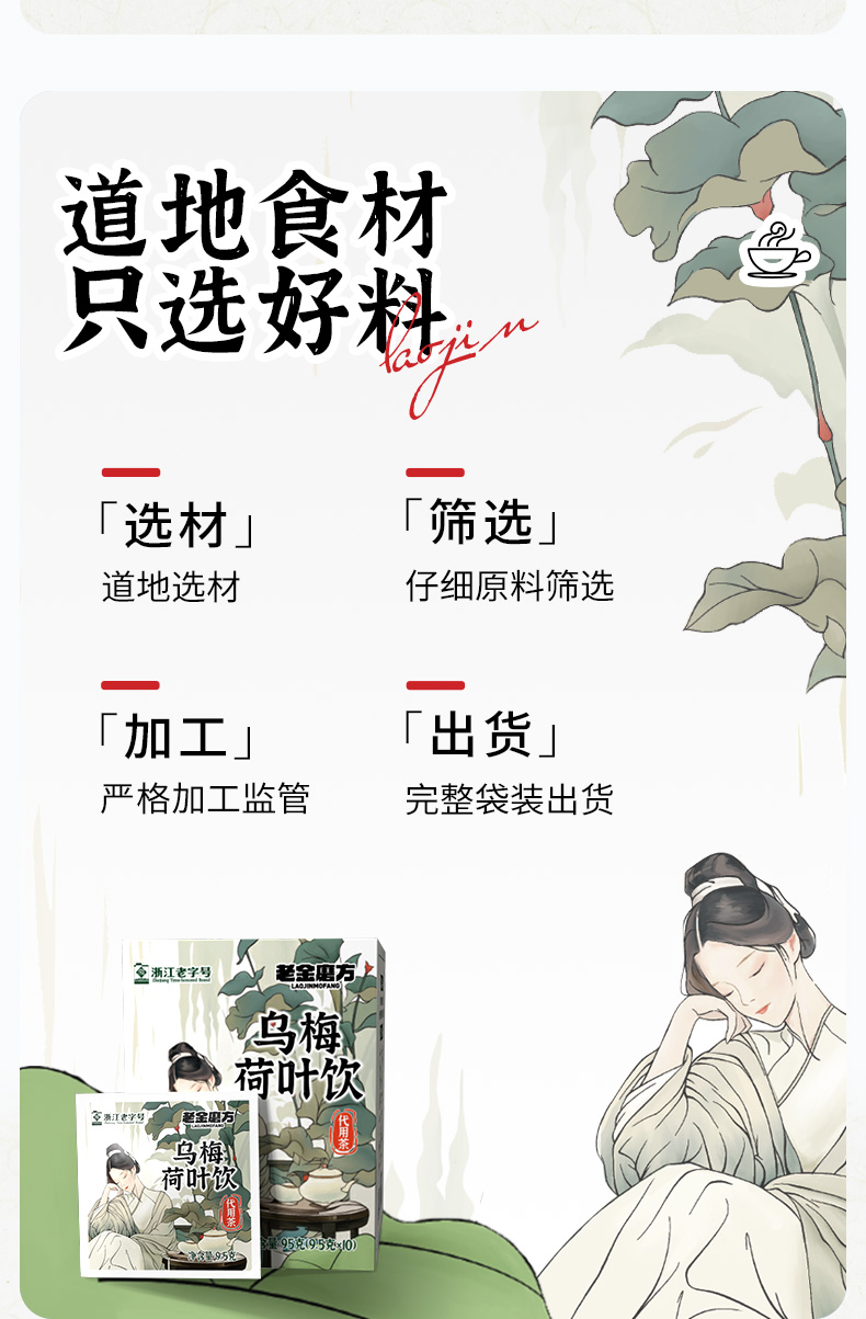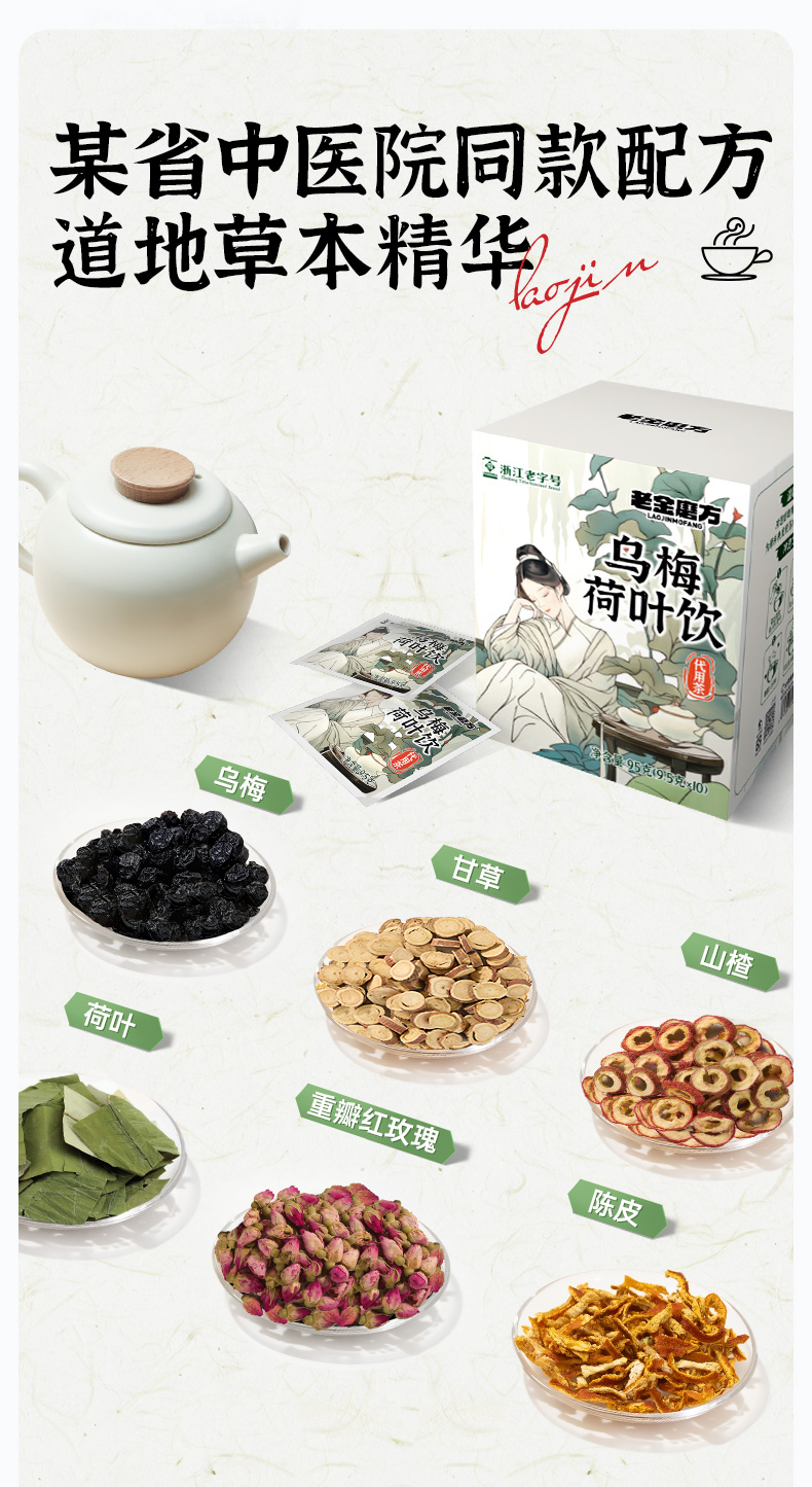 老金磨方乌梅荷叶饮乌梅汤茶包省中医同款陈皮山楂养生茶祛湿茶