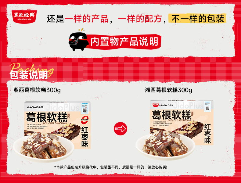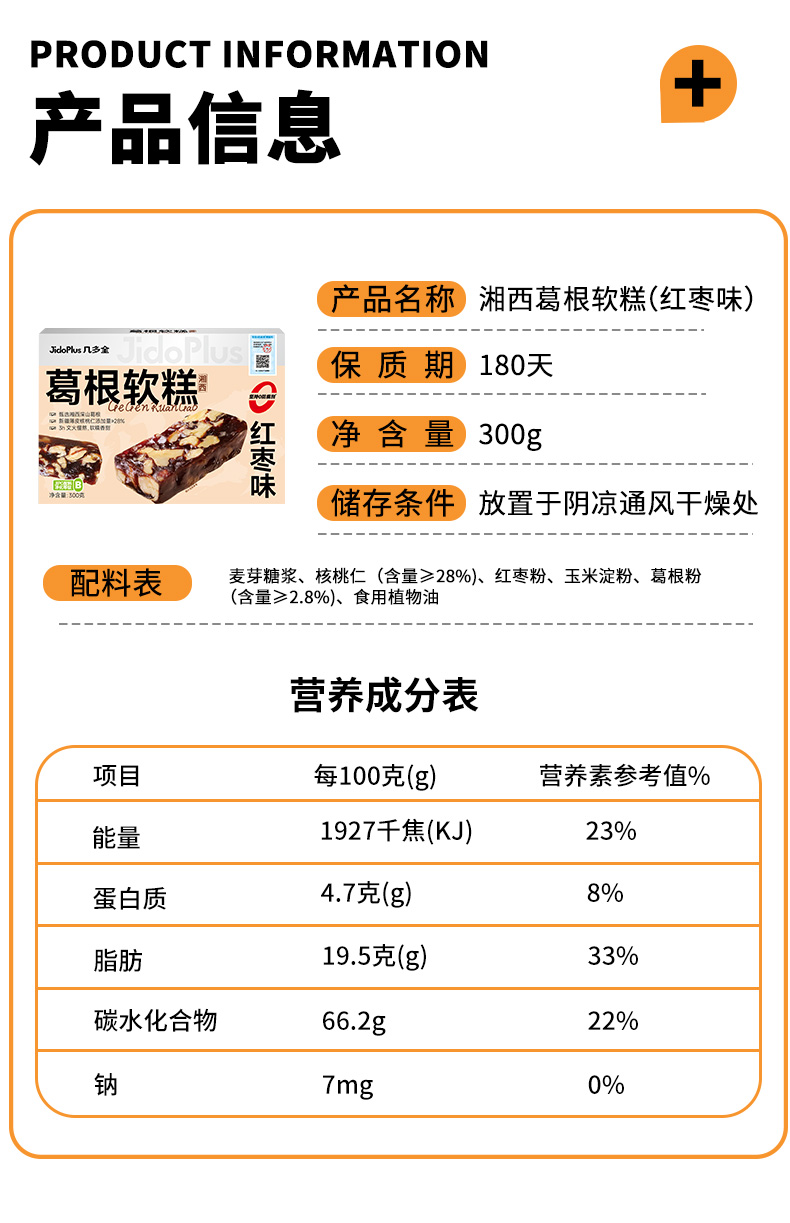 【湖南特色糕点】几多全湘西葛根软糕(红枣味) 300g/盒