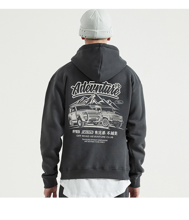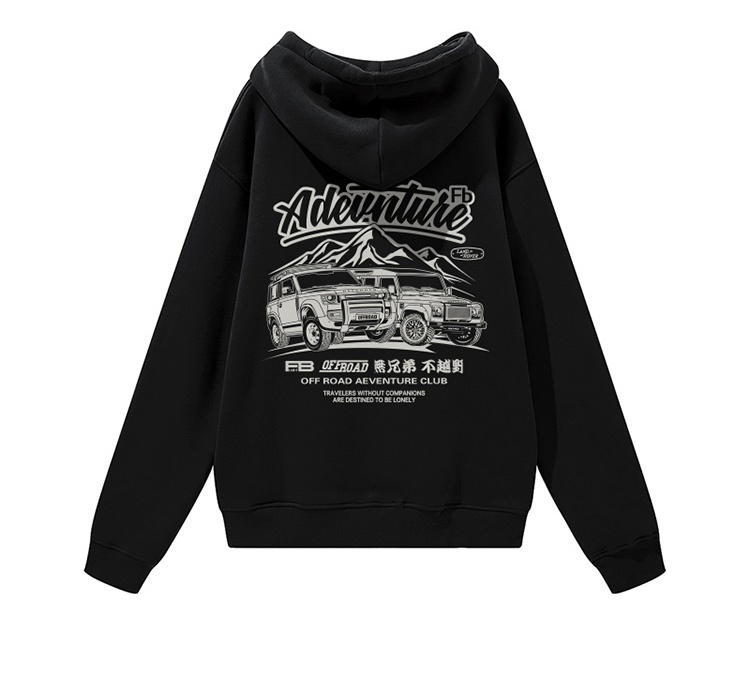 自由基地秋冬路虎联盟越野车图户外露营outdoor带帽套头抓绒卫衣 NMT-1908