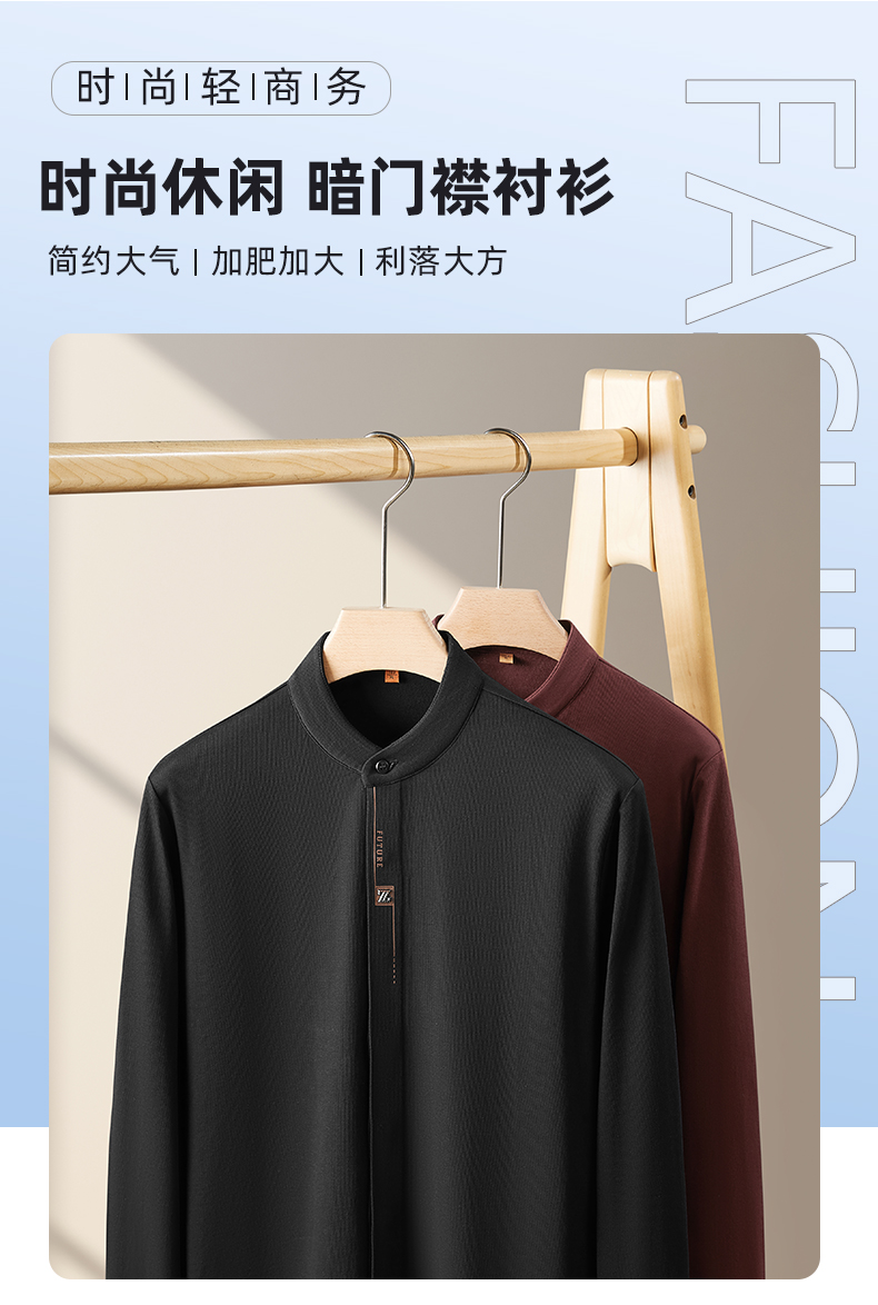 【新中式小立领】【新款DDP】大依优型大码长袖衬衫男装加肥加大体恤大号上衣胖子休闲商务
