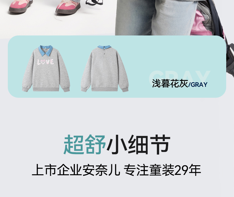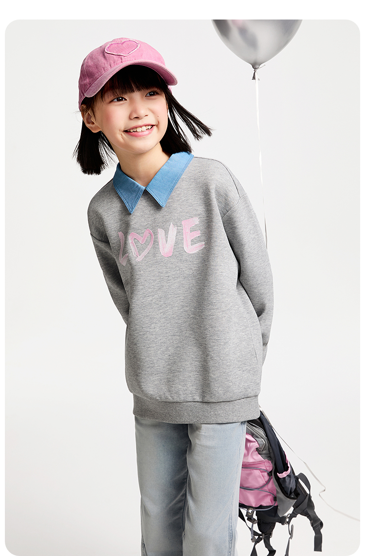 女童翻领长袖卫衣春季新款安奈儿童装EG511032