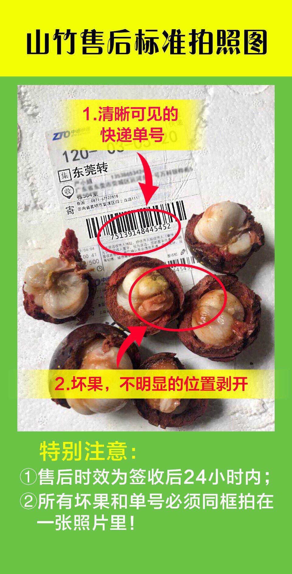 1、收到后先打开箱子,因为运输途中果子会捂得有热气,等山竹冷却之后,洒些水再放入冰箱储存,不要收到就直接放冰箱,一冷一热很容易坏!