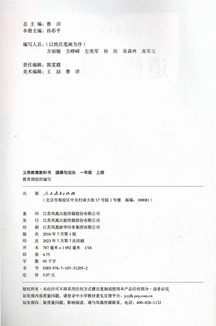 1上 道德与法治课本 一年级上册 人教版 思想品德教育 小学生道德与法治书 人民教育出版社RJ