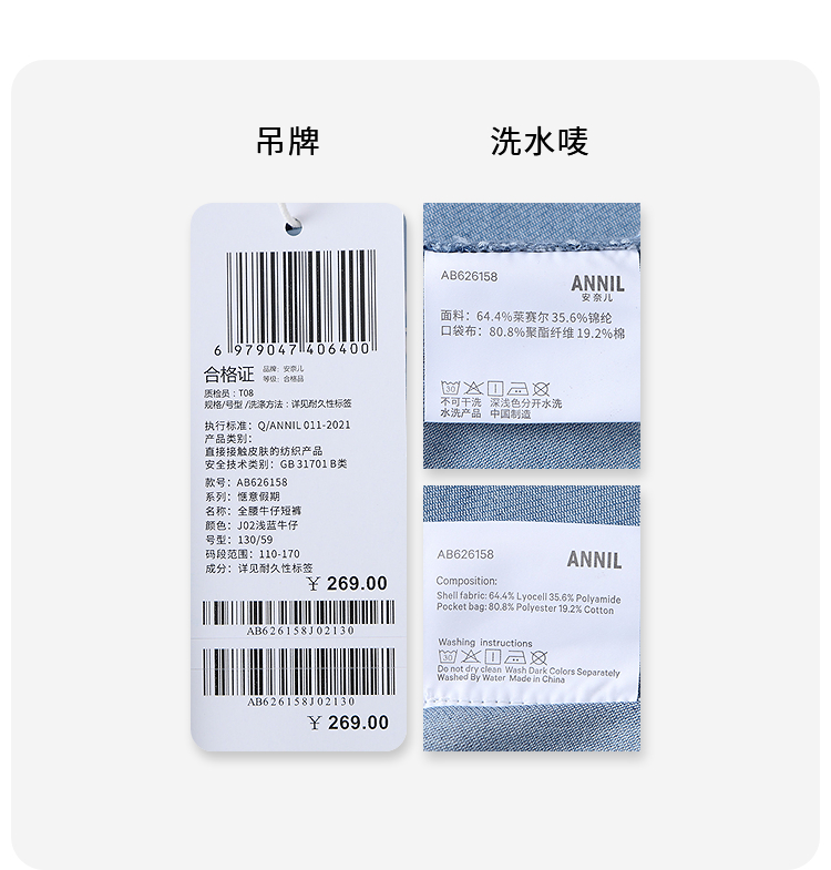 【实体店同款】男童全腰牛仔短裤夏季新款安奈儿童装AB626158