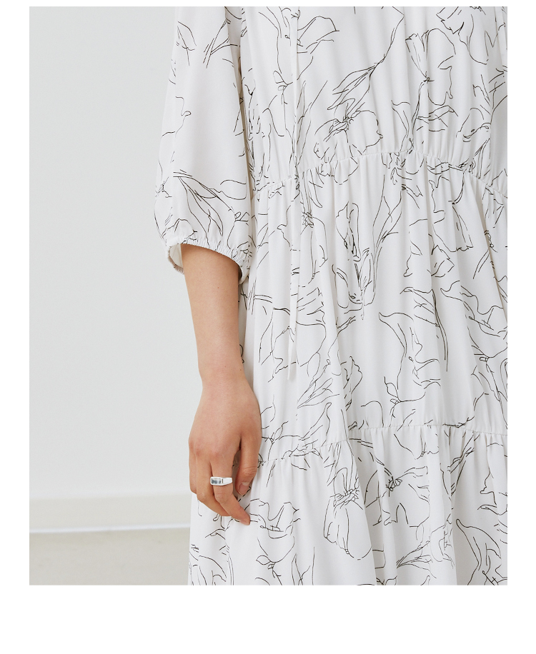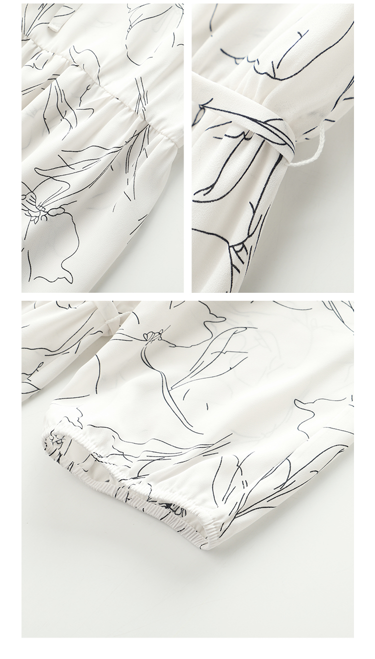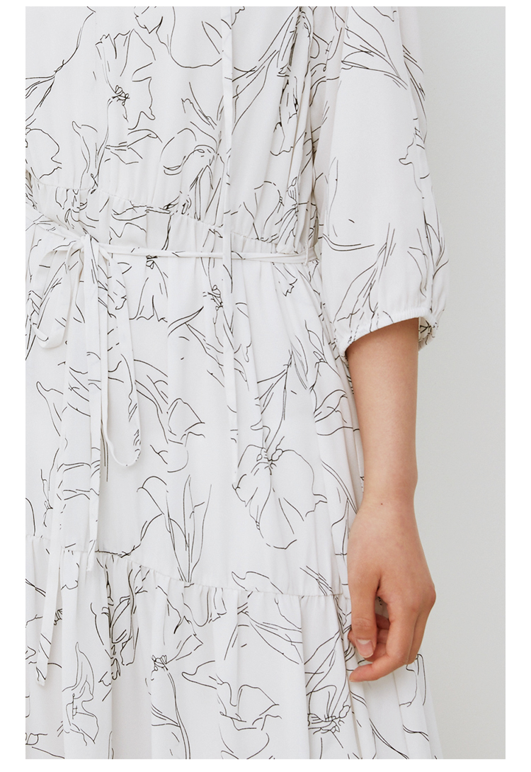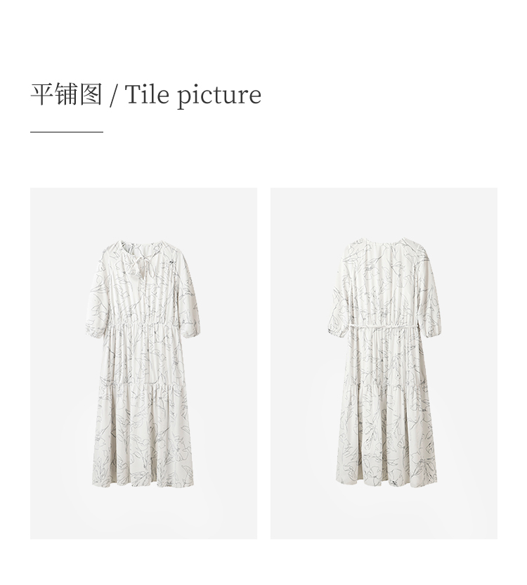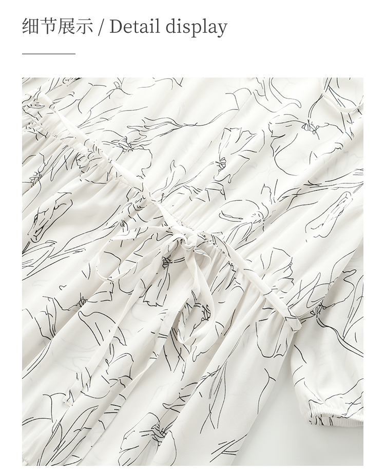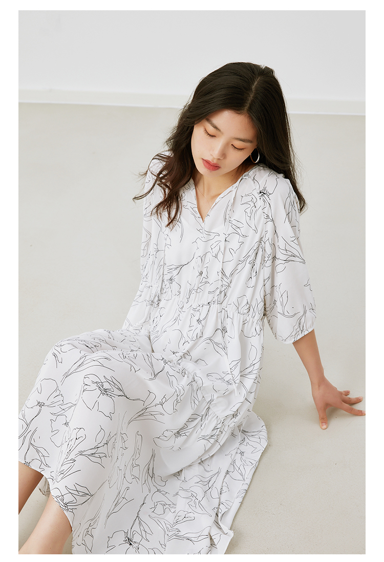 HeyDress简约艺术印花连衣裙女V领宽松收腰垂感褶皱气质吊带裙子