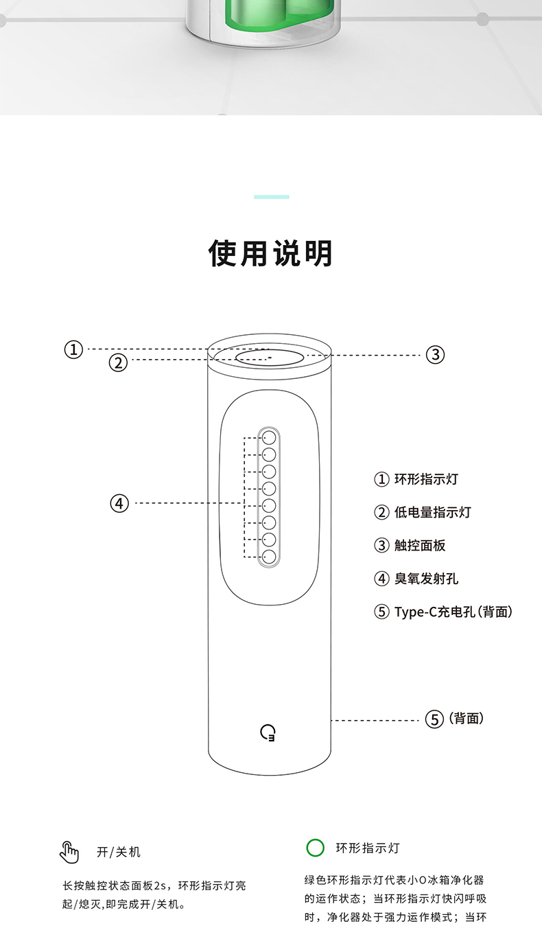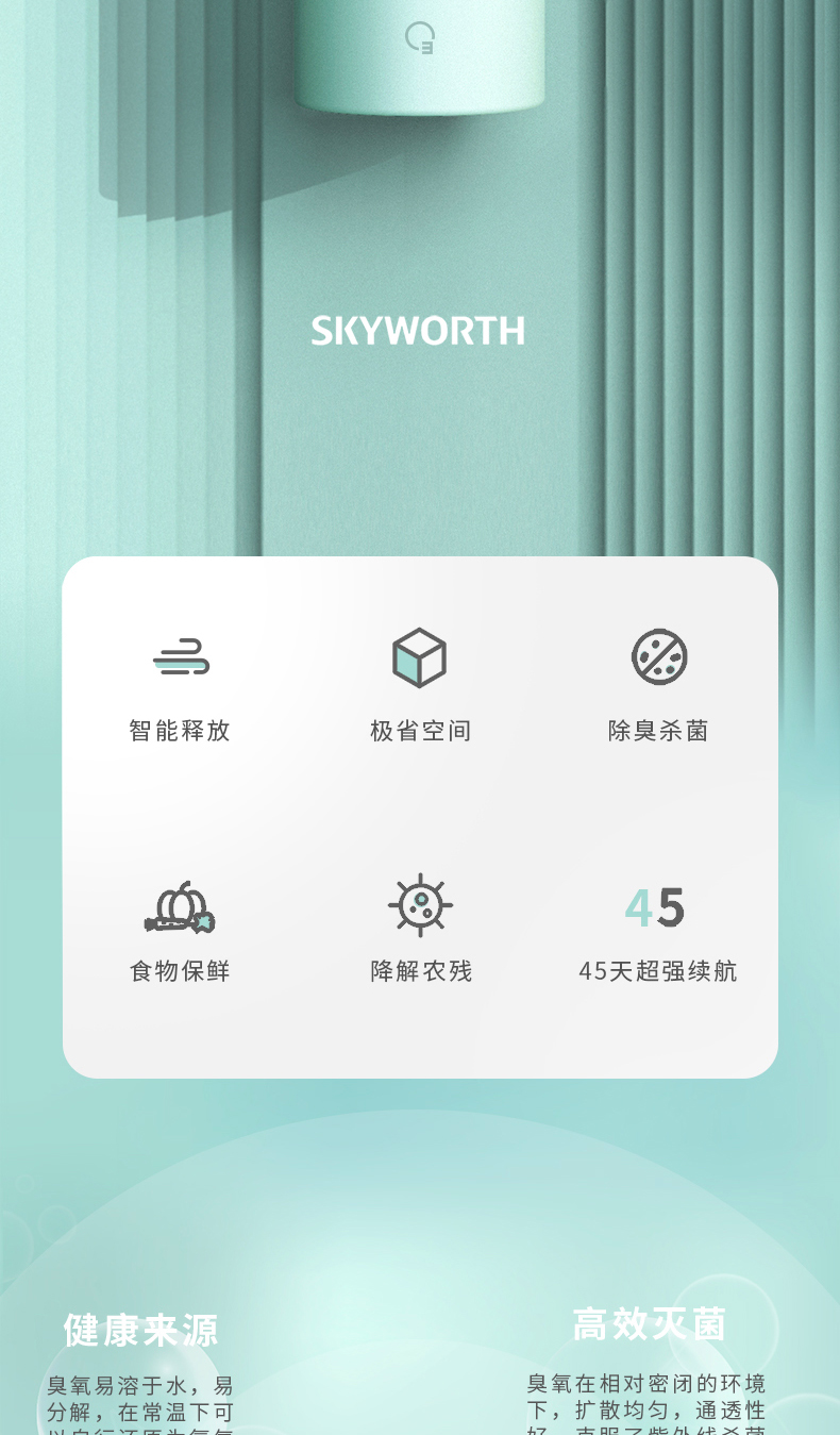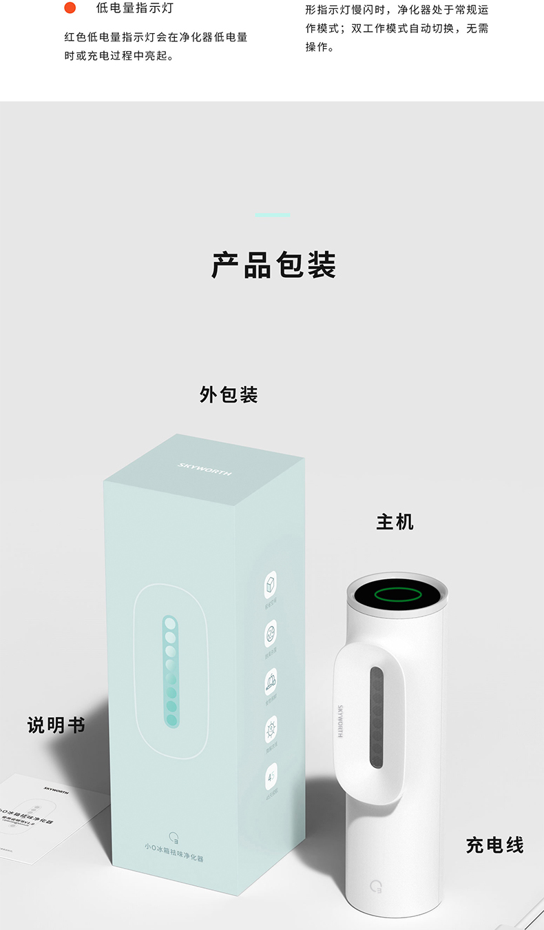 创维小O 冰箱除味神器净化空气臭氧祛味杀菌除臭舌尖家用卫士去味