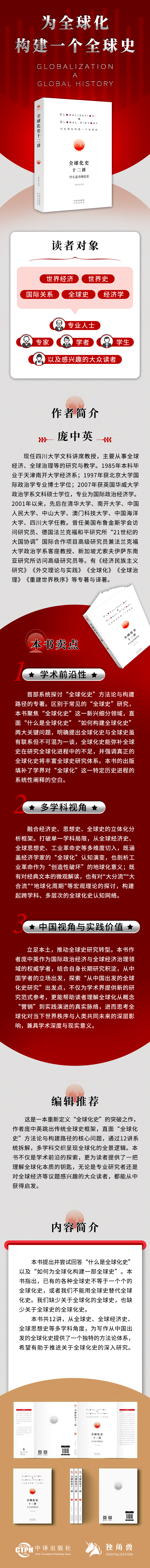 3.中国视角与实践价值:立足本土,推动全球史研究转型。本书作者庞中英作为国际政治经济与全球经济治理领域的权威学者,结合自身长期研究积淀,从中国学者的立场出发,探索“从中国出发的全球化史研究”出发点,不仅为学术界提供新的研究范式参考,更能帮助读者理解全球化从概念“营销”到实践演进的真实脉络,进而思考全球化对当下世界秩序与人类共同未来的深层影响,兼具学术深度与现实意义。