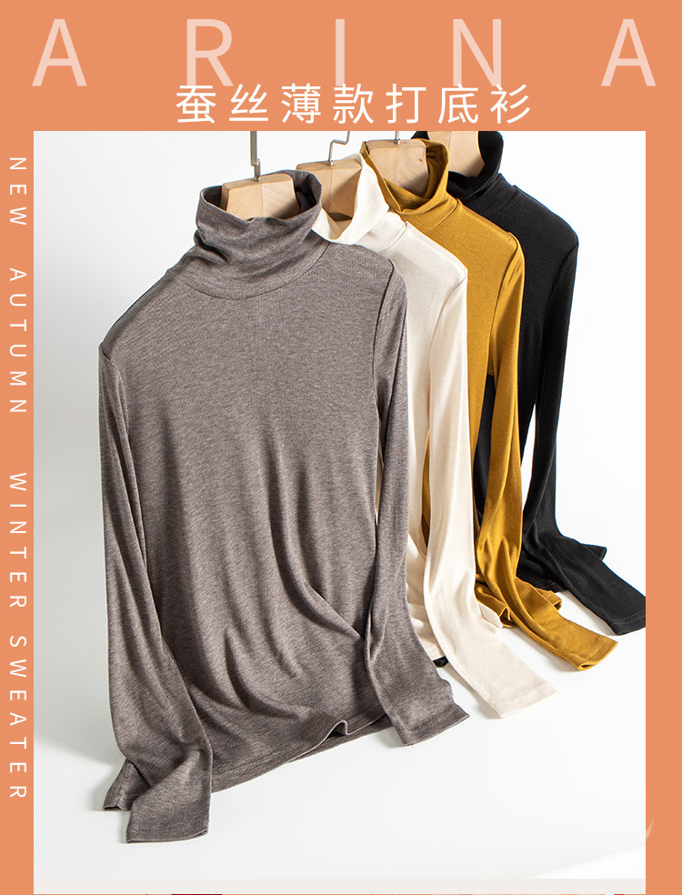 ARN-Y161高领针织真丝打底衫薄款保暖秋冬女修身长袖纯色上衣百搭舒适