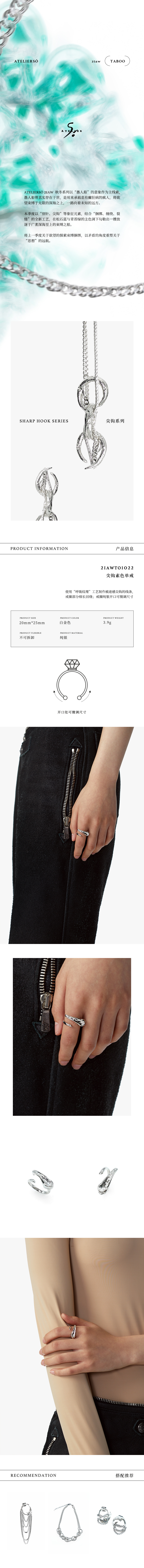 21AW TABOO|愚人船 尖钩系列 - 尖钩素色单戒 商品图2