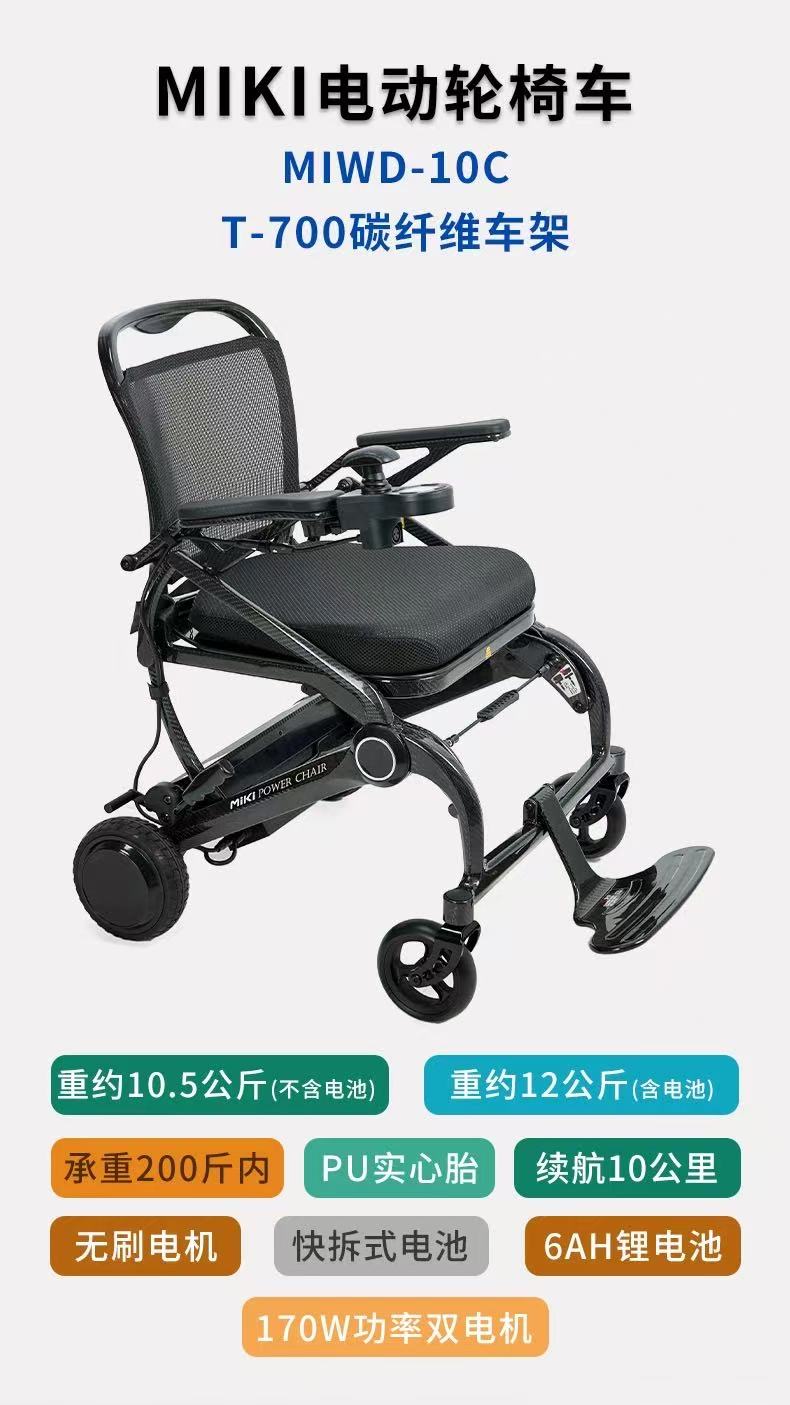 日本miki电动轮椅MIWD-10C老年人多功能舒适旅行便携代步手推轮椅