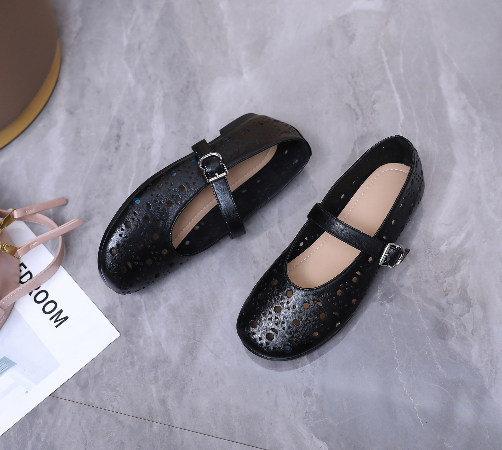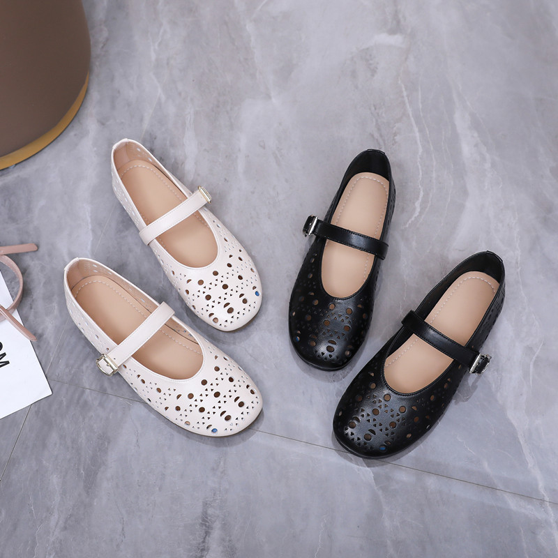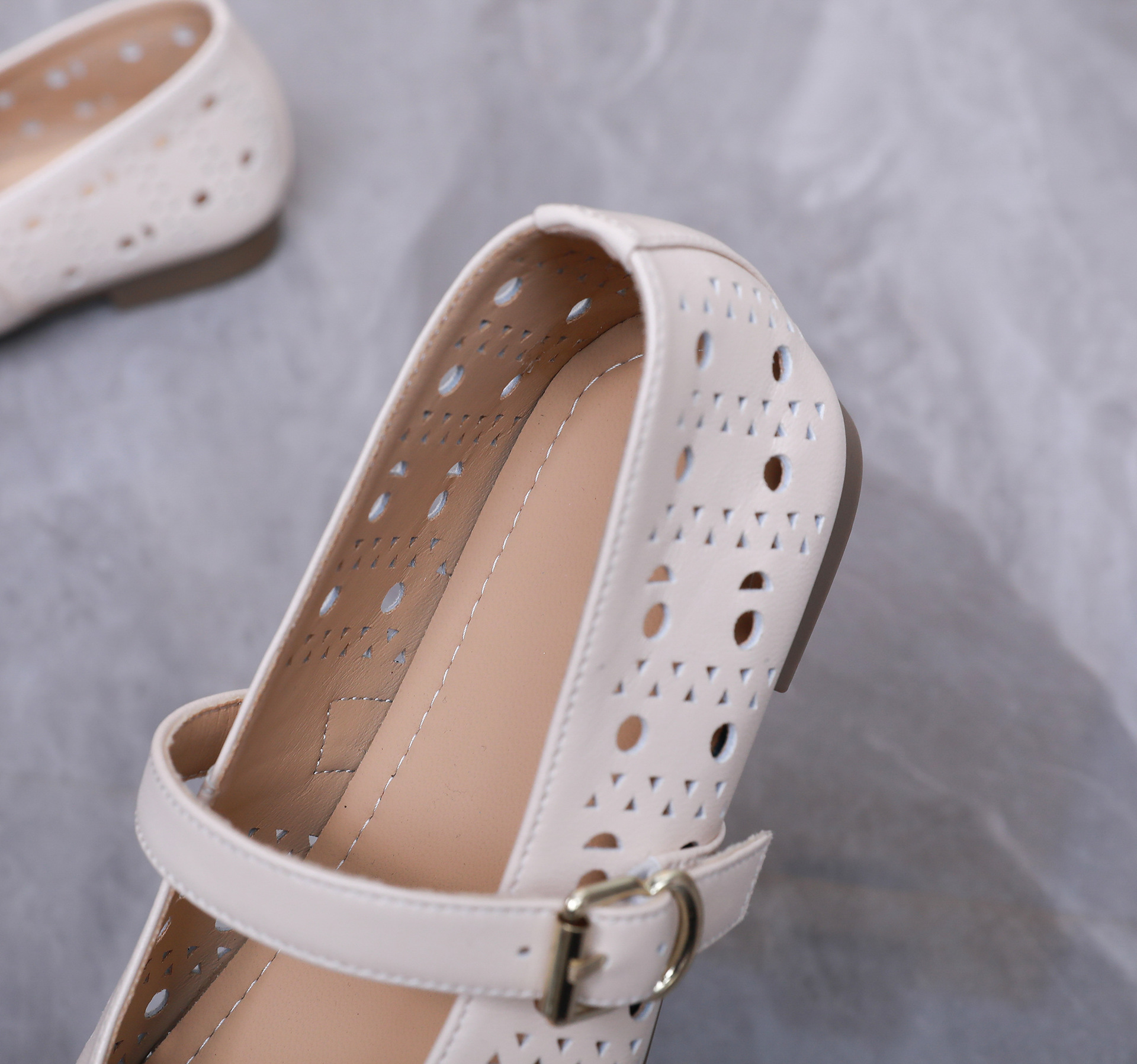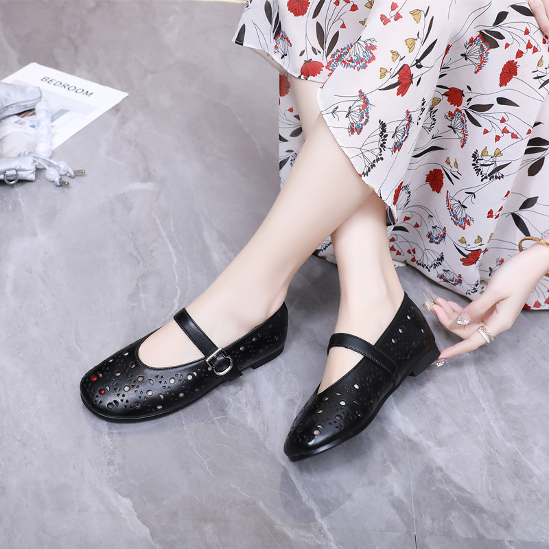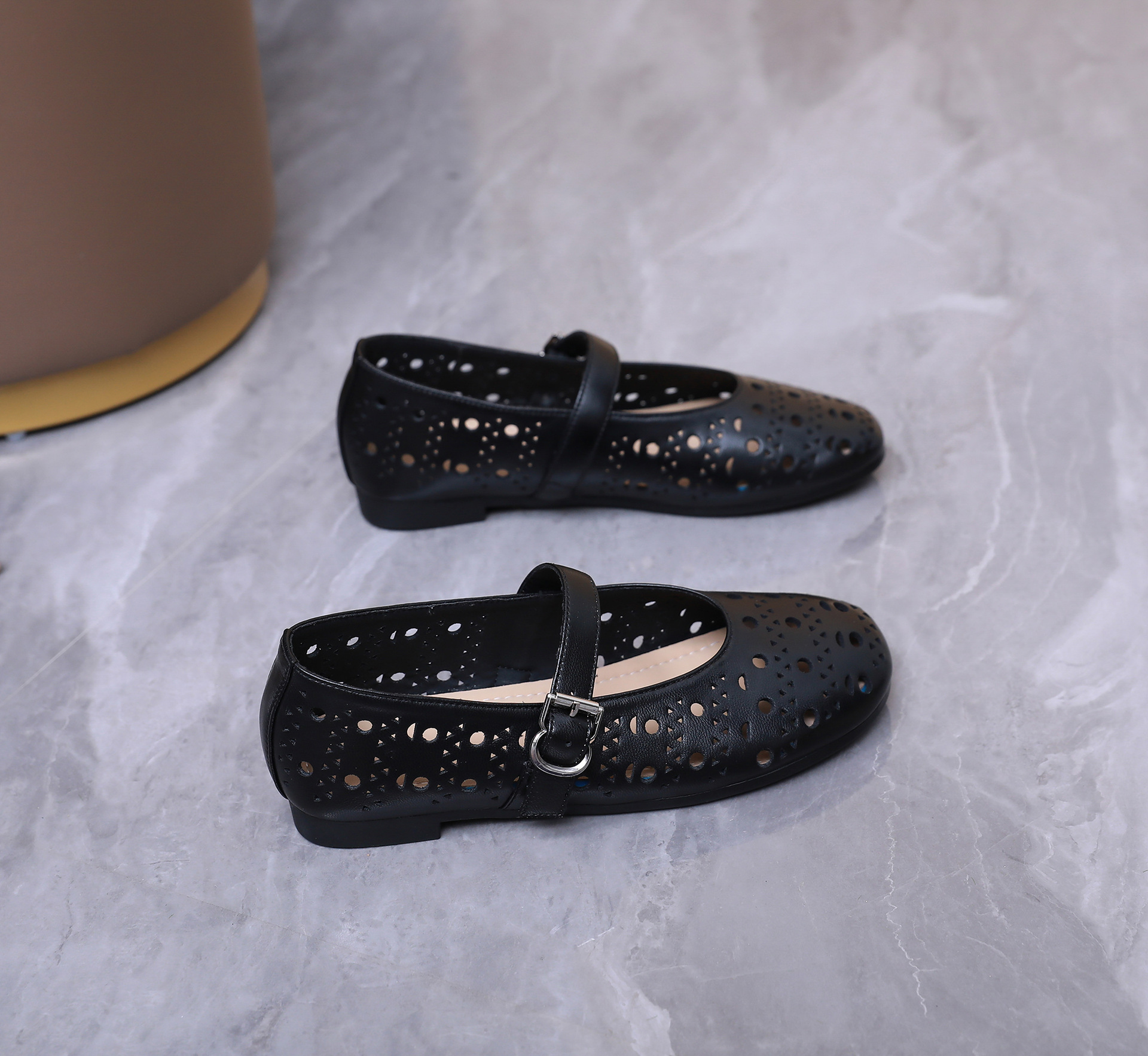 雀说一字带镂空玛丽珍凉鞋女真皮复古平底四季舒适圆头浅口单鞋AL7705