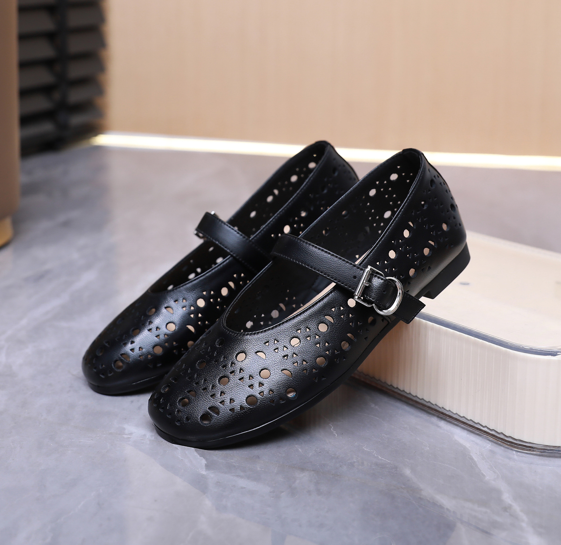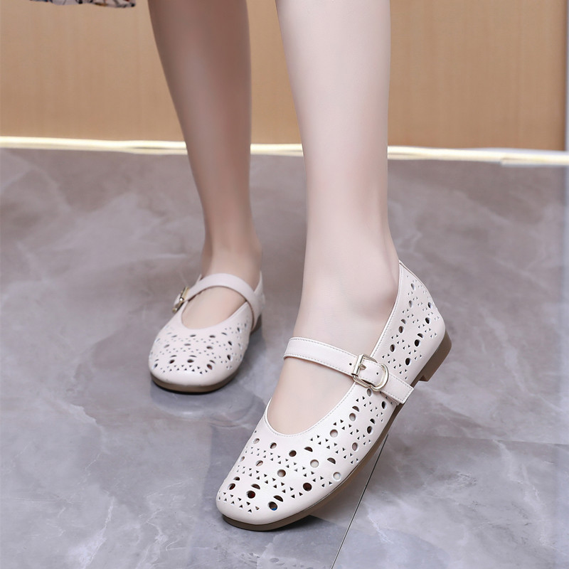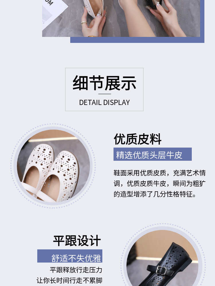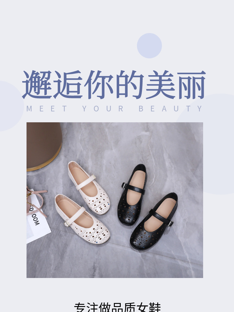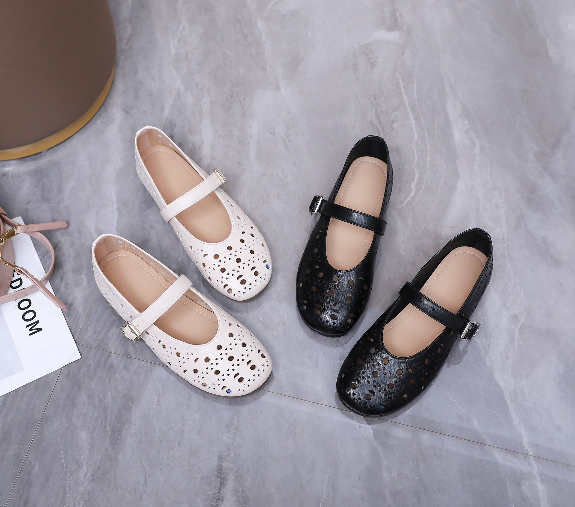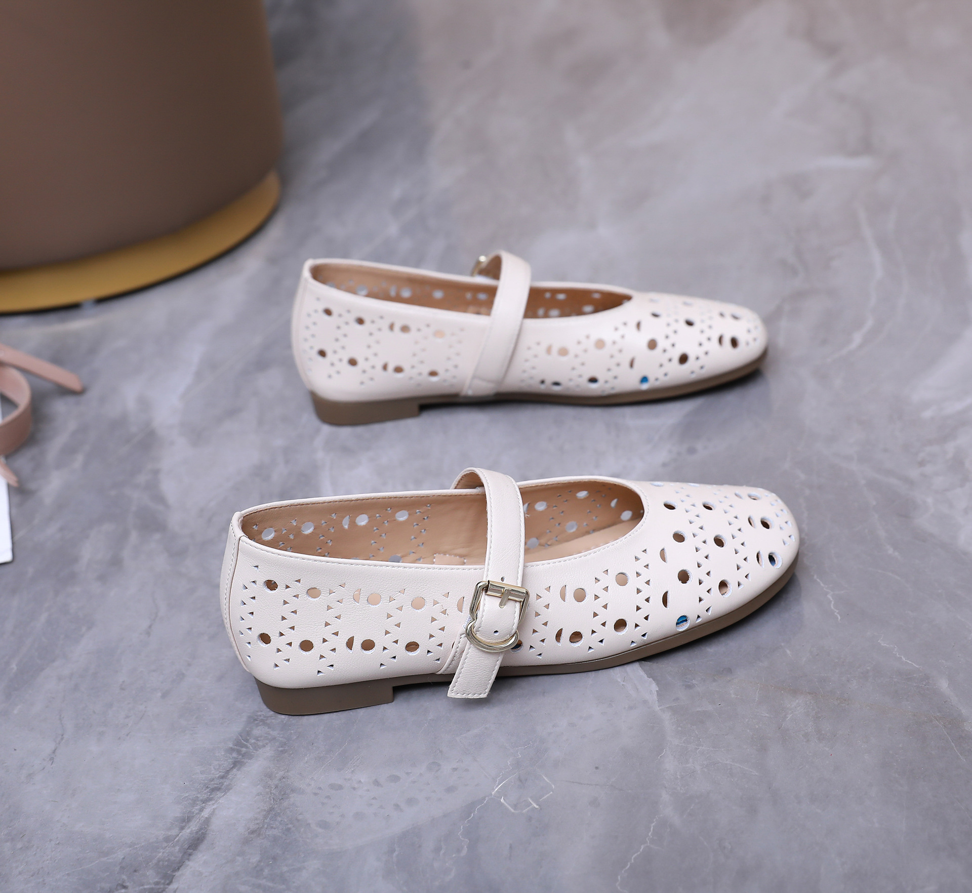 雀说一字带镂空玛丽珍凉鞋女真皮复古平底四季舒适圆头浅口单鞋AL7705