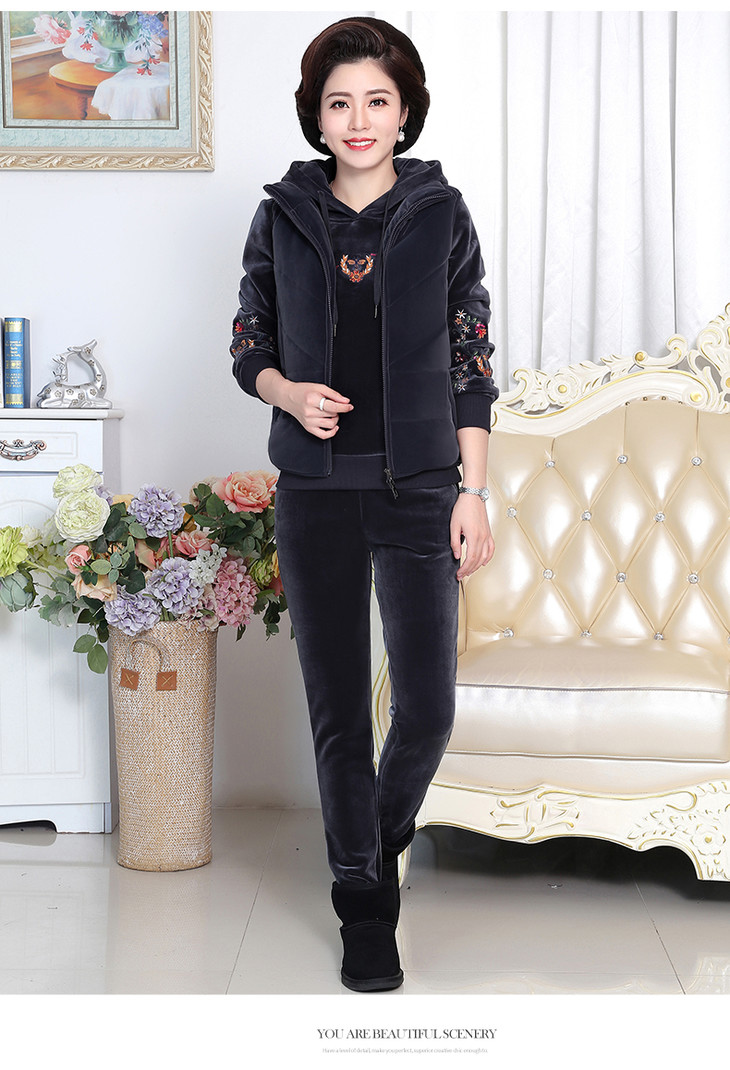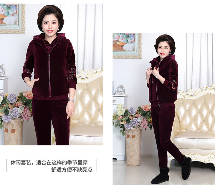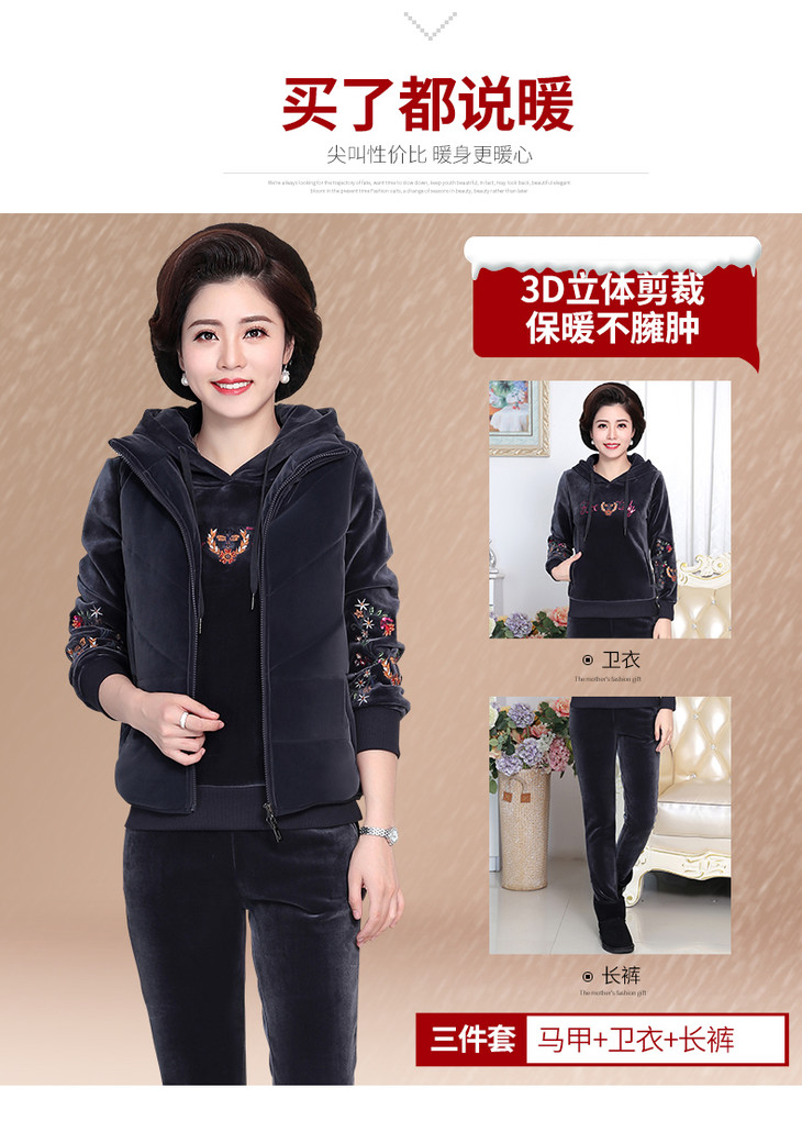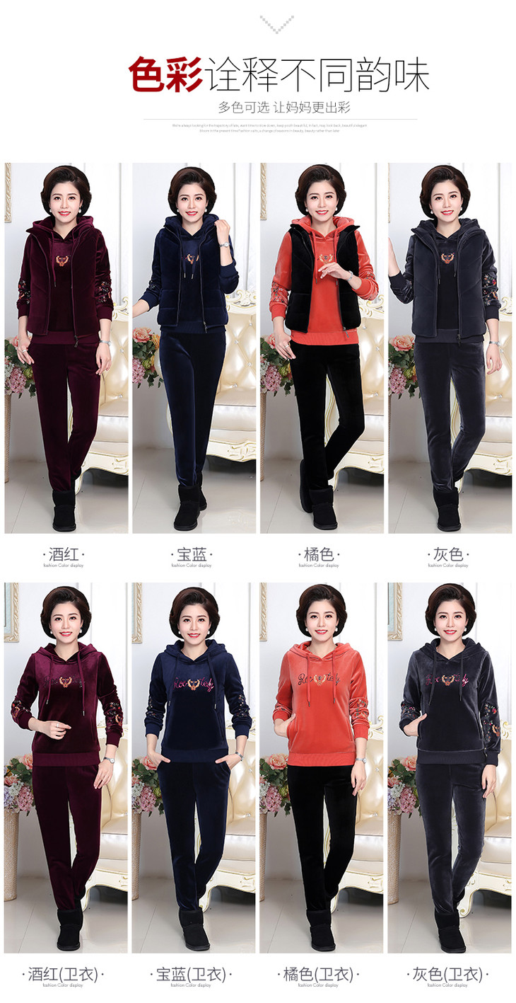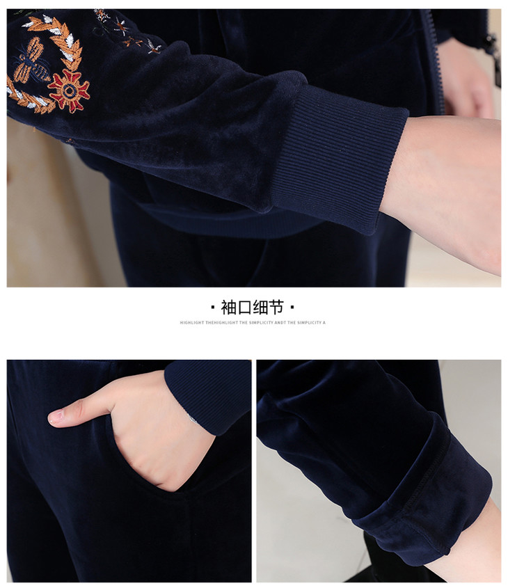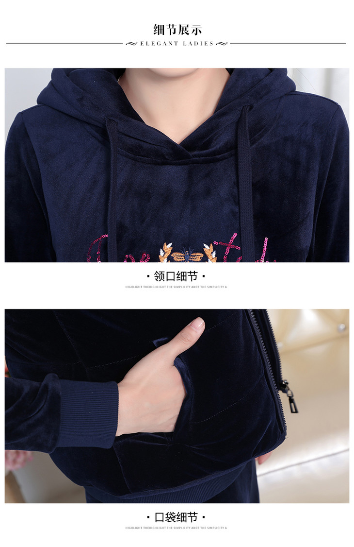 SP-223025秋冬新款加绒金丝绒三件套运动套装