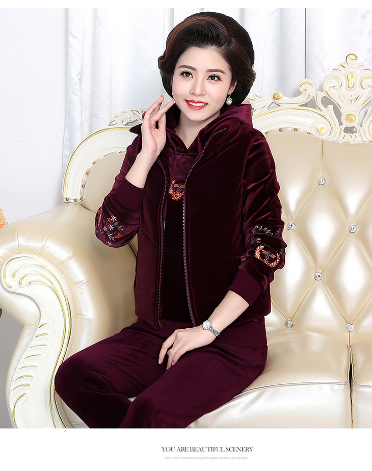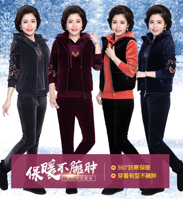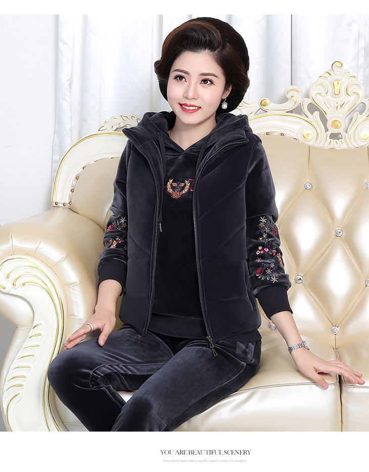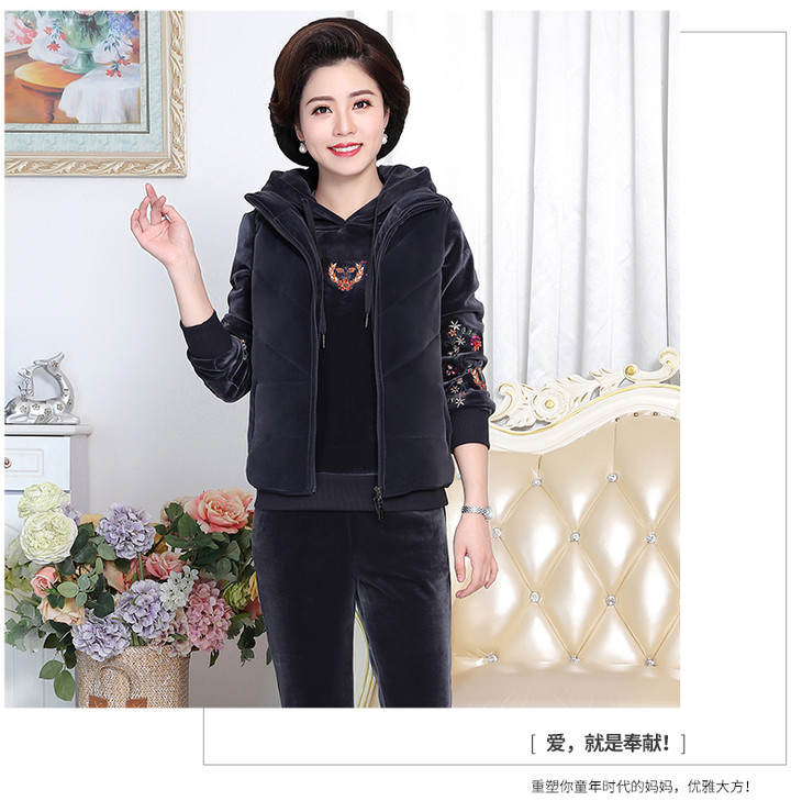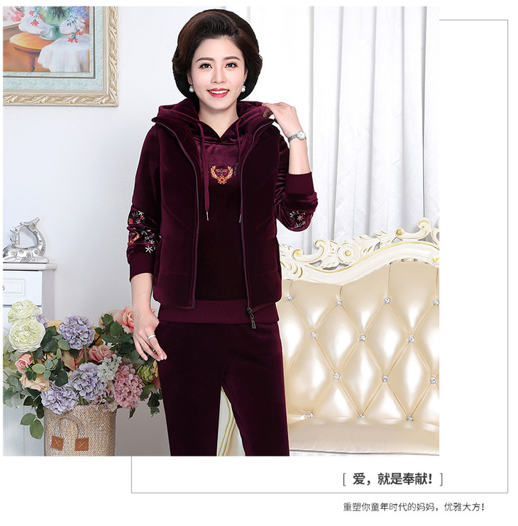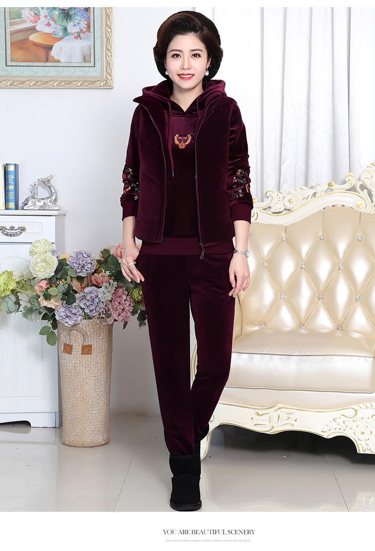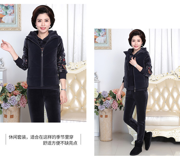 SP-223025秋冬新款加绒金丝绒三件套运动套装