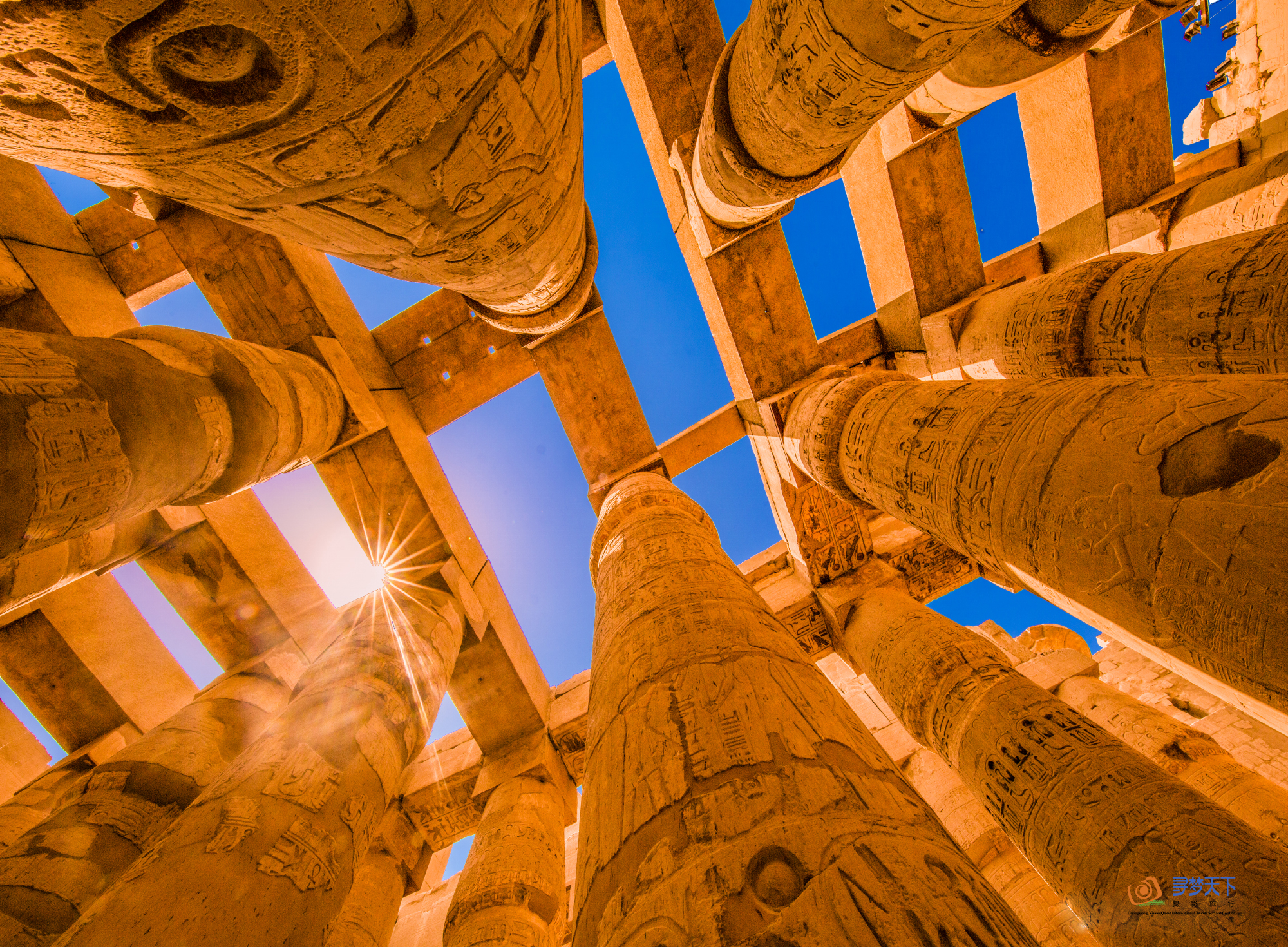 日间,阳光洒落卡纳克神庙,古石辉映,心灵随之震撼。夜幕下,卢克索神庙灯光摇曳,神秘与庄严交织,令人心醉神迷。