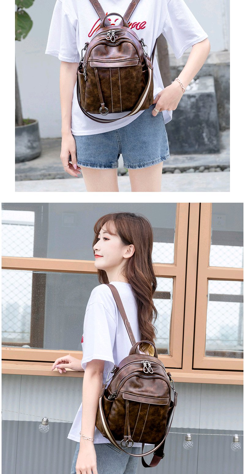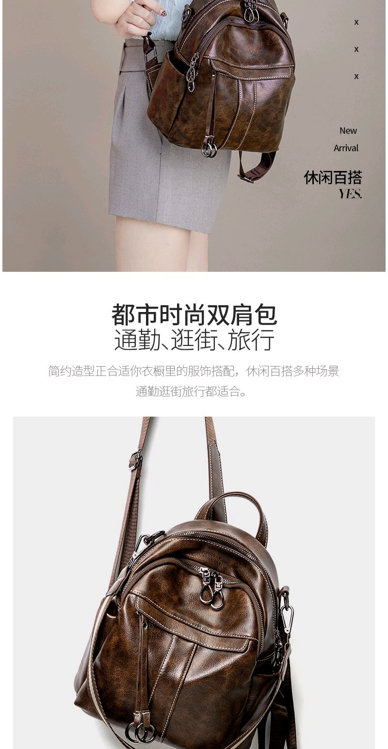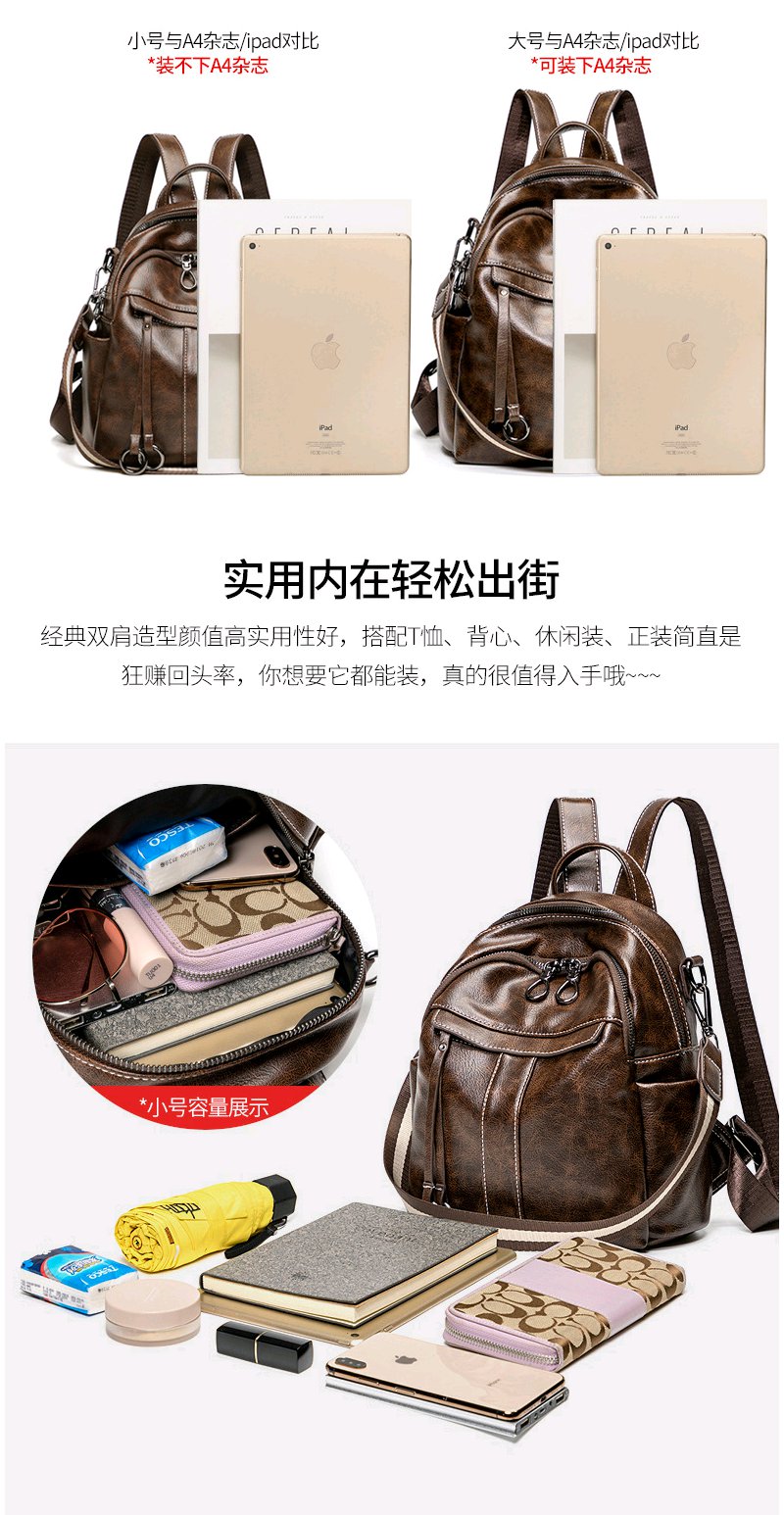 时尚防盗双肩包女秋季上新百搭复古油蜡皮多用背包休闲旅行包C9855