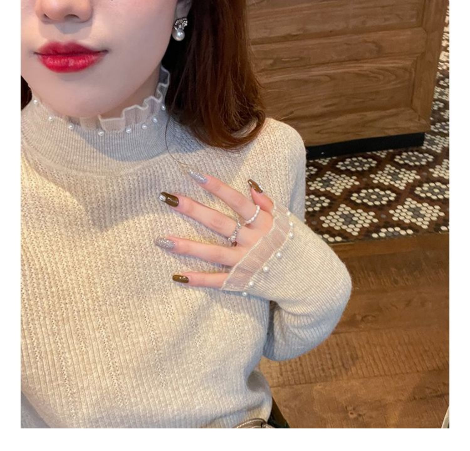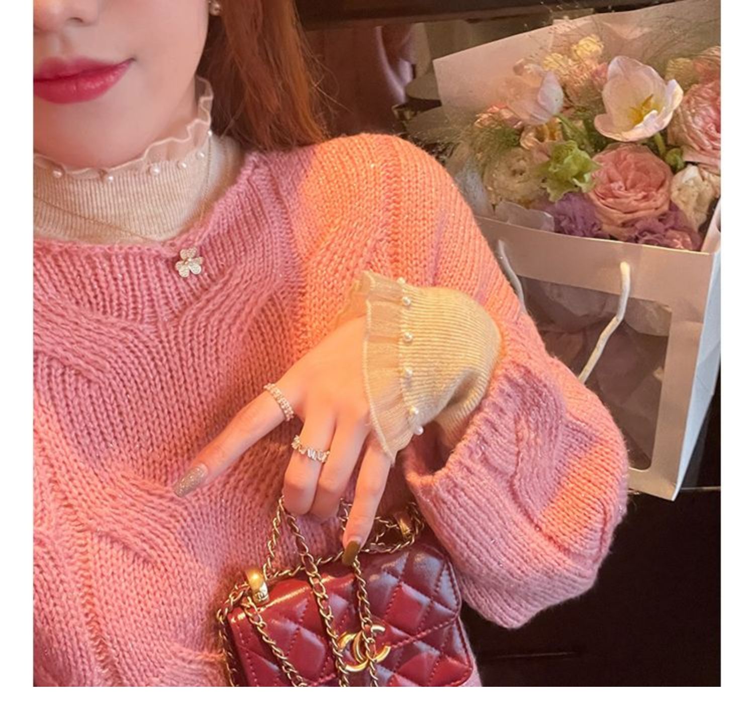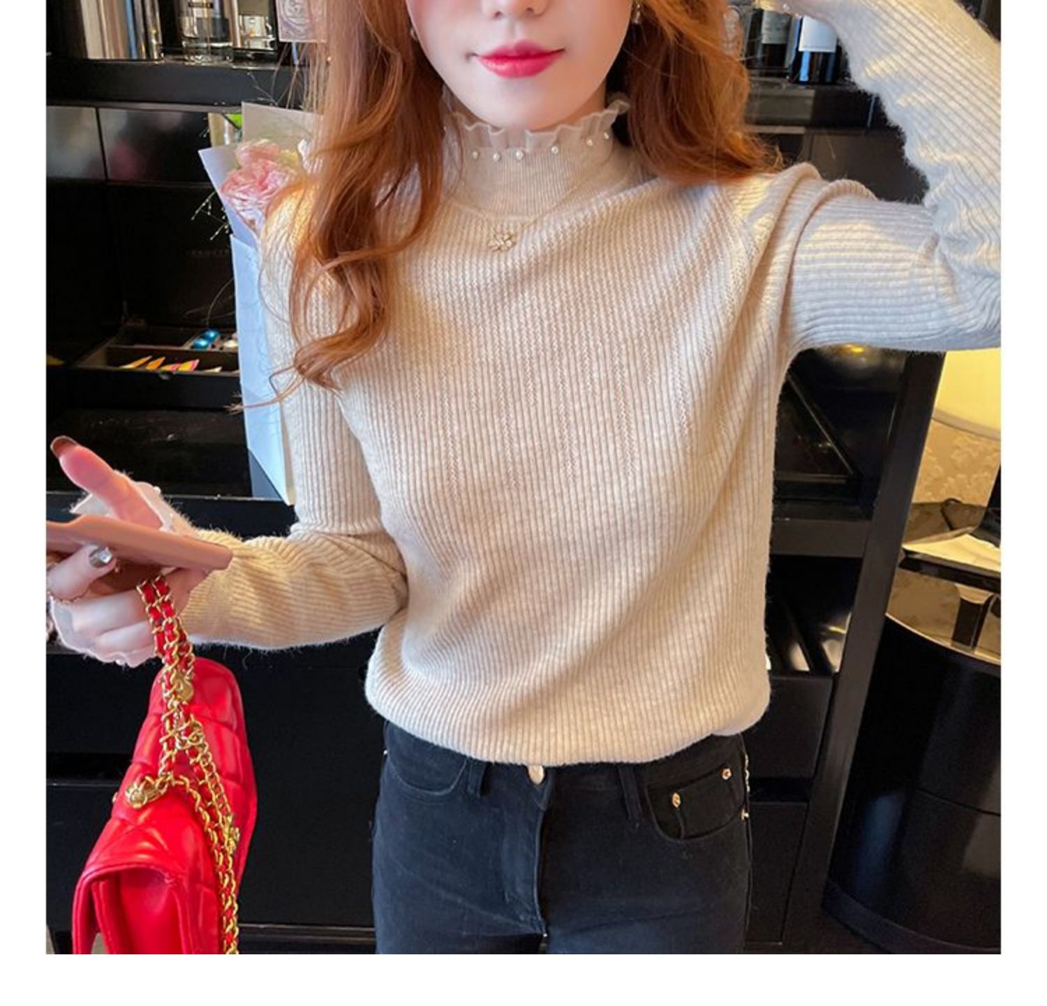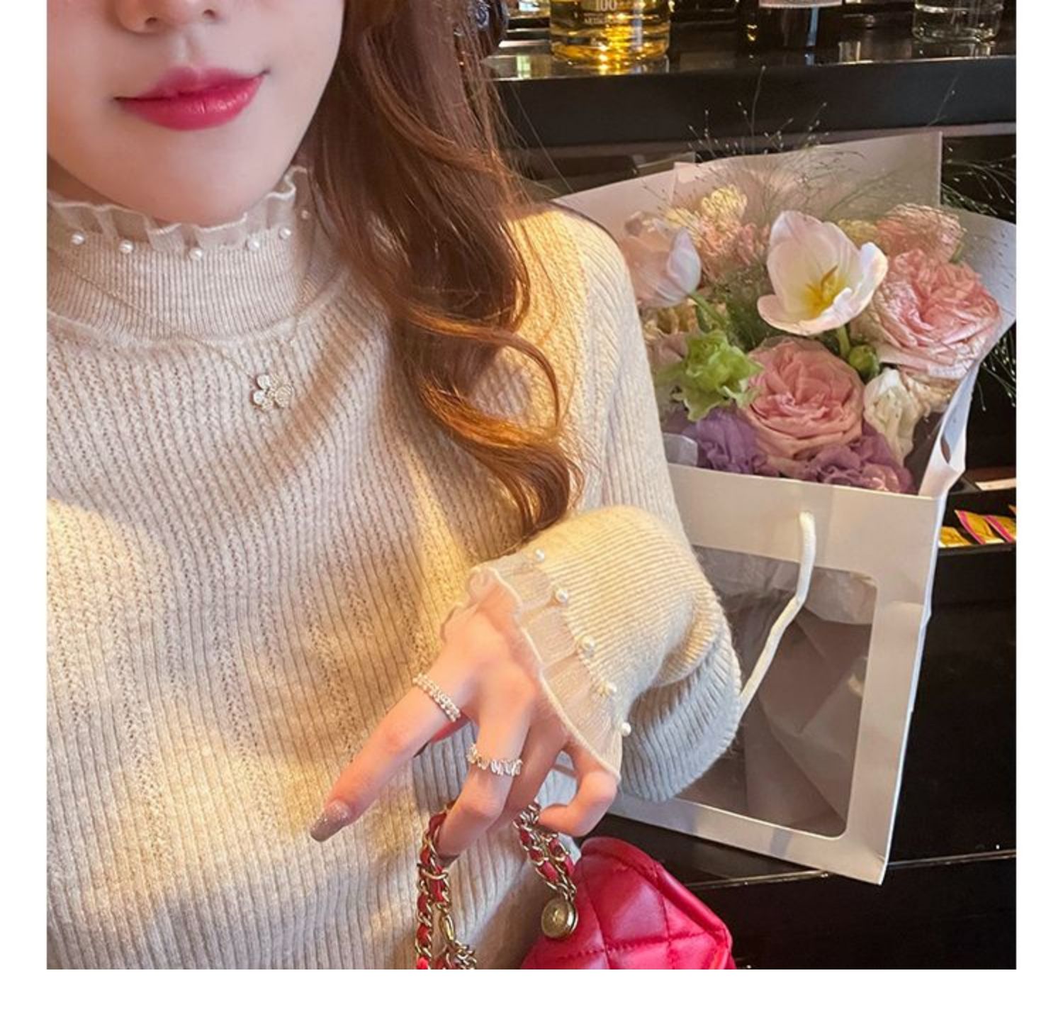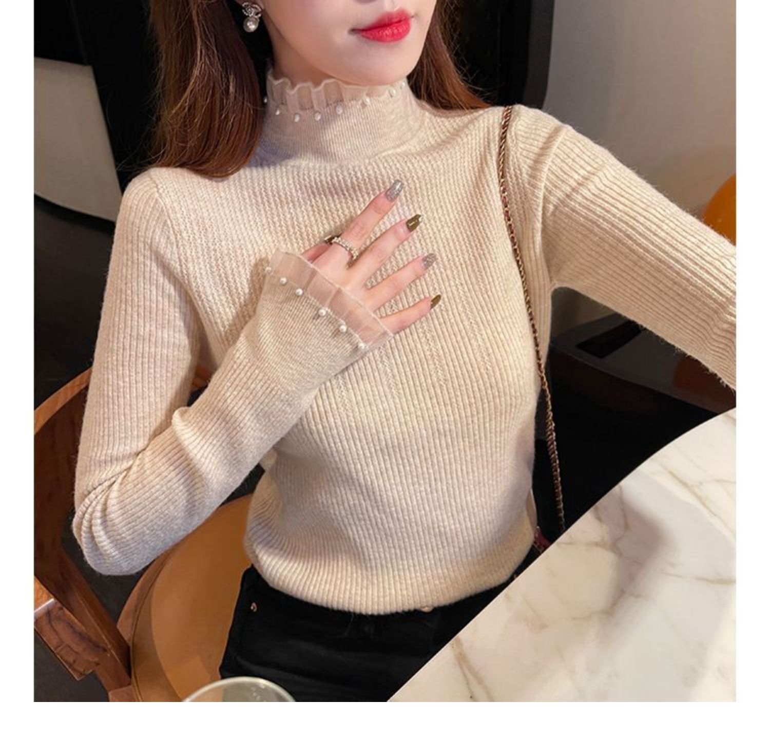" 雀说 小香风半高领毛衣女秋冬内搭上衣珍珠网纱边针织打底衫3ZF-MZ15123"
