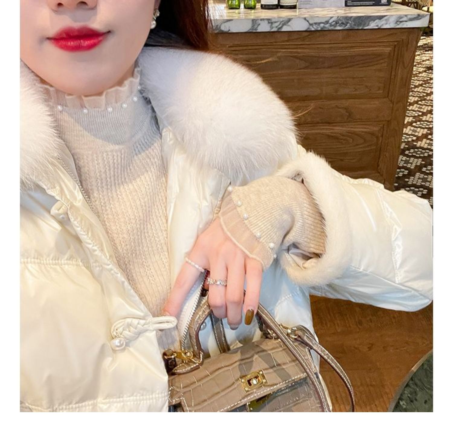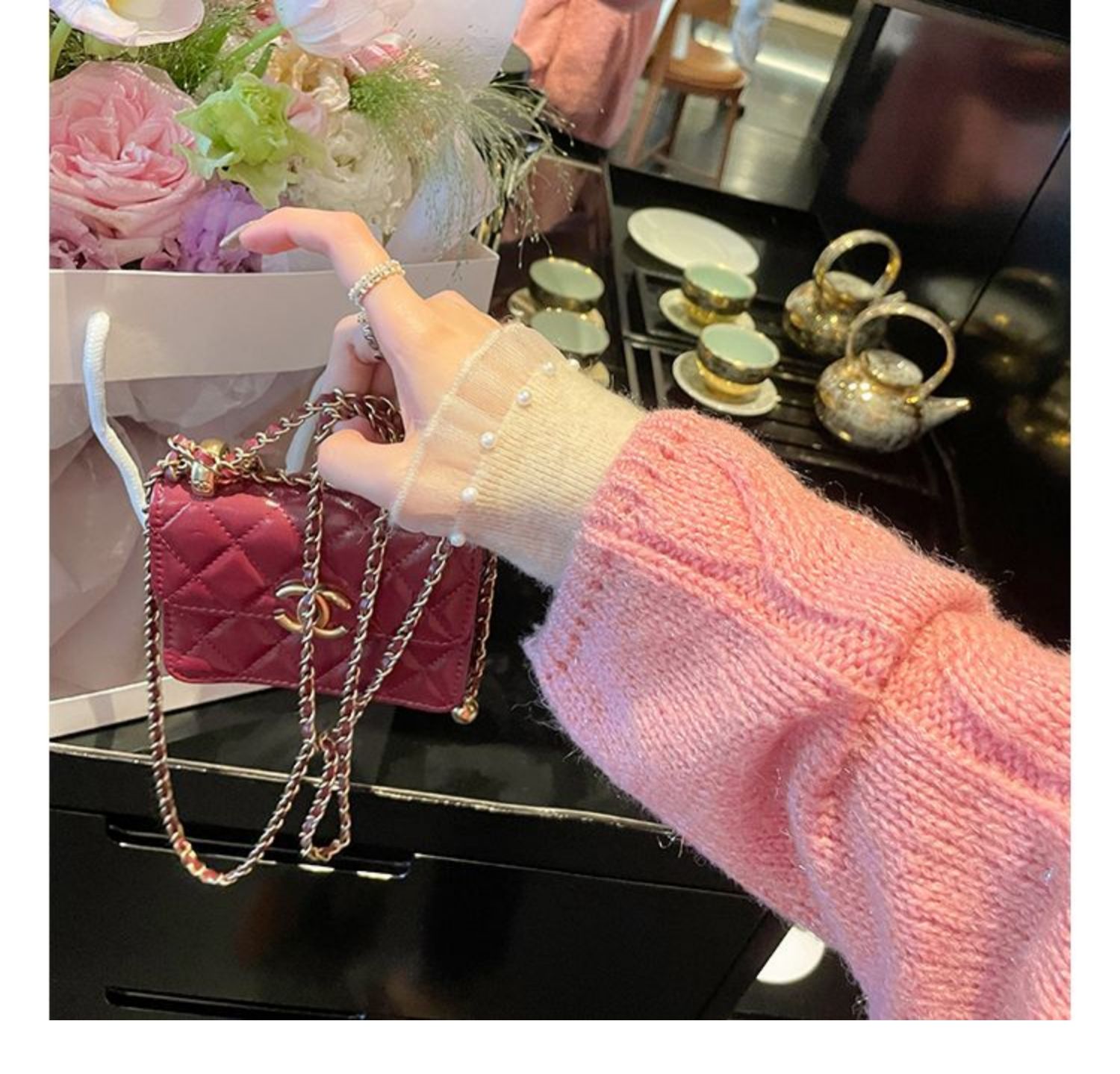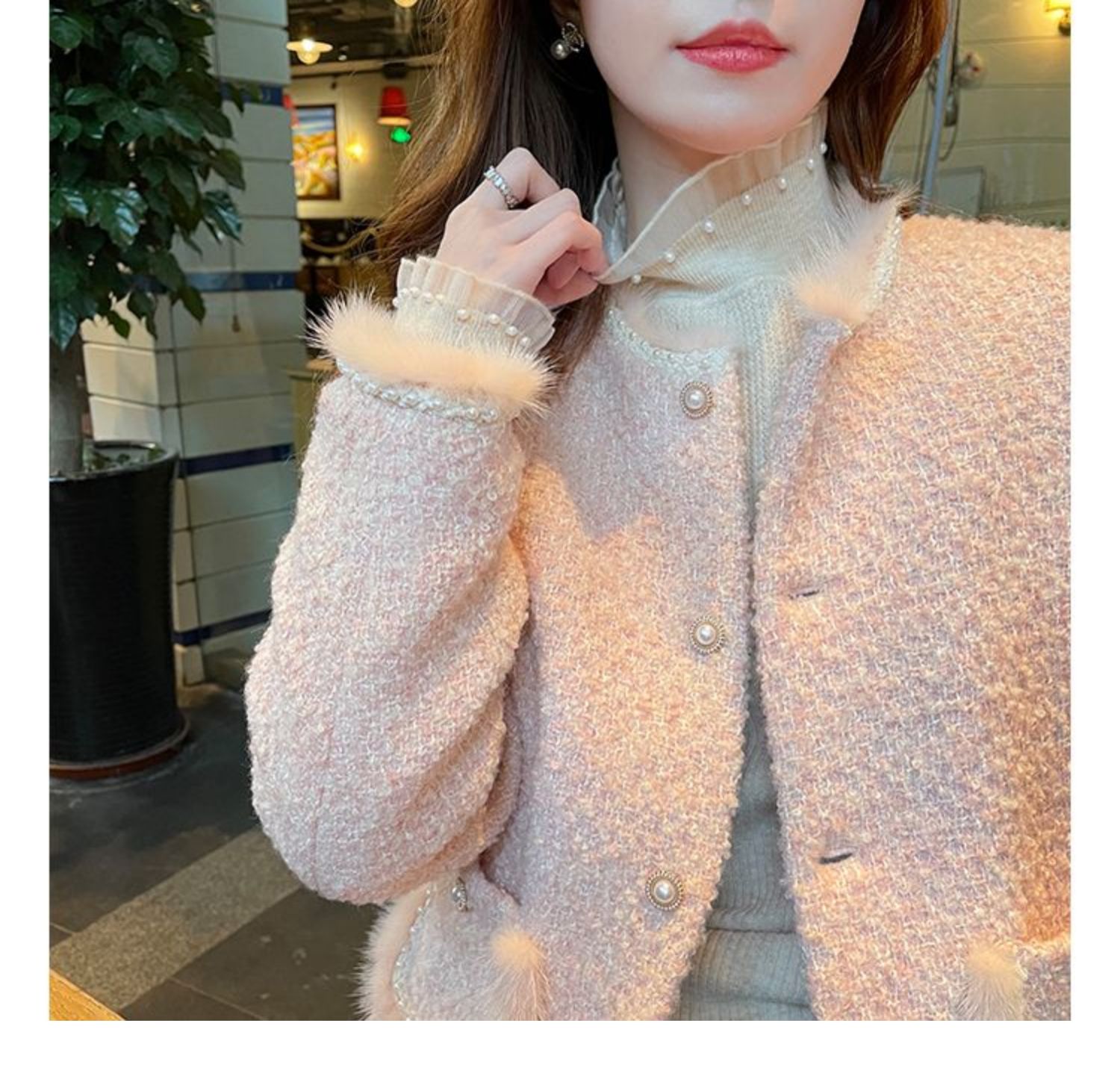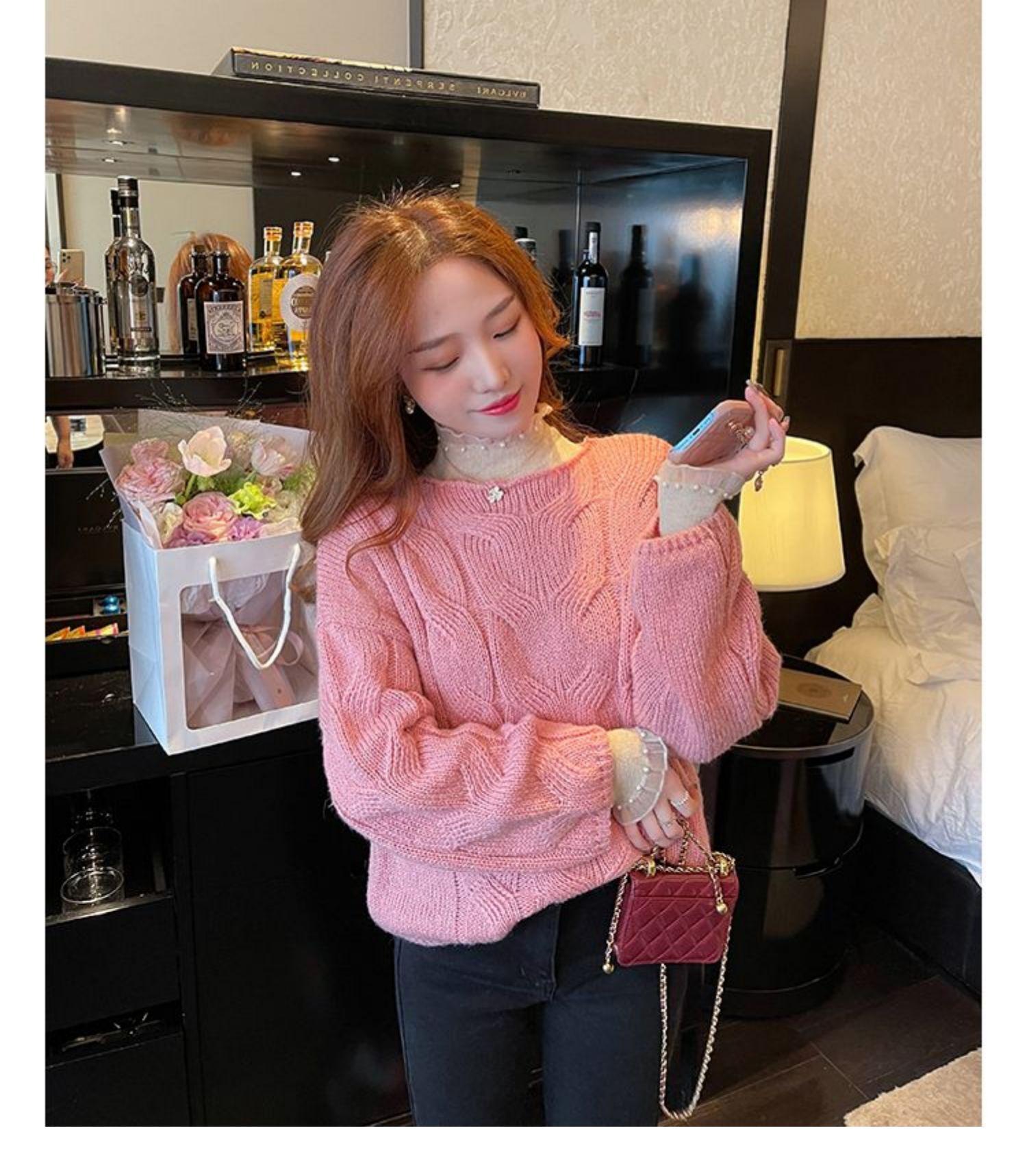 " 雀说 小香风半高领毛衣女秋冬内搭上衣珍珠网纱边针织打底衫3ZF-MZ15123"