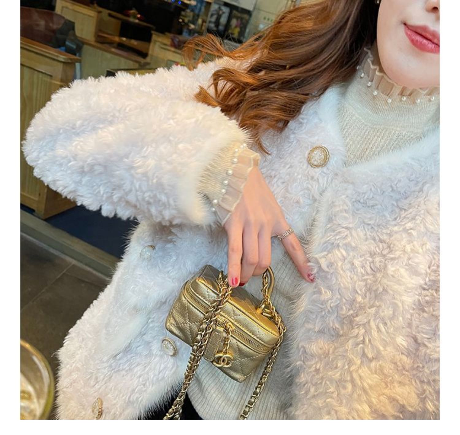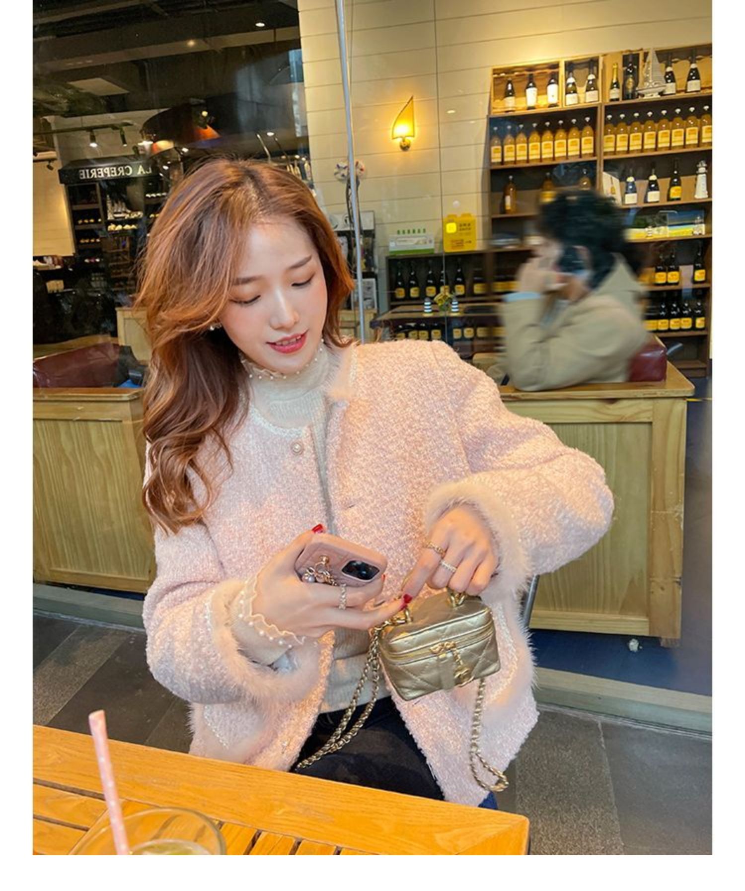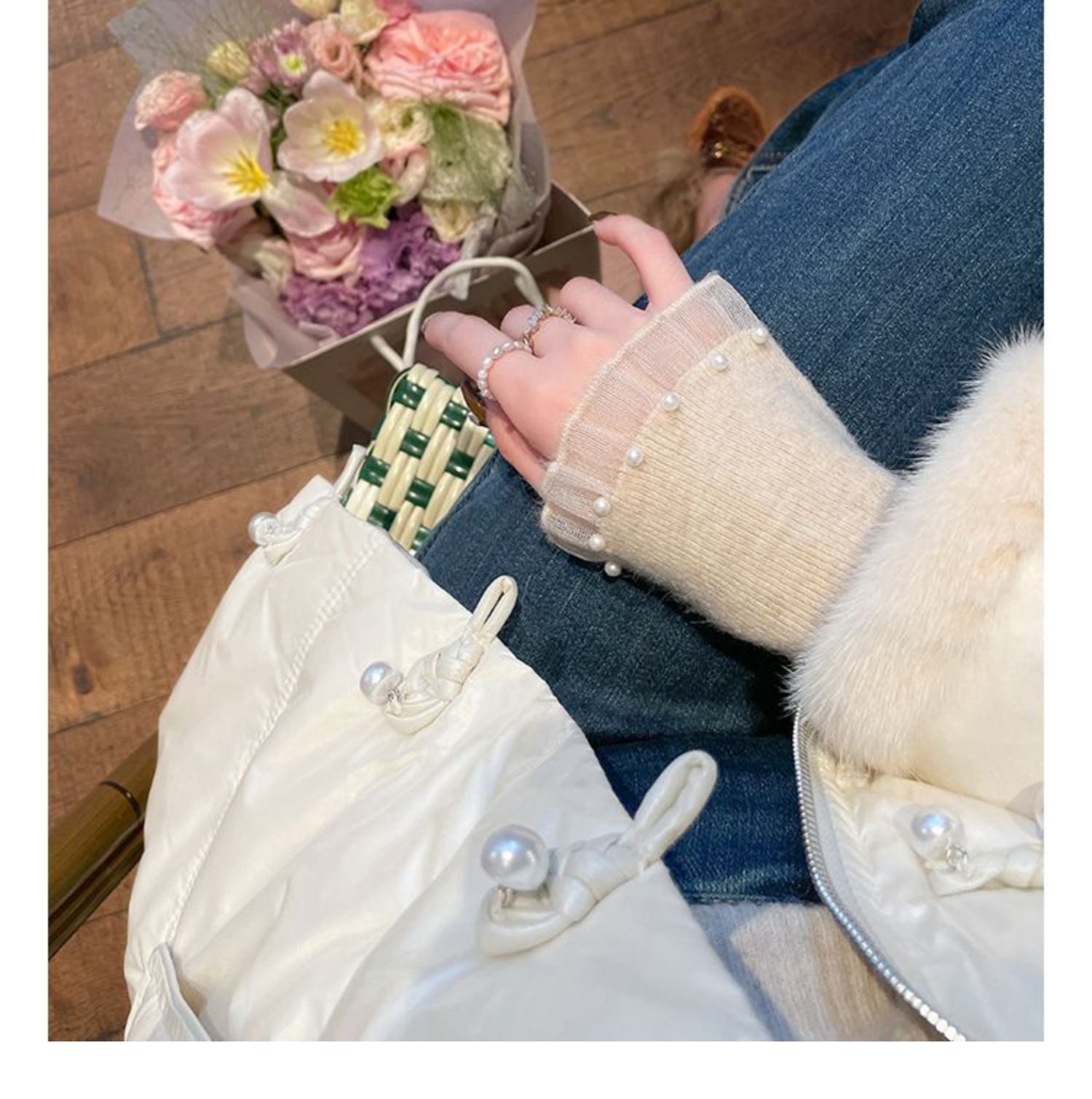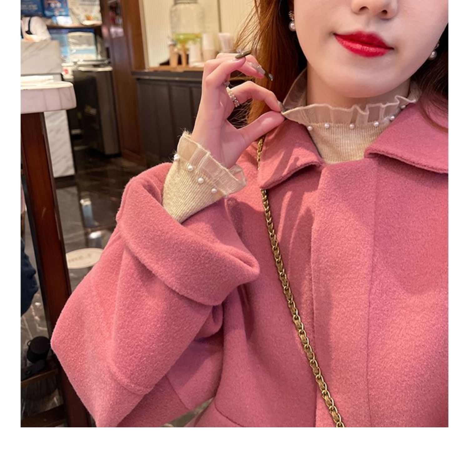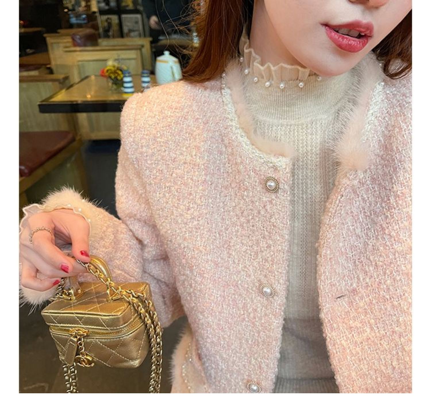 " 雀说 小香风半高领毛衣女秋冬内搭上衣珍珠网纱边针织打底衫3ZF-MZ15123"