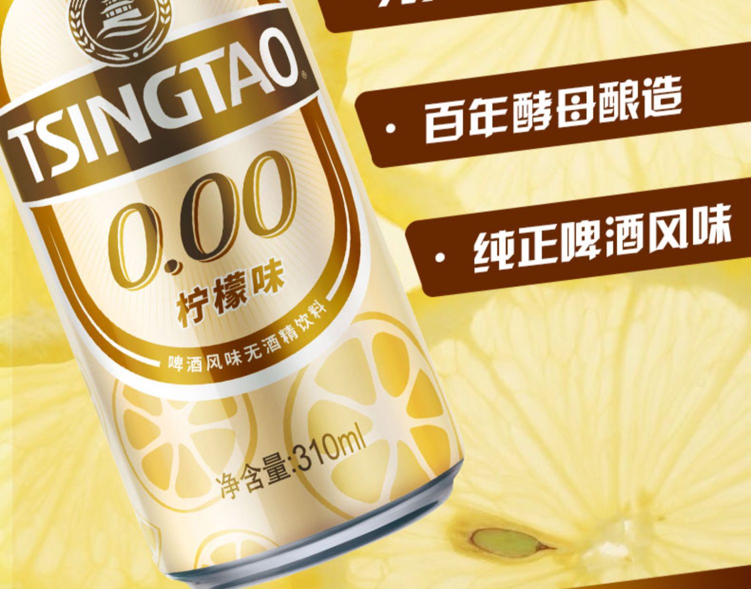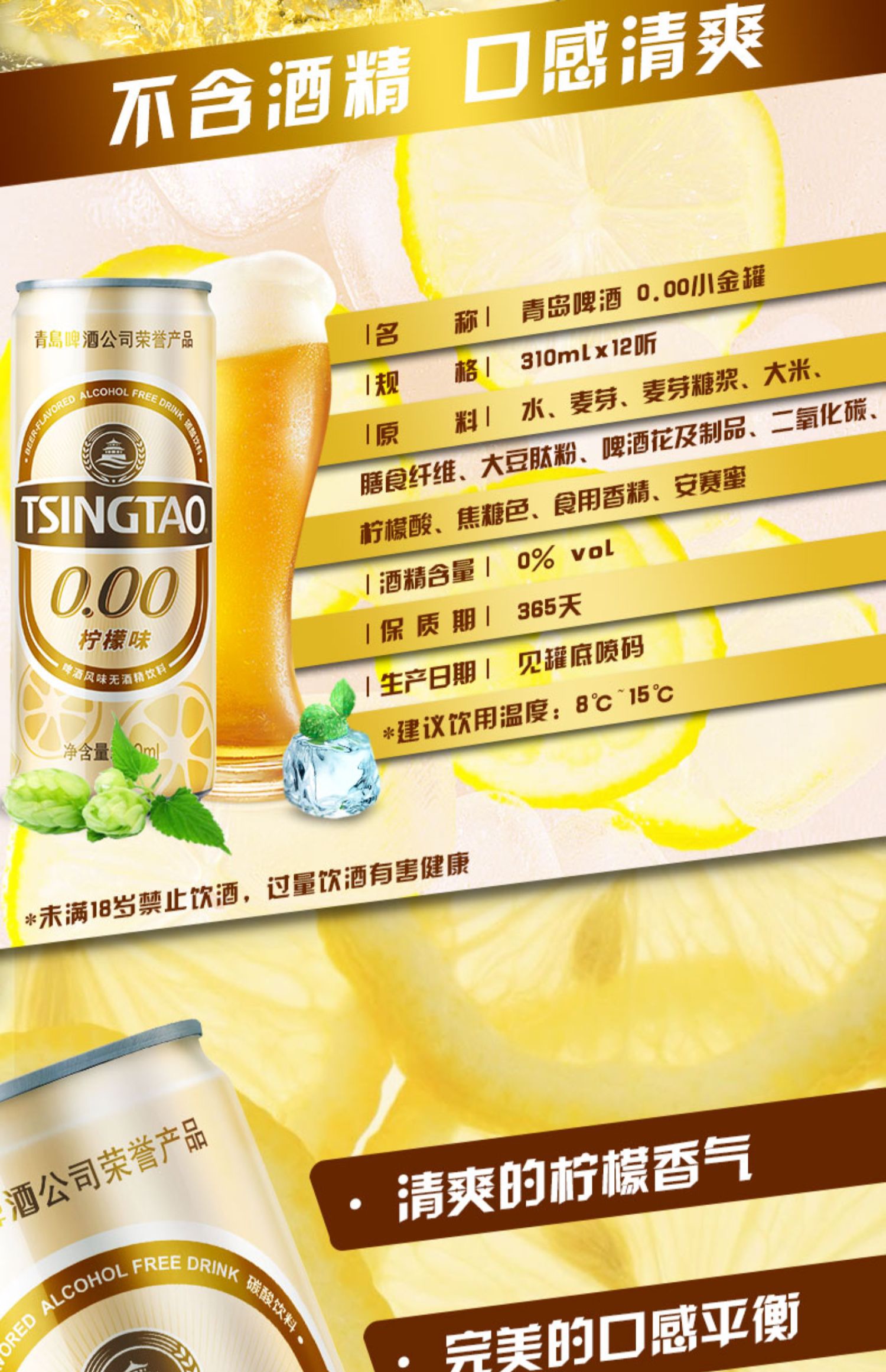 青岛啤酒0°0.00柠檬口味无酒精无度数310ml*12听