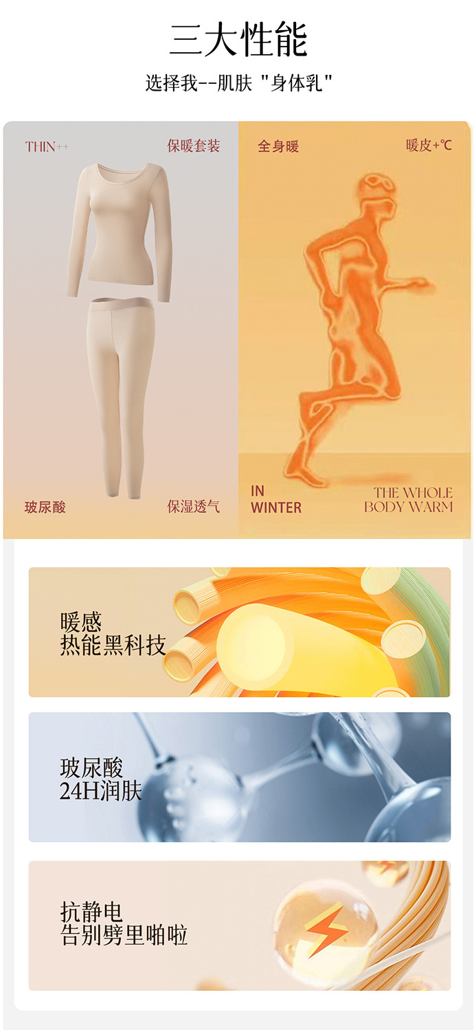 雀说 美肤衣女士隐形打底保暖内衣套装873