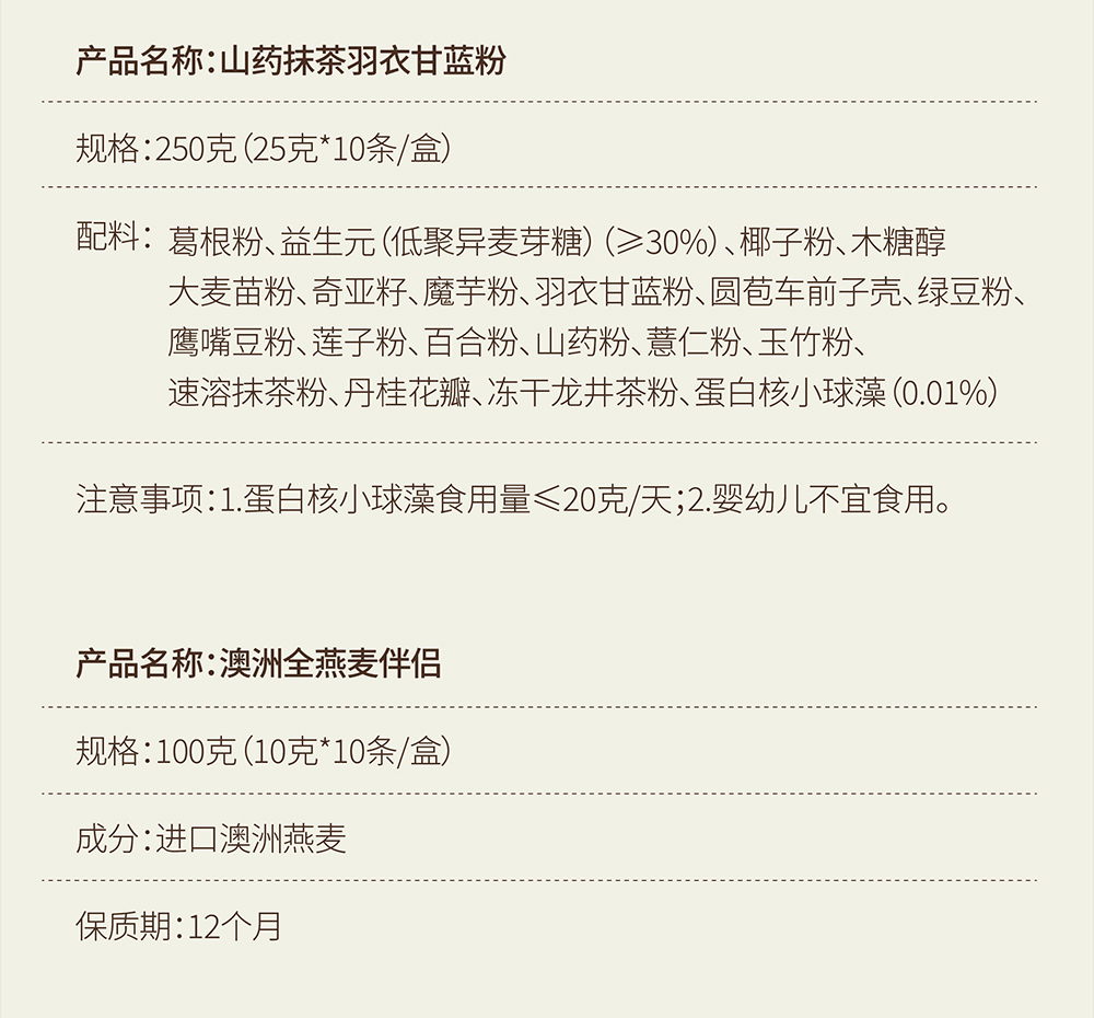 山药抹茶羽衣甘蓝粉250克/盒(25g*10)