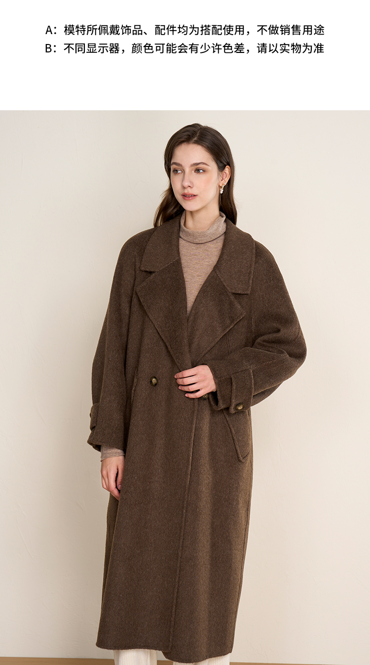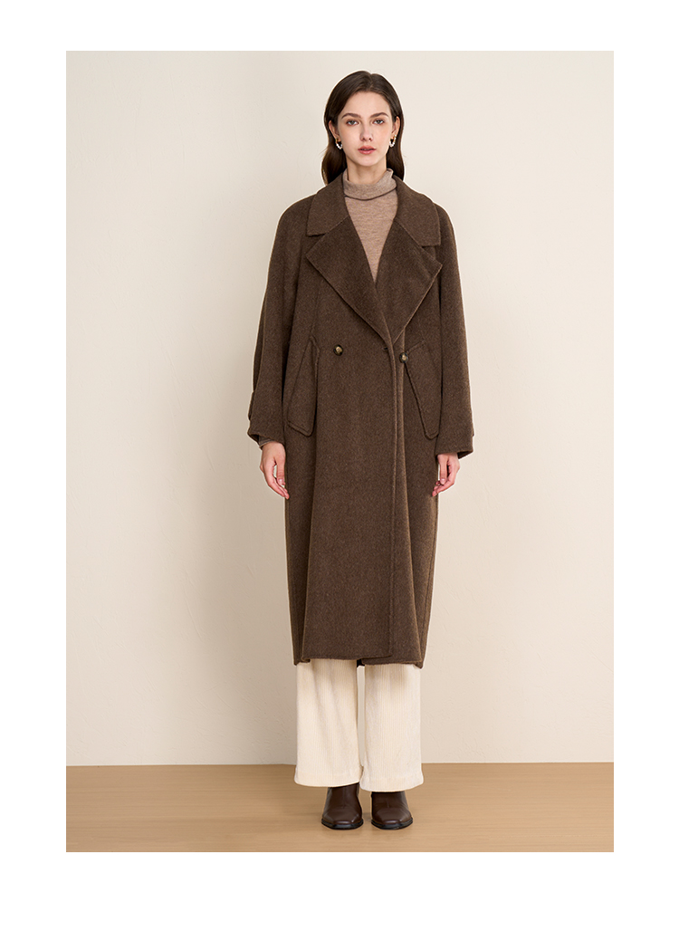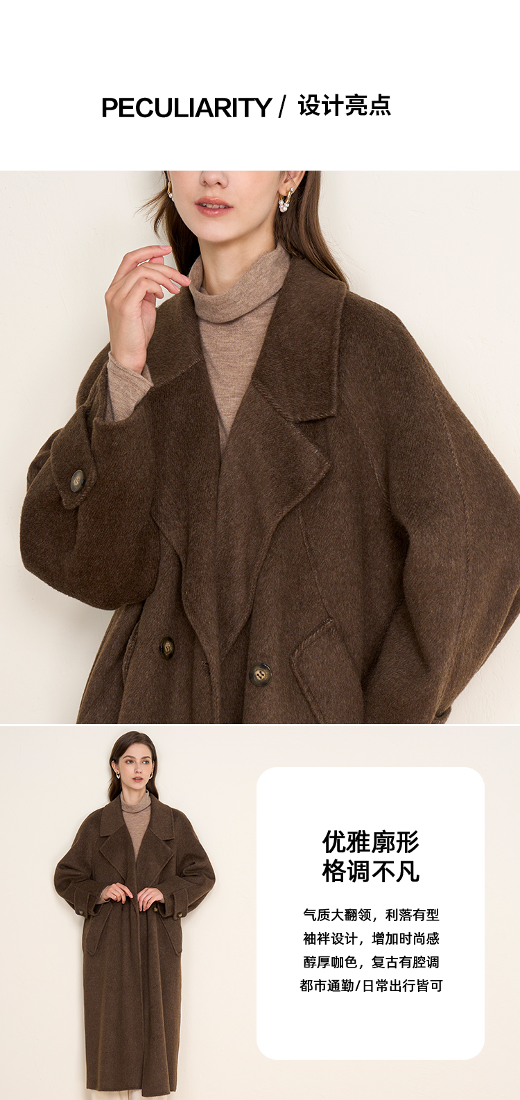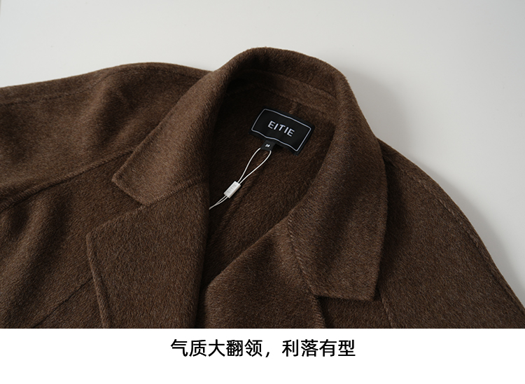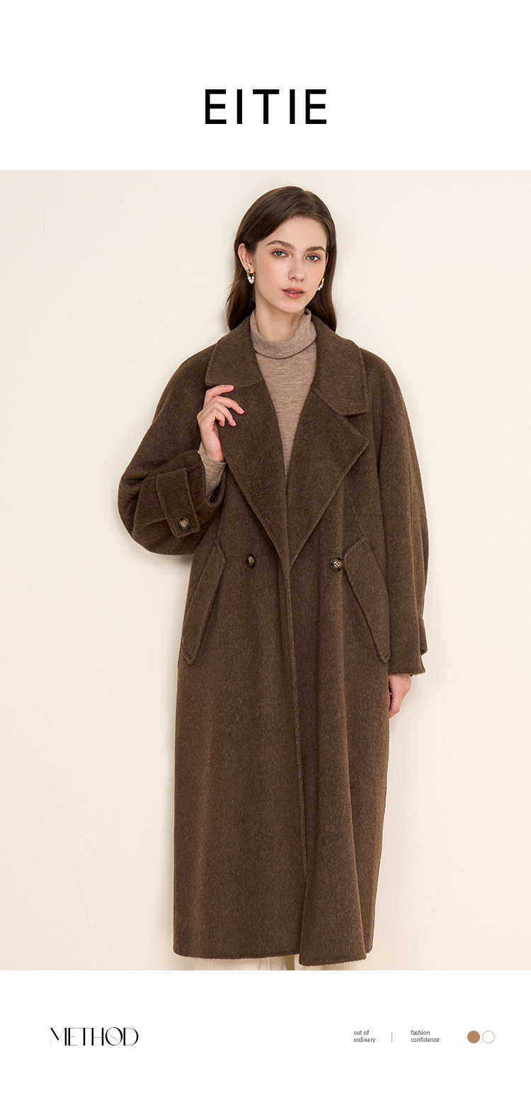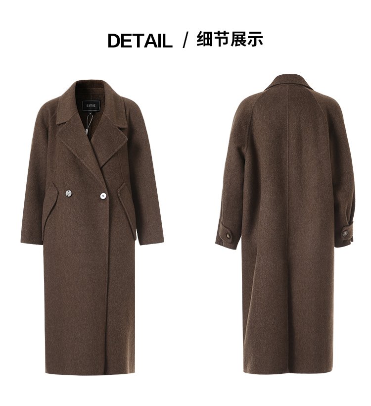 EITIE爱特爱宽松慵懒感深棕色时尚保暖羊毛呢大衣冬季新款D2514913