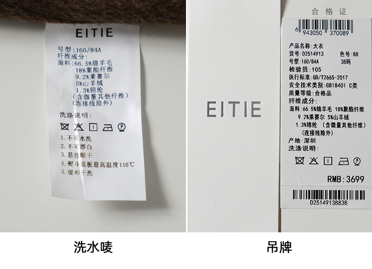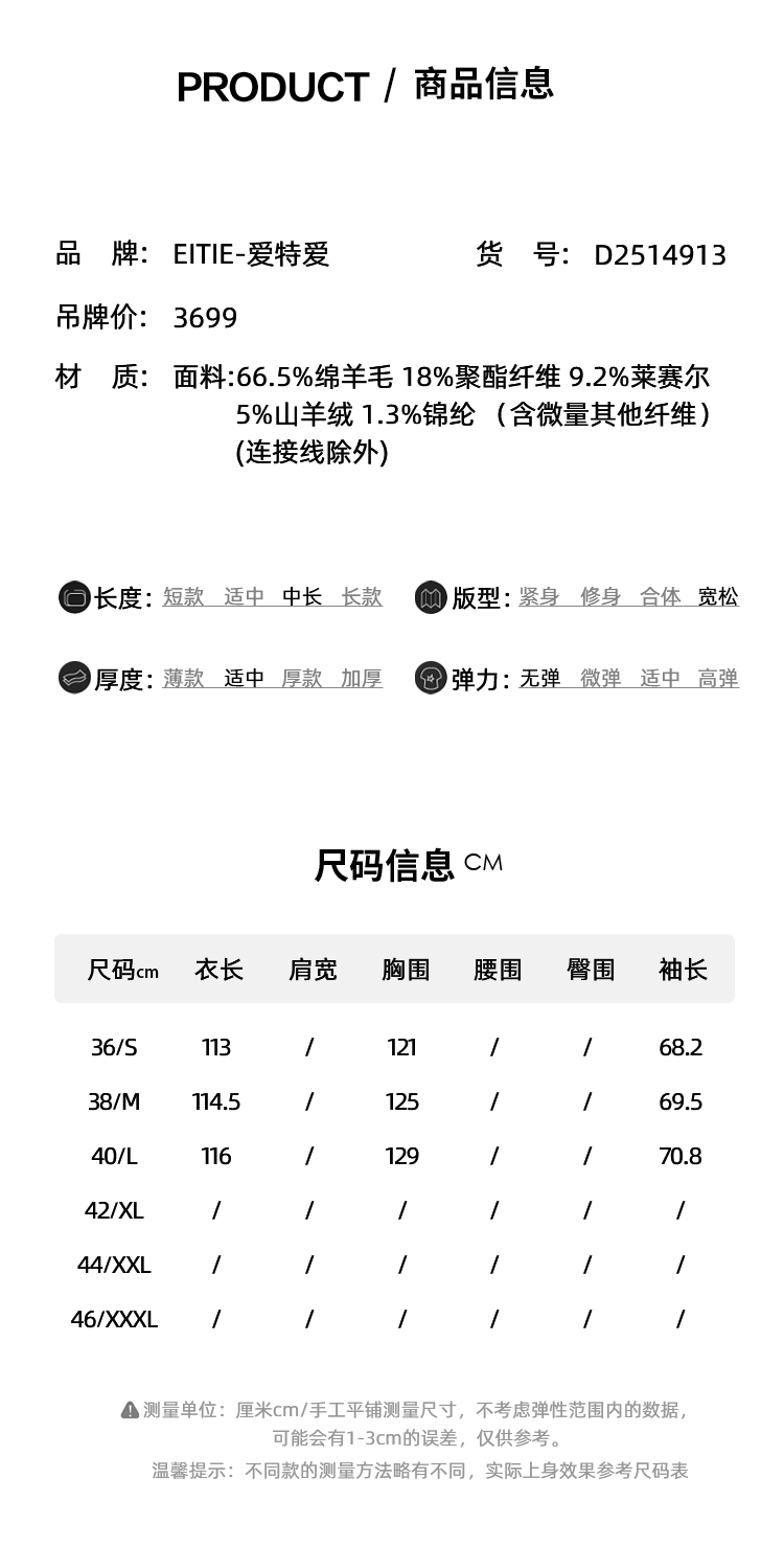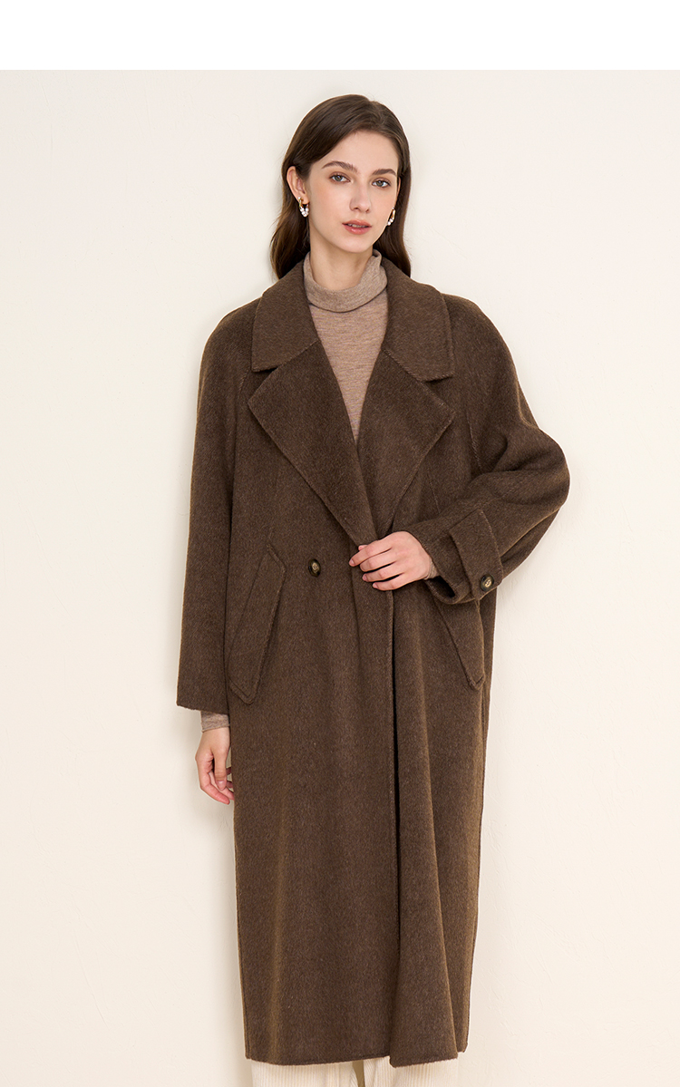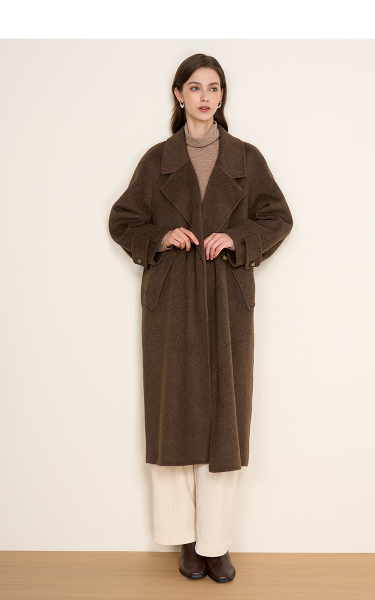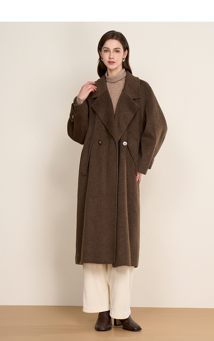 EITIE爱特爱宽松慵懒感深棕色时尚保暖羊毛呢大衣冬季新款D2514913