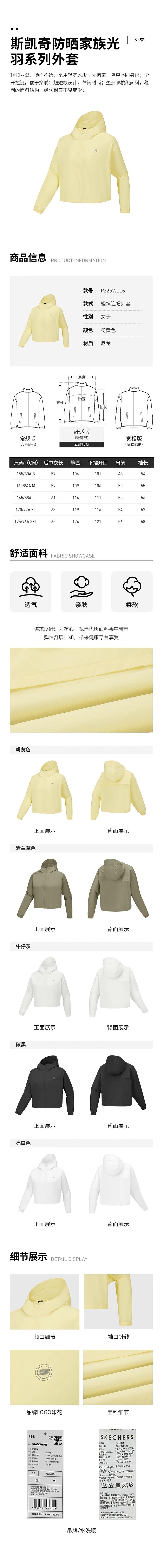 Skechers斯凯奇 女梭织连帽外套防晒服 P225W116-0018
