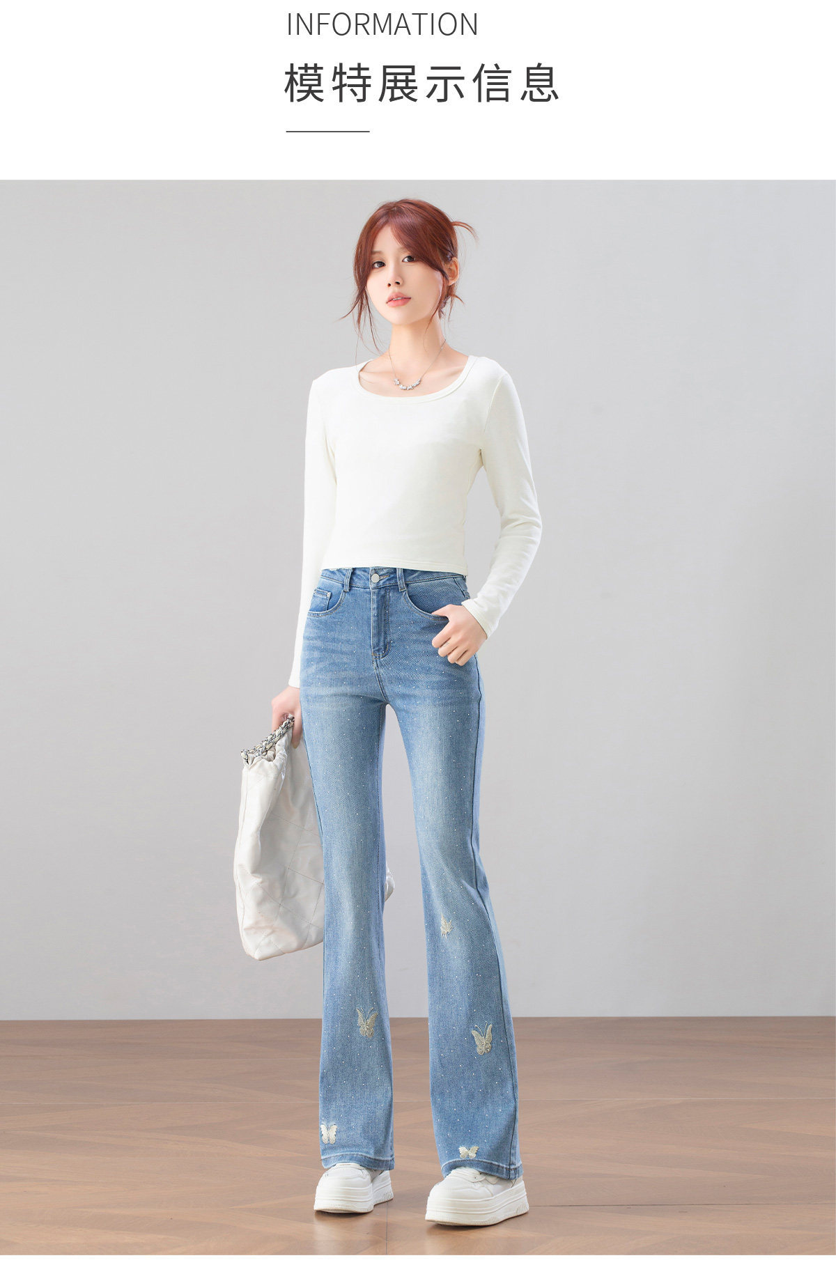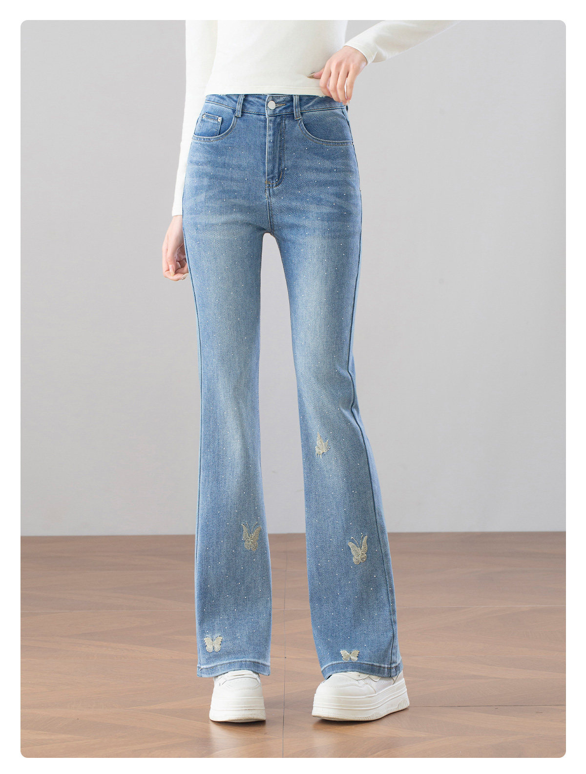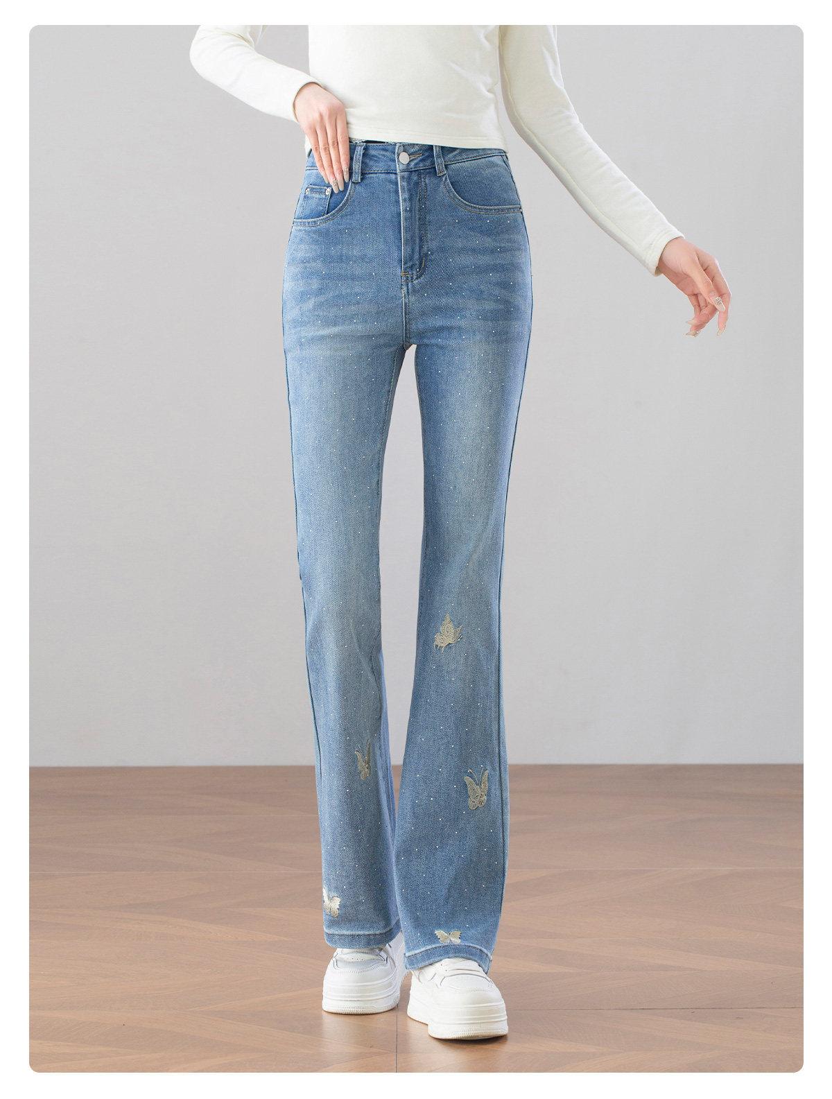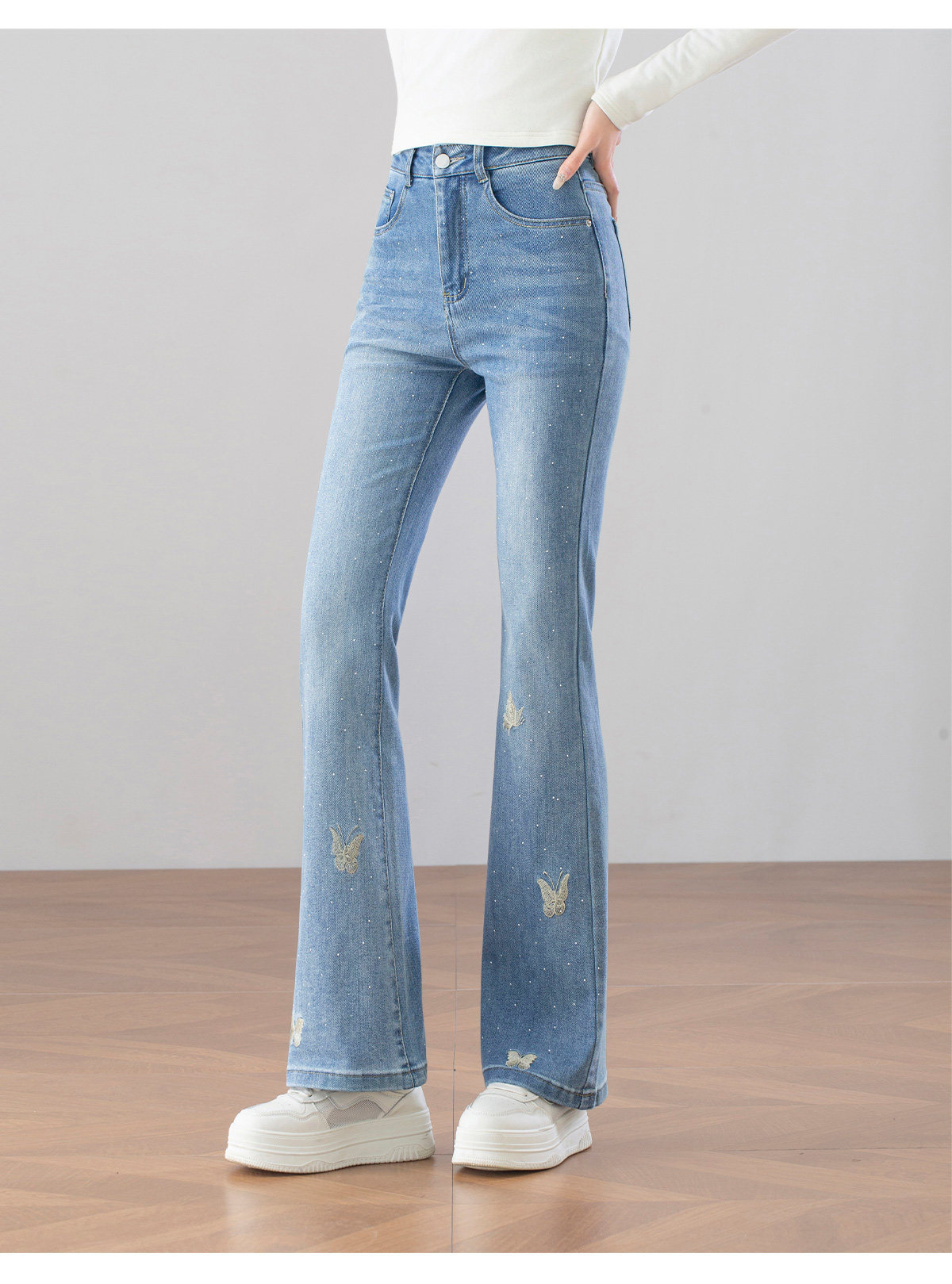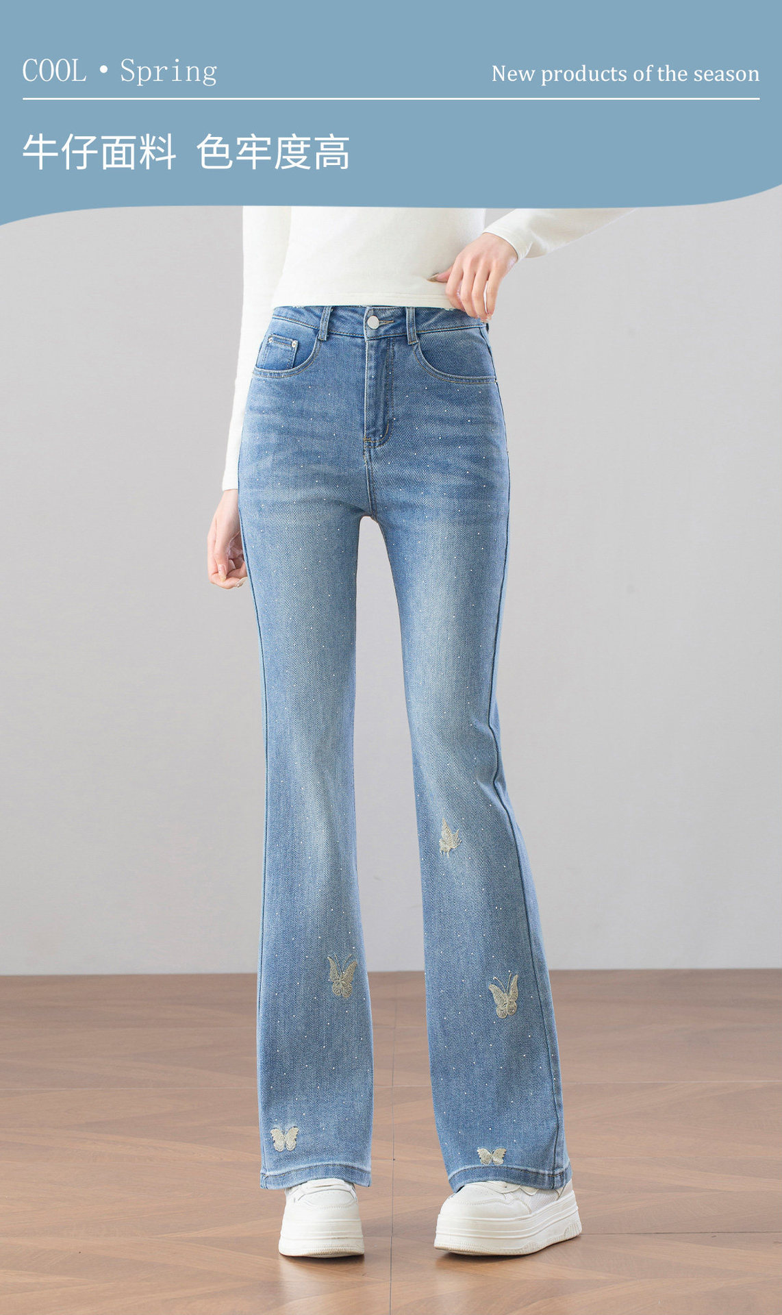 「自」全新升级【铂金会员146/天猫199/差价53】(14829)洛诗琳时尚烫钻刺绣牛仔裤2026春季新款高腰显瘦喇叭长裤