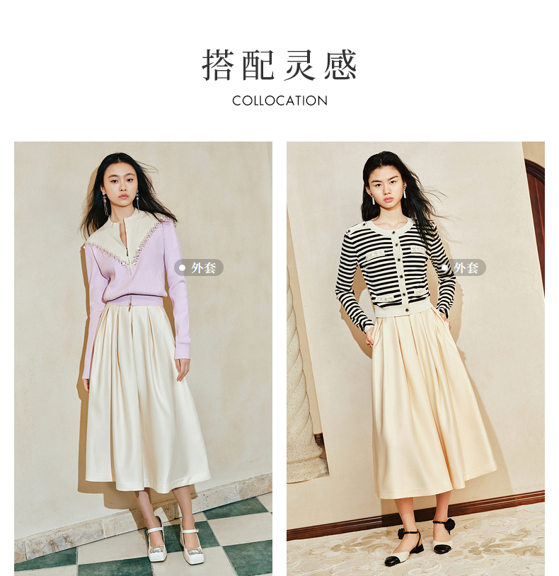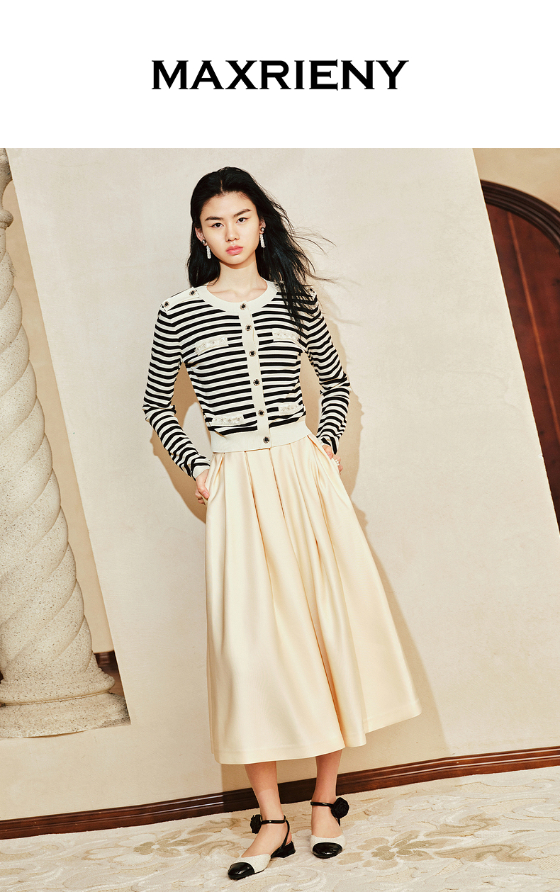 【商场同款-都市华丽日常】MAXRIENY华丽哑光缎面大圆摆半裙24春(货号:MC85SK035)