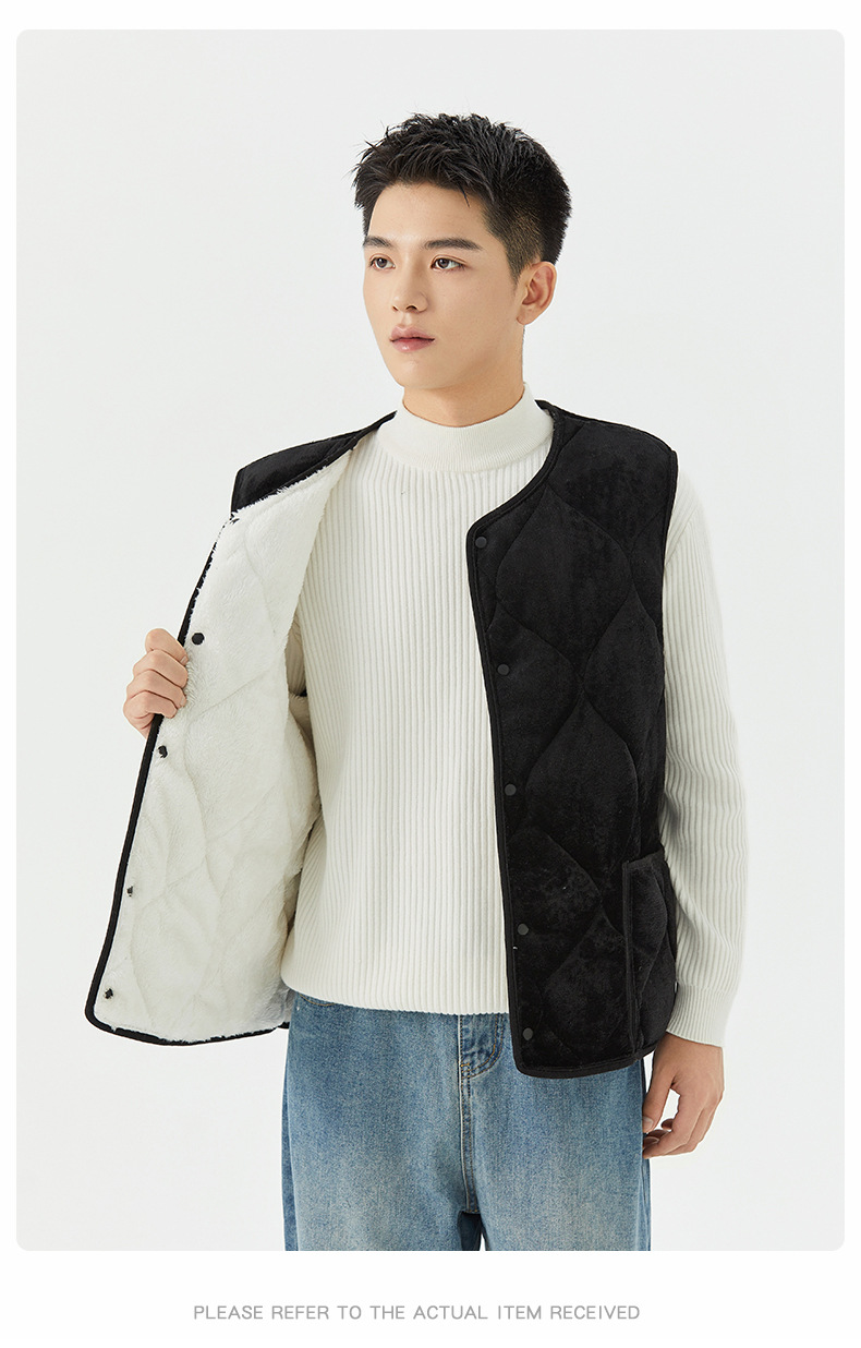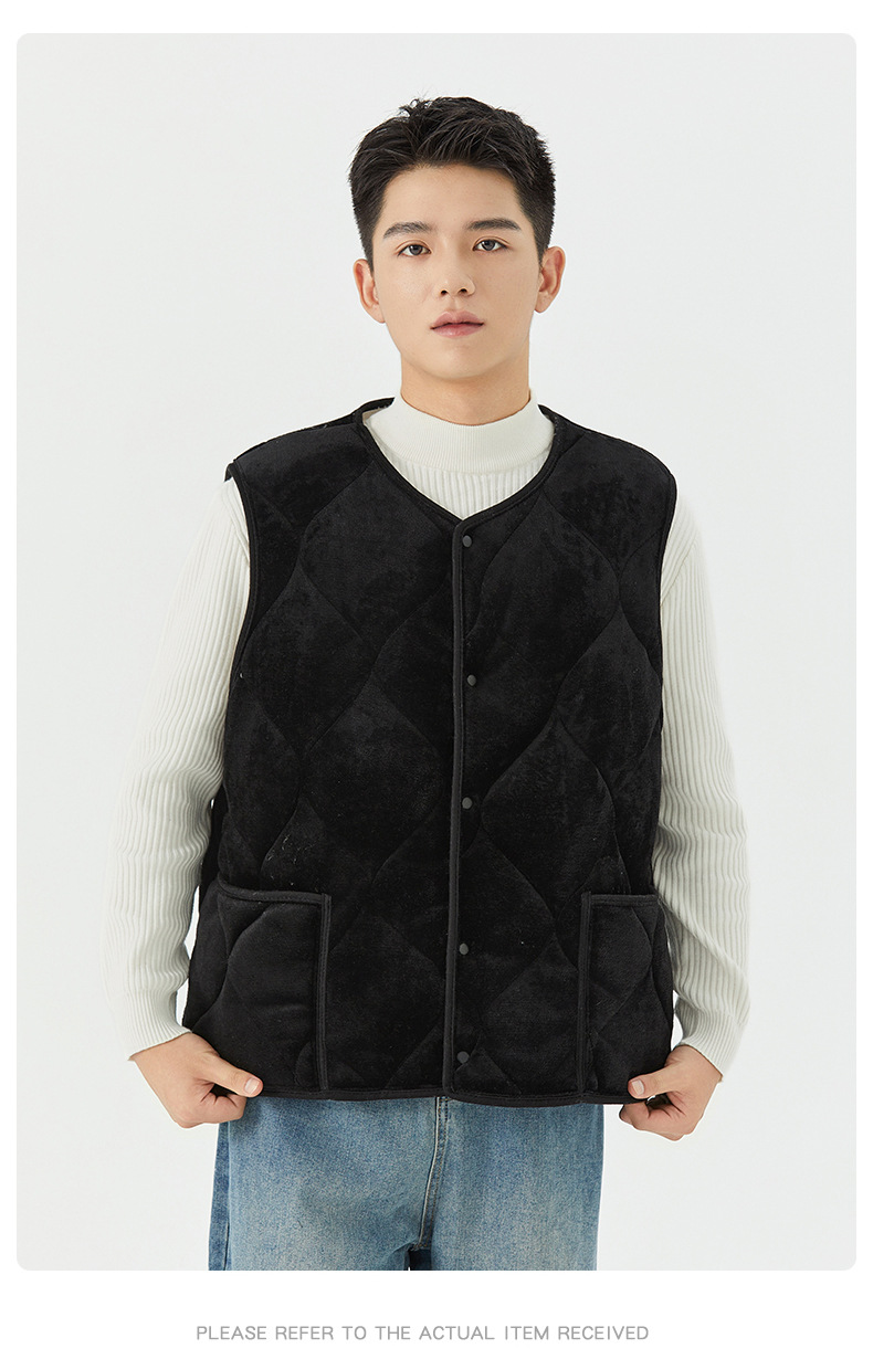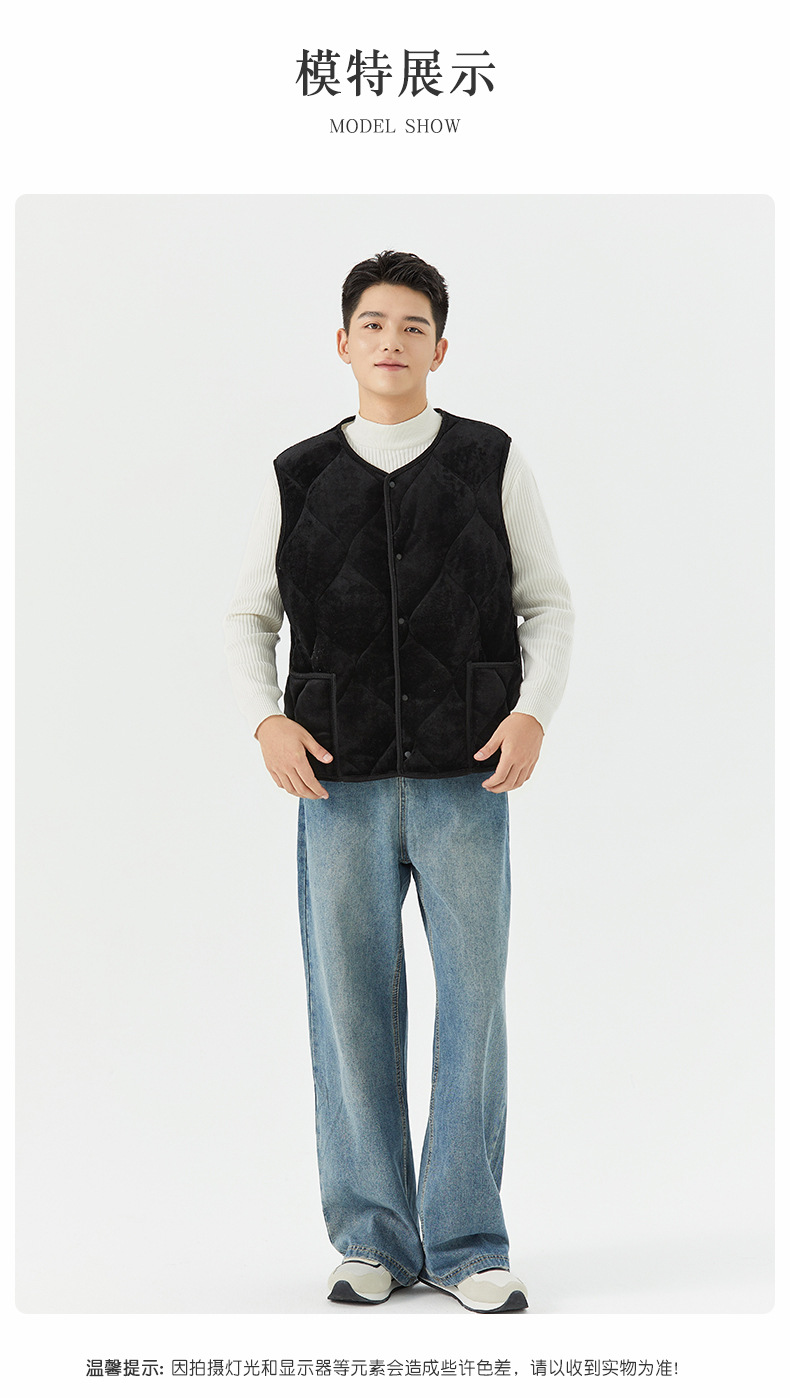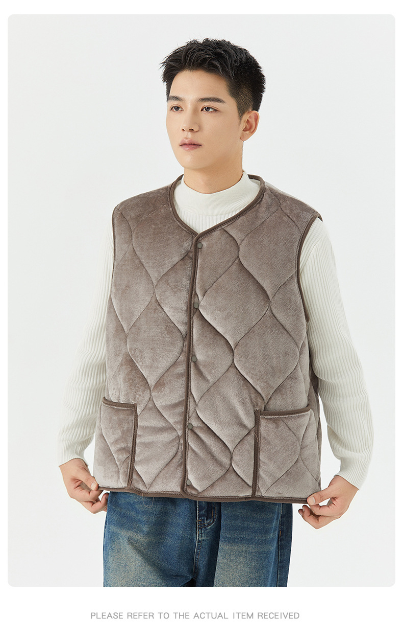 【内里加厚冬绒更保暖❗️出行防风轻便有型】新款男女通用男士冬季绒面加绒休闲男款家居扣棉马甲。hb