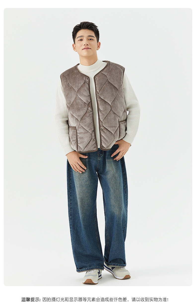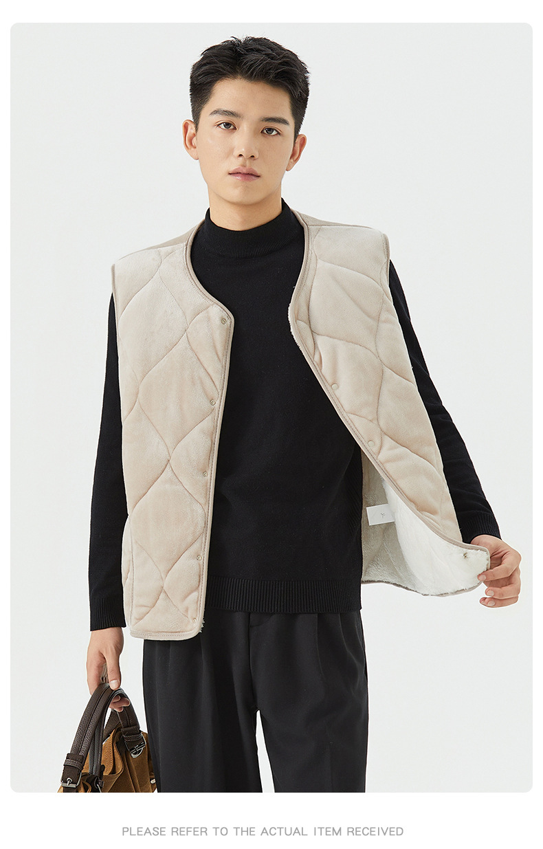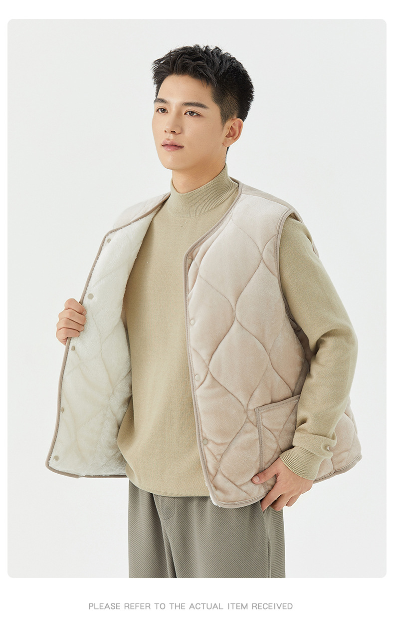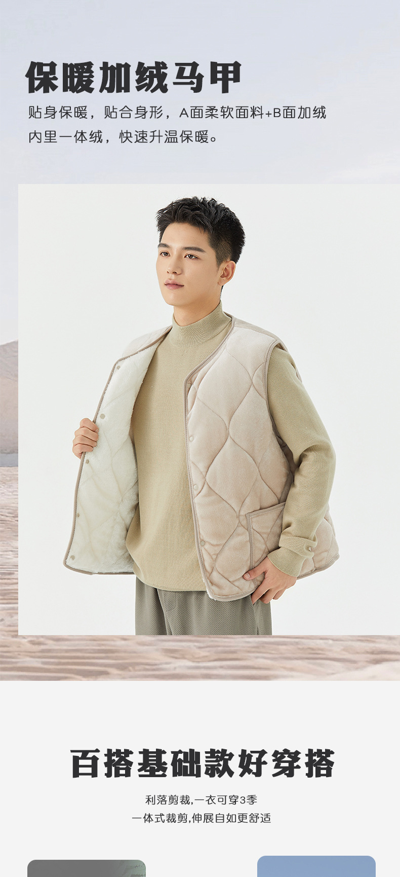 【内里加厚冬绒更保暖❗️出行防风轻便有型】新款男女通用男士冬季绒面加绒休闲男款家居扣棉马甲。hb