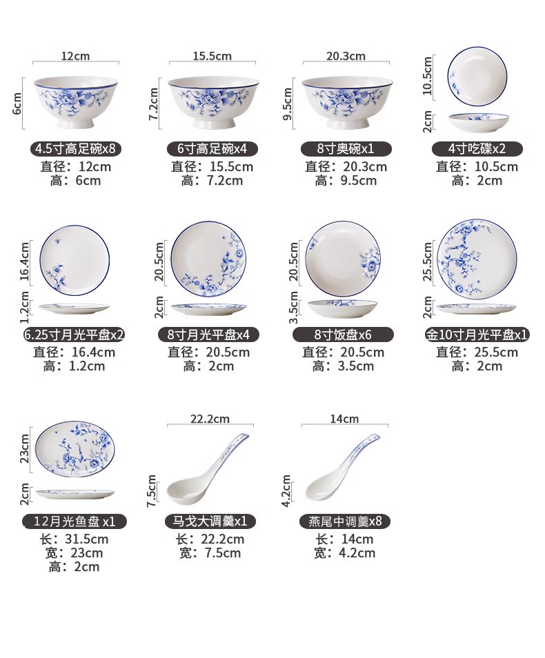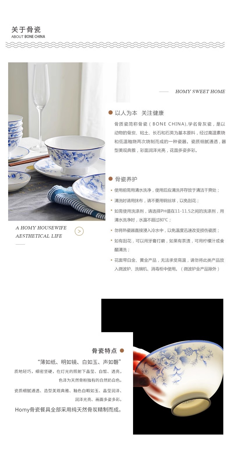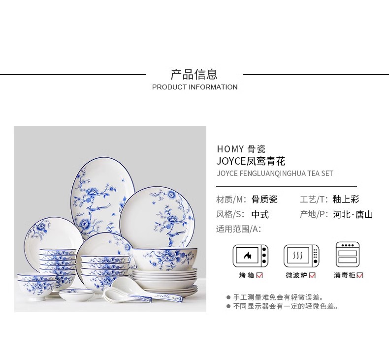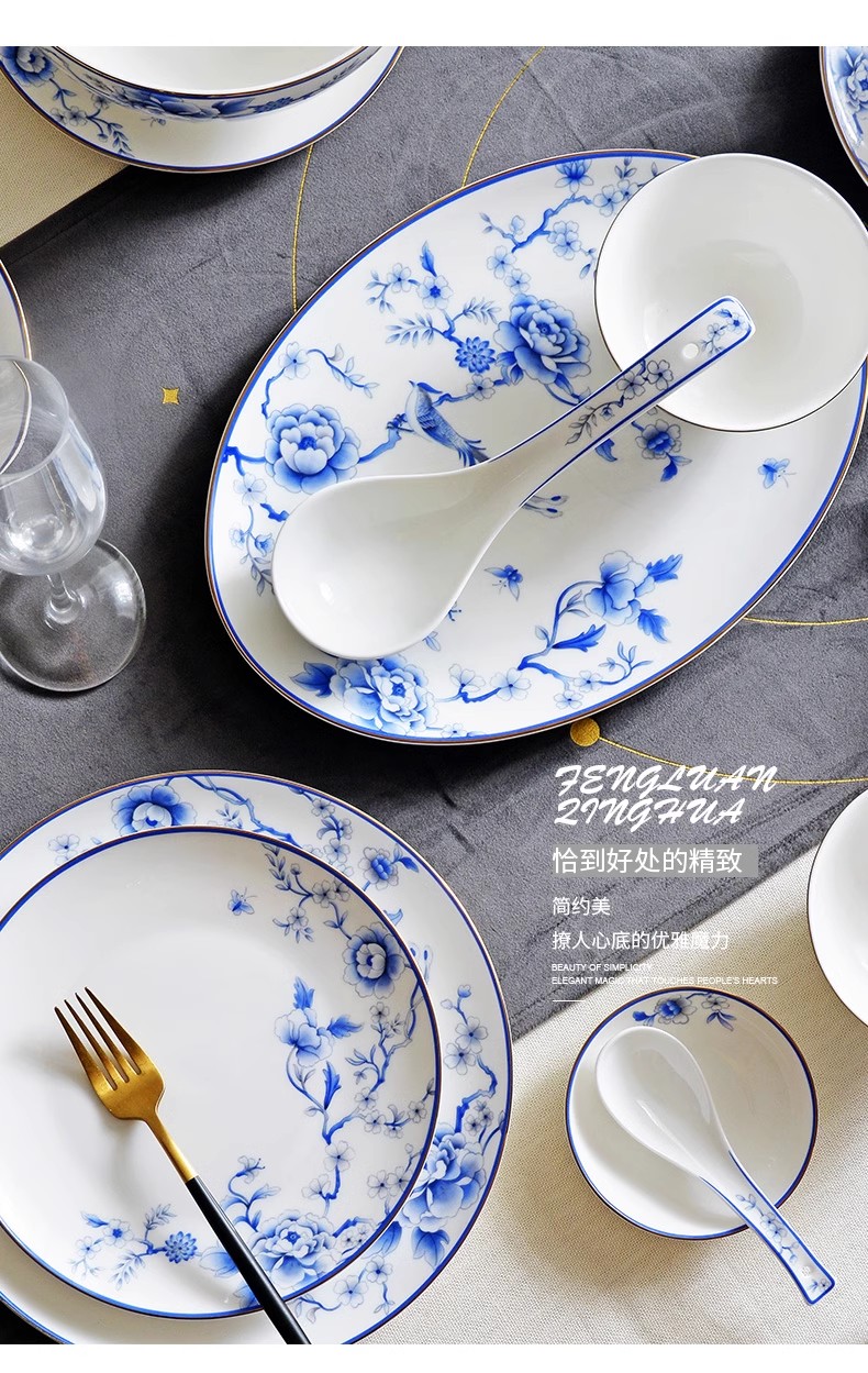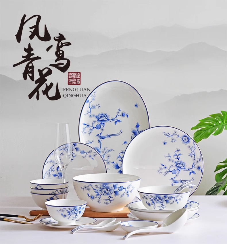 HOMY餐具套装青花凤鸾秀38件组