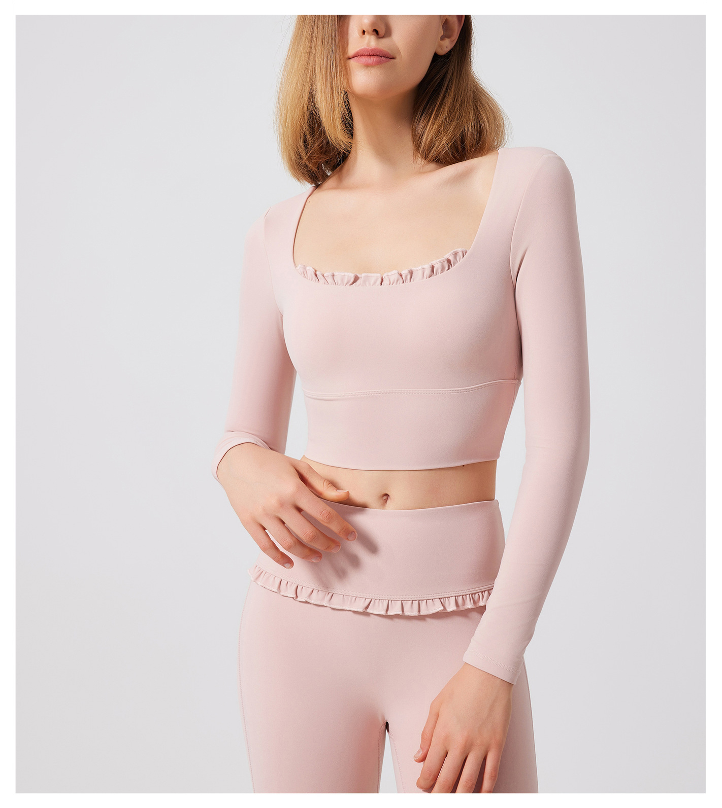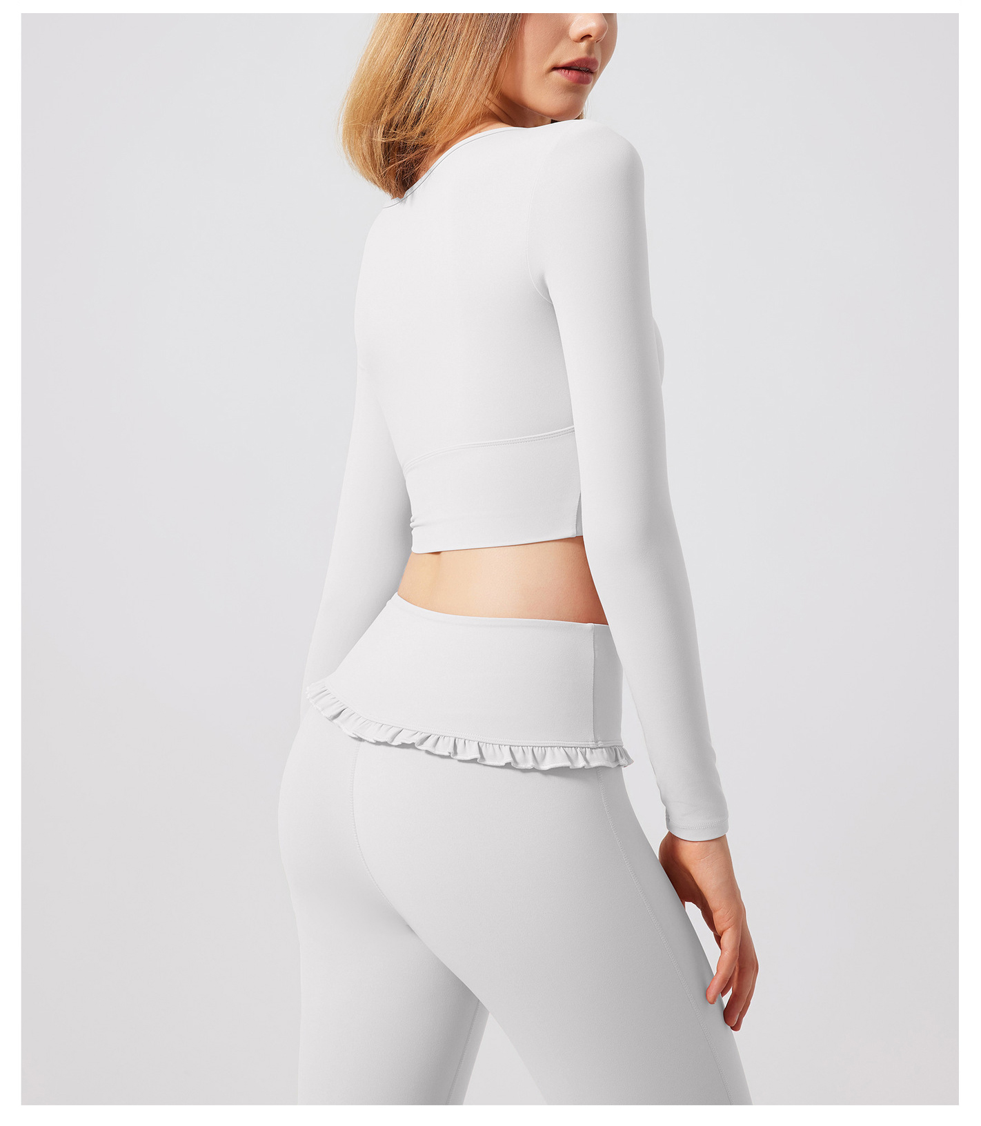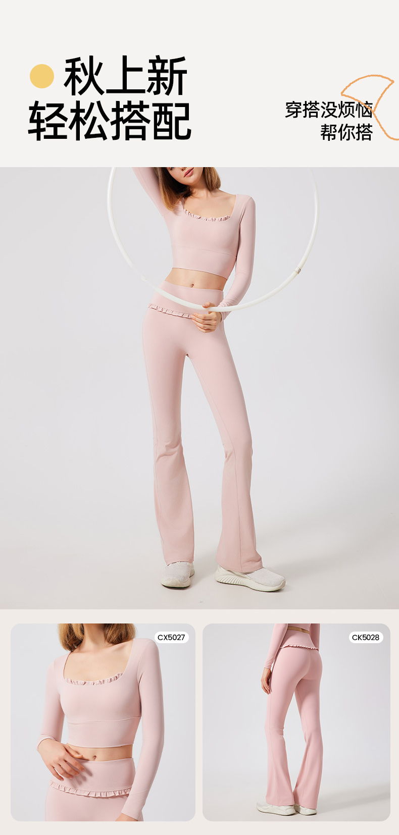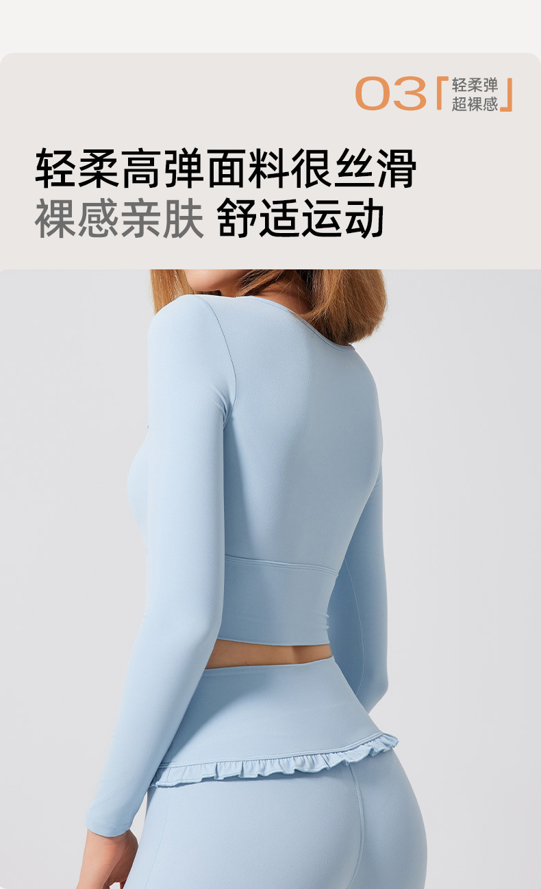 跃牌【禅语梵心】秋冬裸感花边瑜伽服长袖半固定杯跑步修身运动文胸透气健身服上衣CX5027