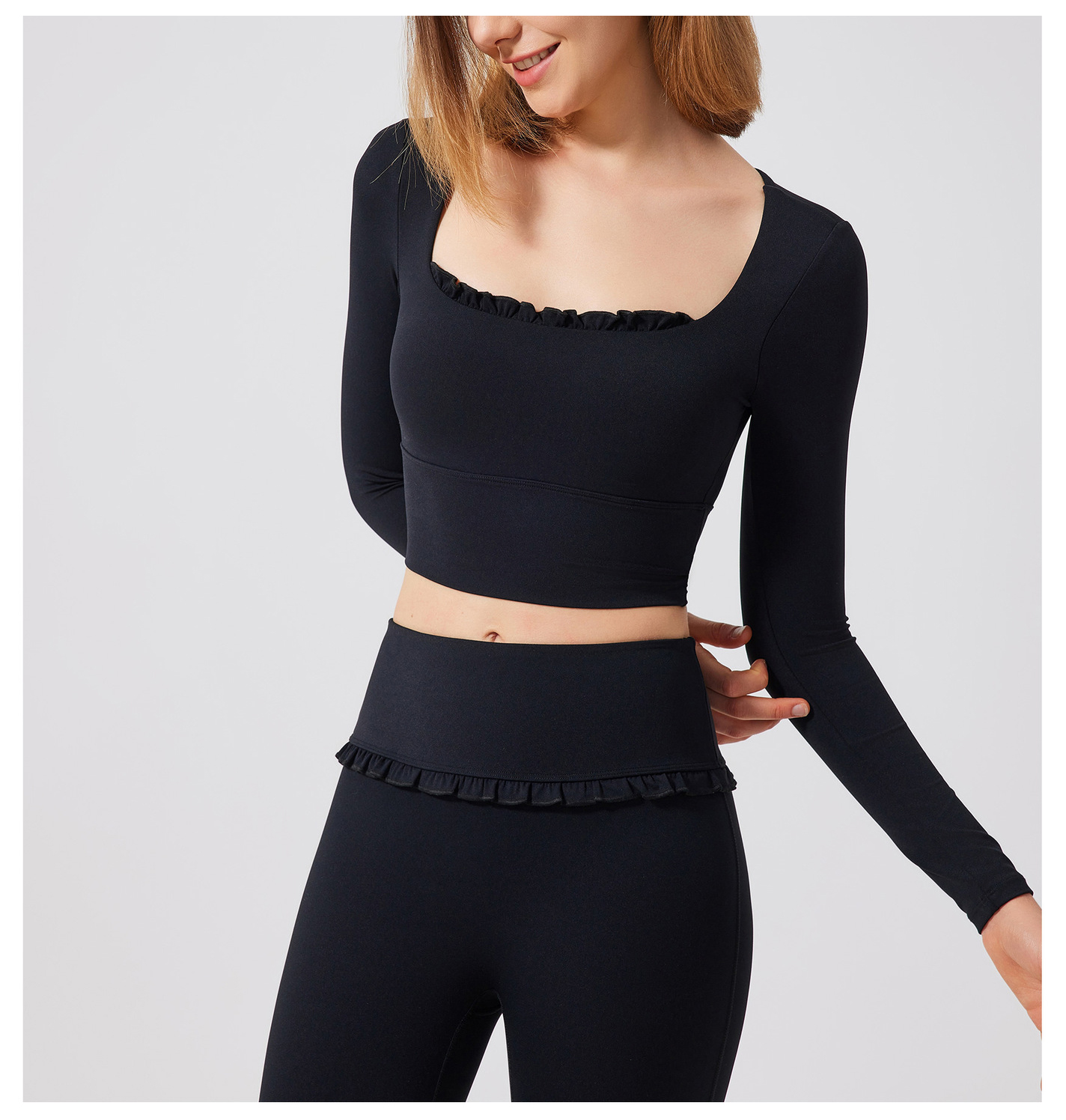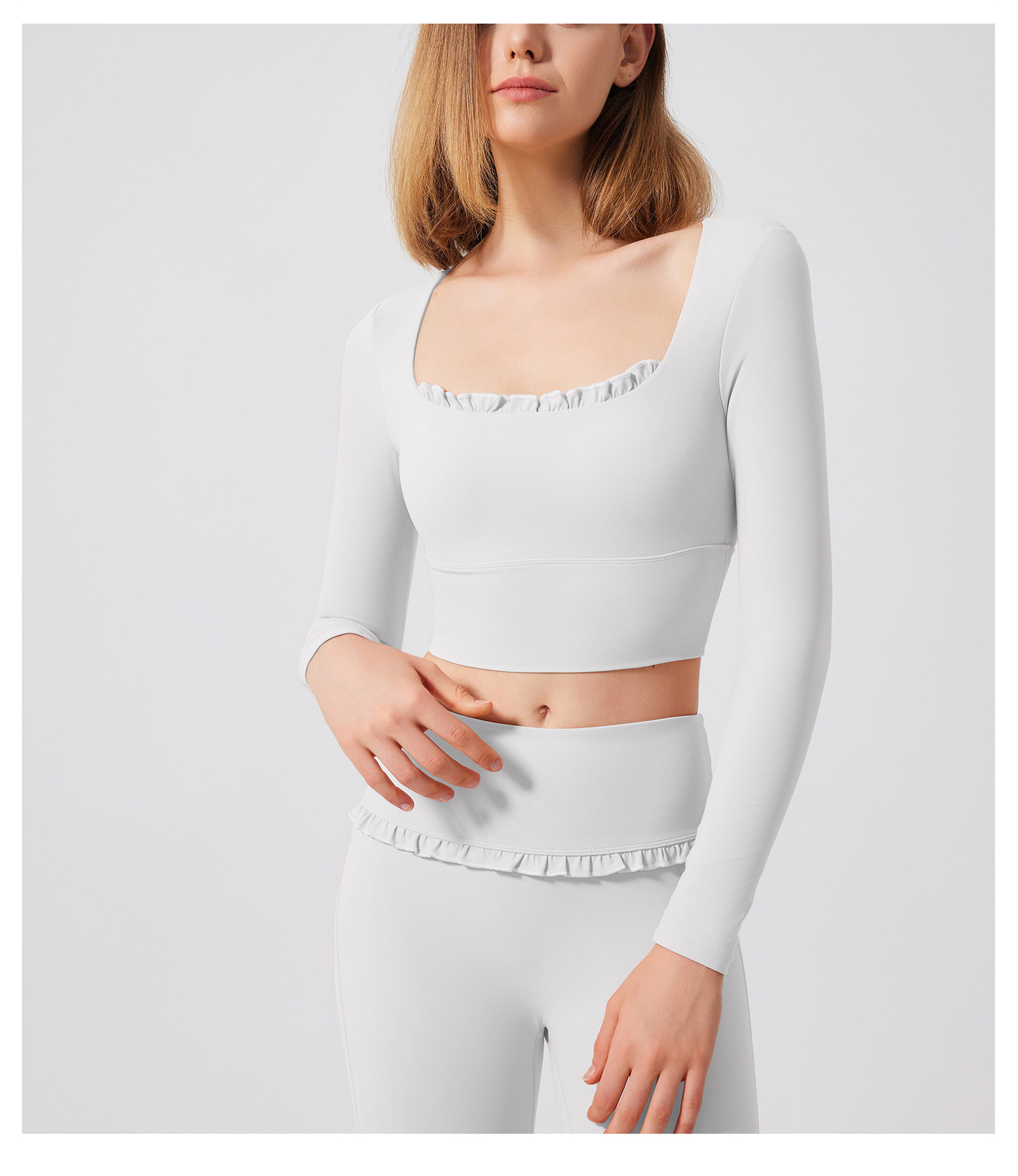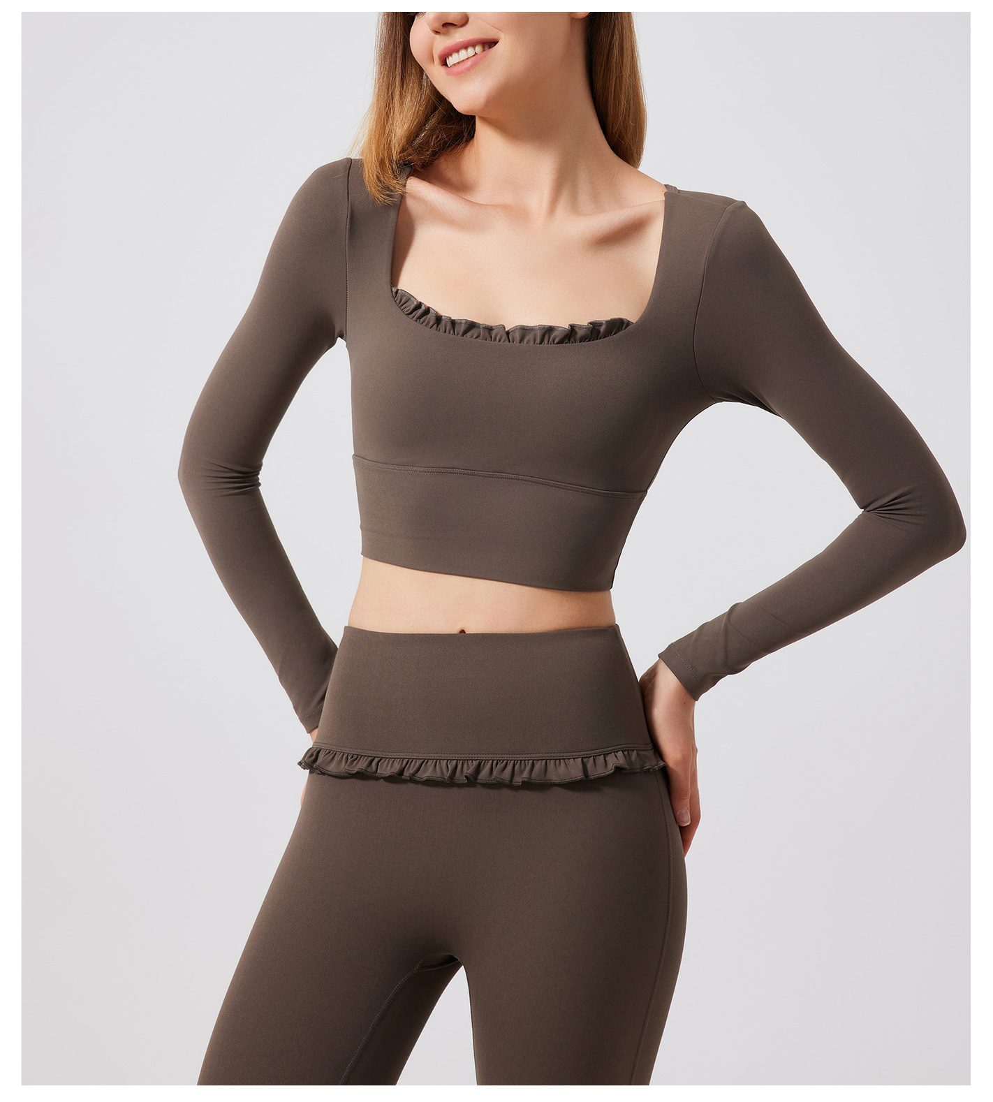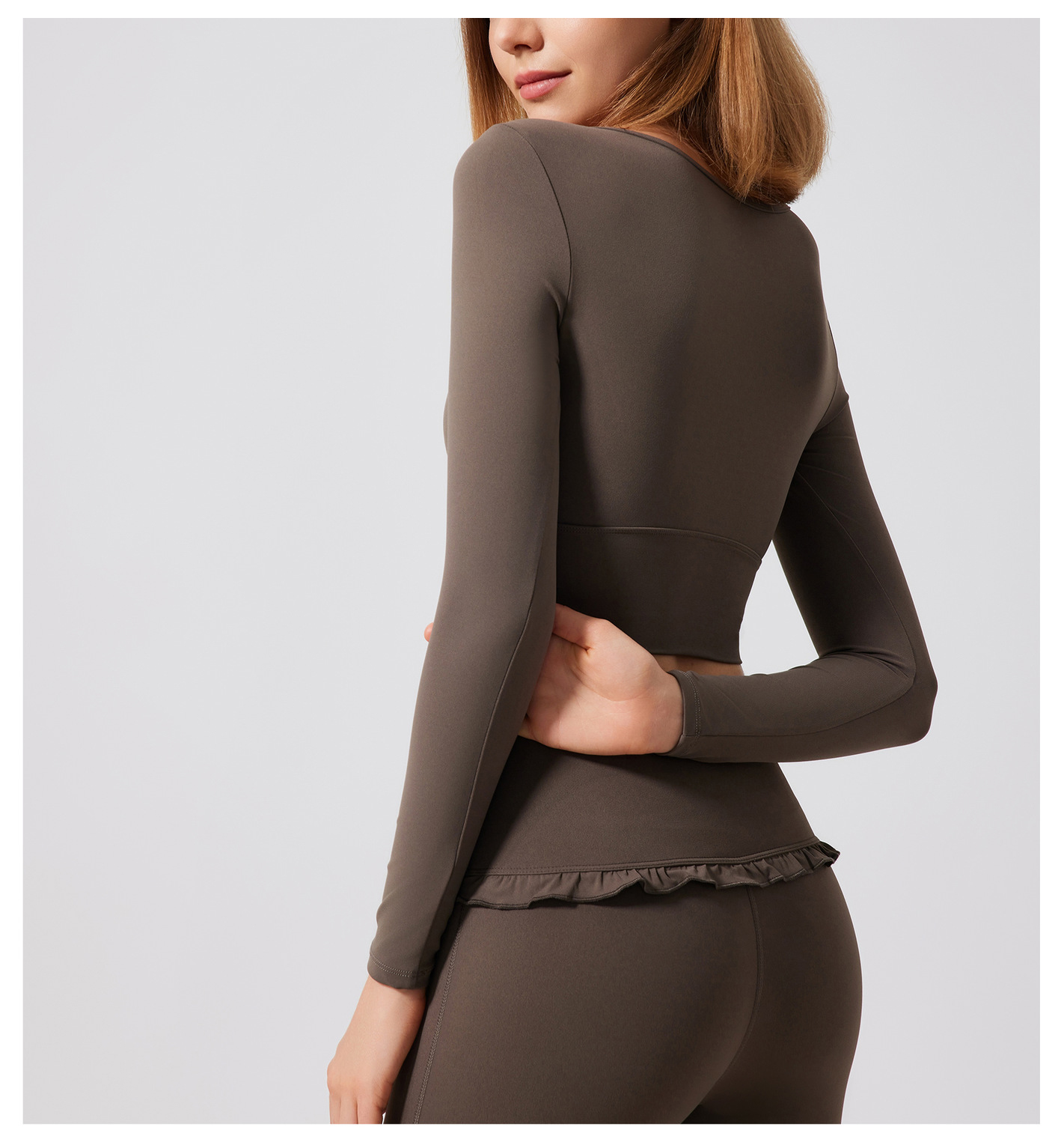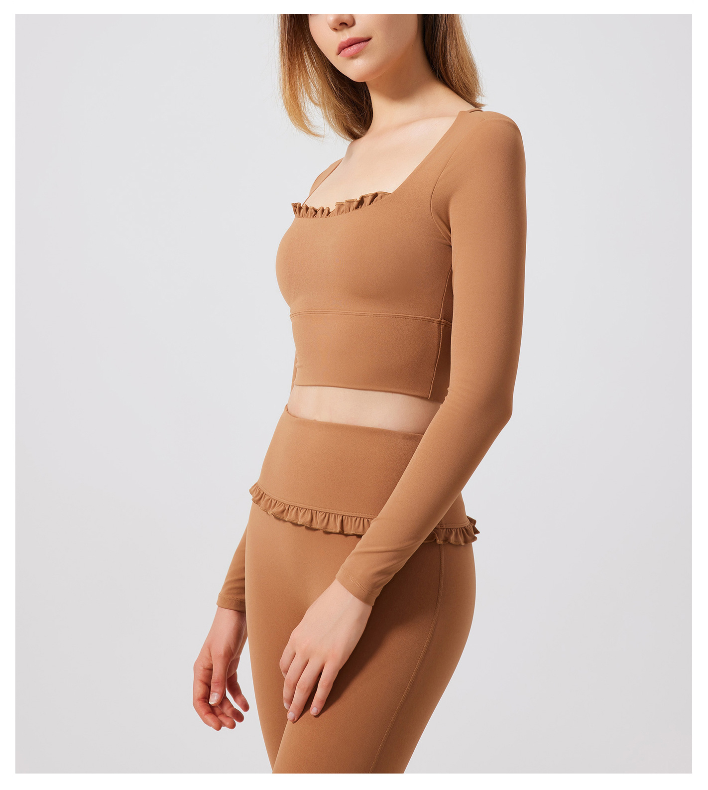 跃牌【禅语梵心】秋冬裸感花边瑜伽服长袖半固定杯跑步修身运动文胸透气健身服上衣CX5027