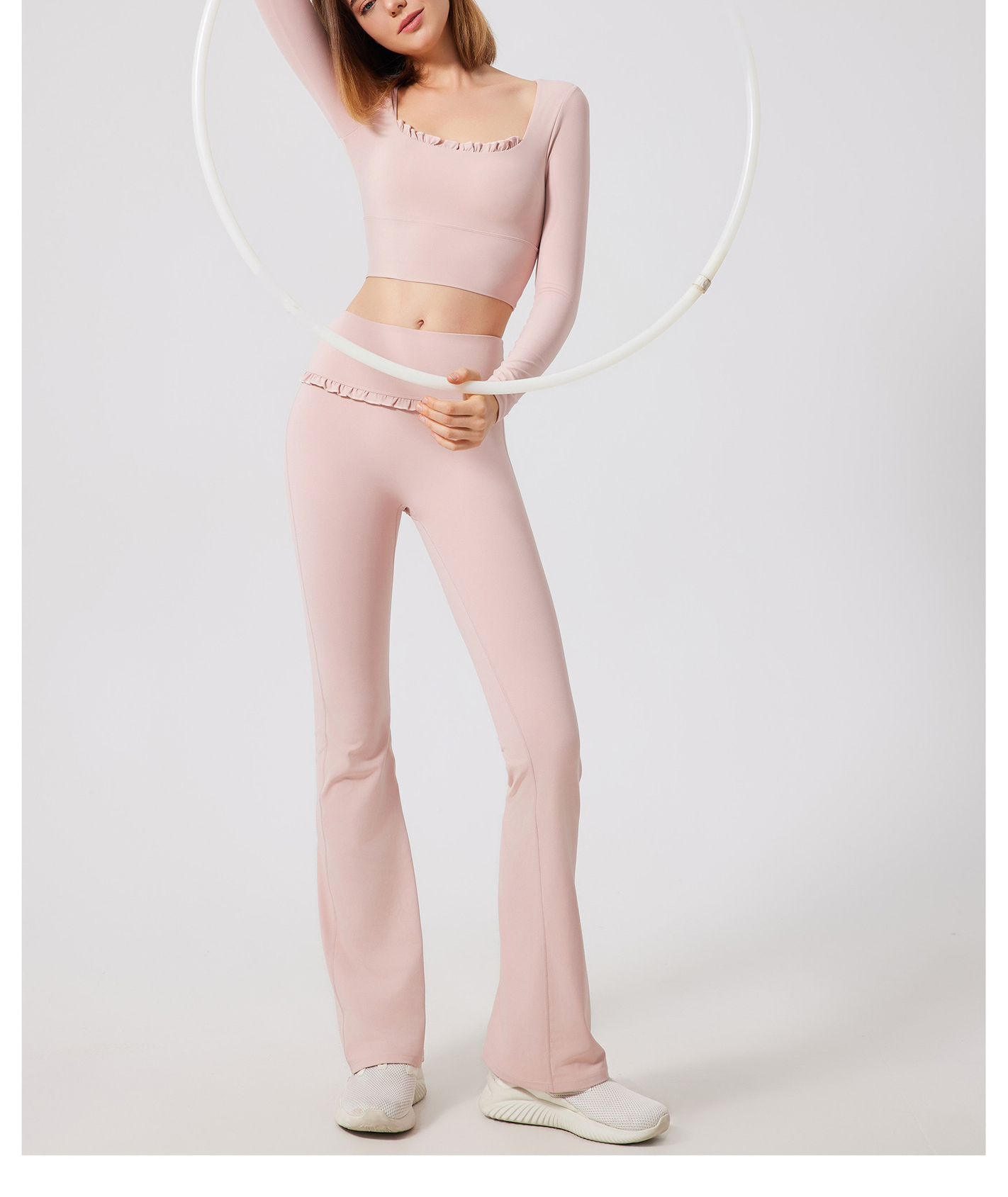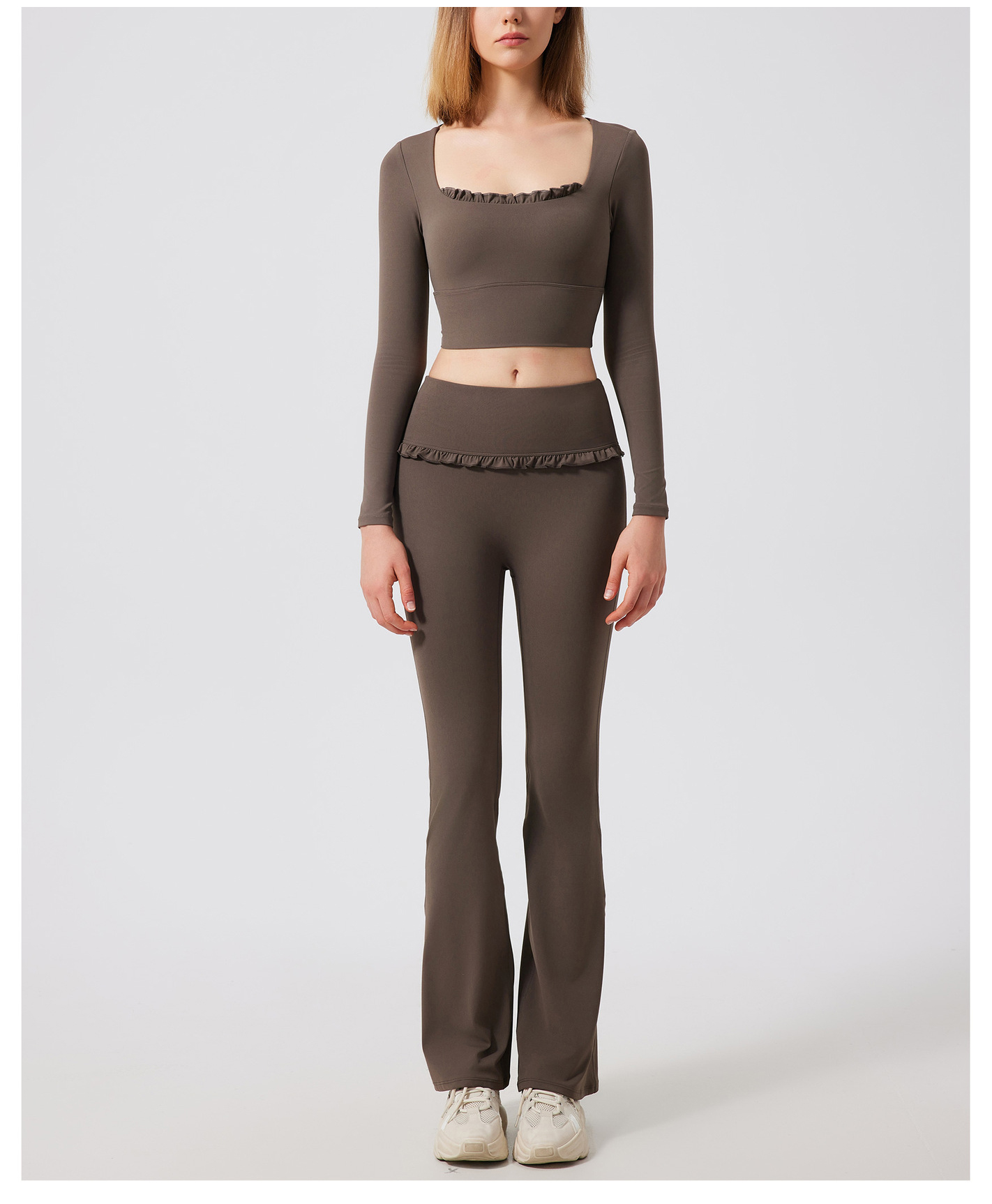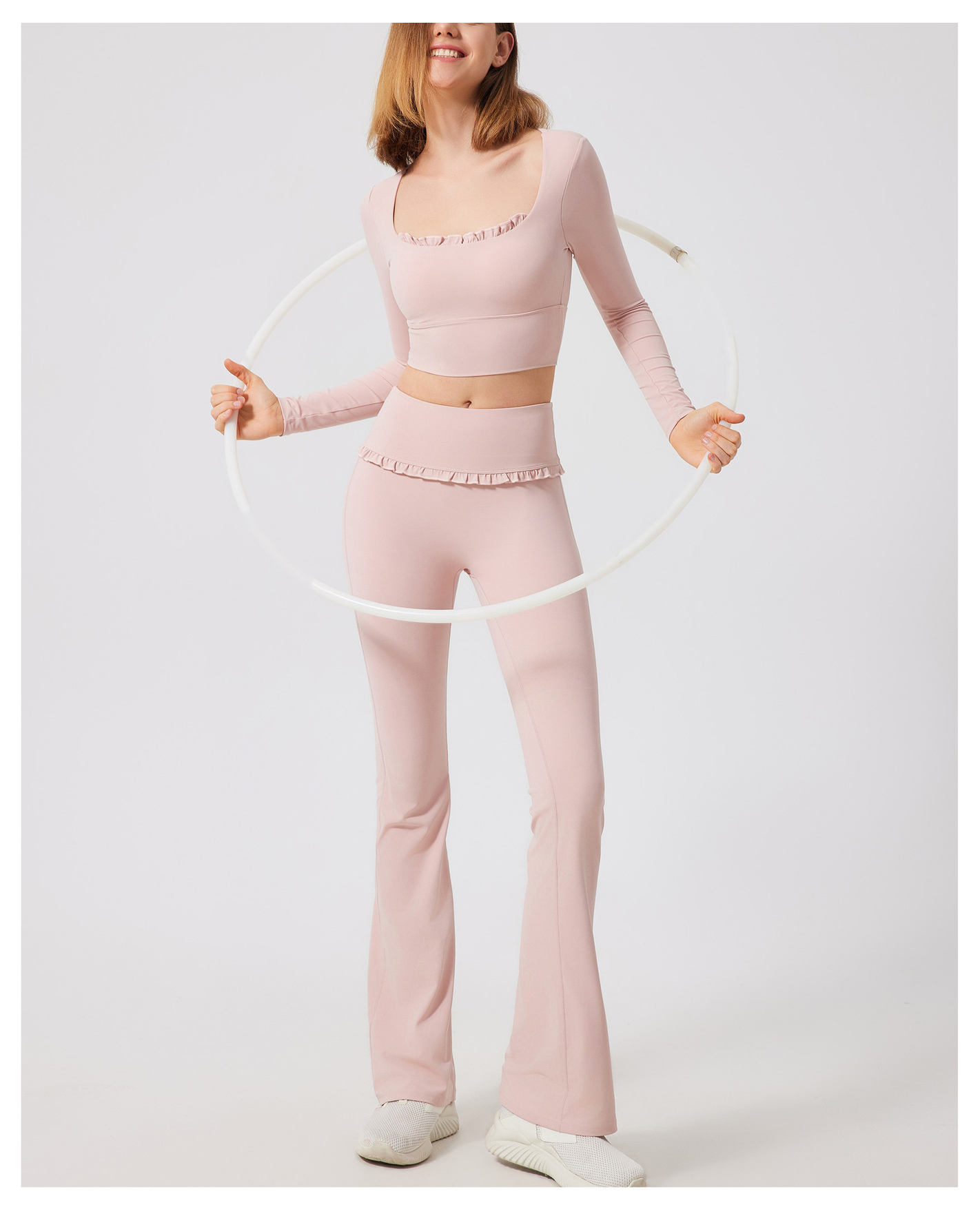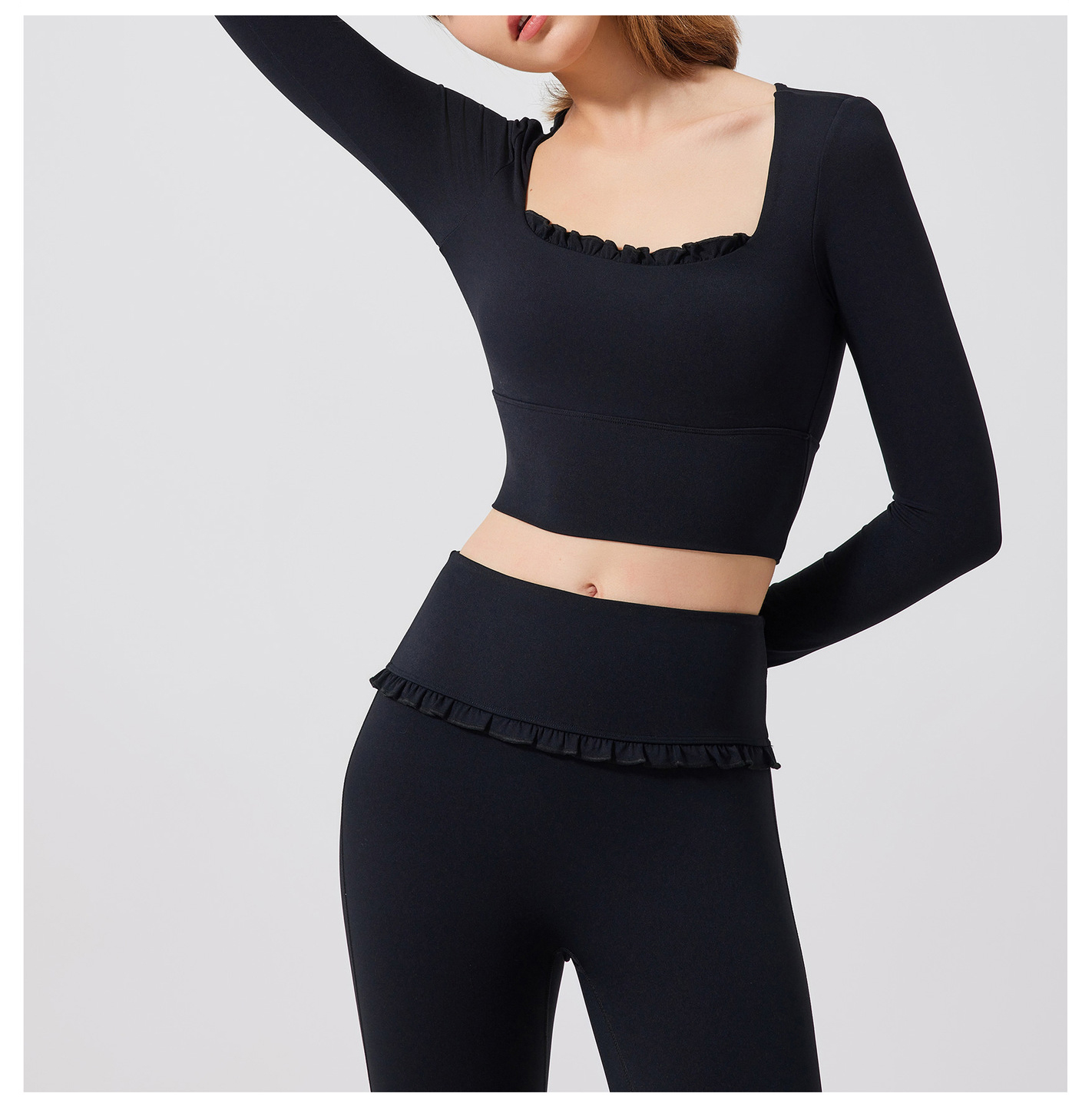 跃牌【禅语梵心】秋冬裸感花边瑜伽服长袖半固定杯跑步修身运动文胸透气健身服上衣CX5027