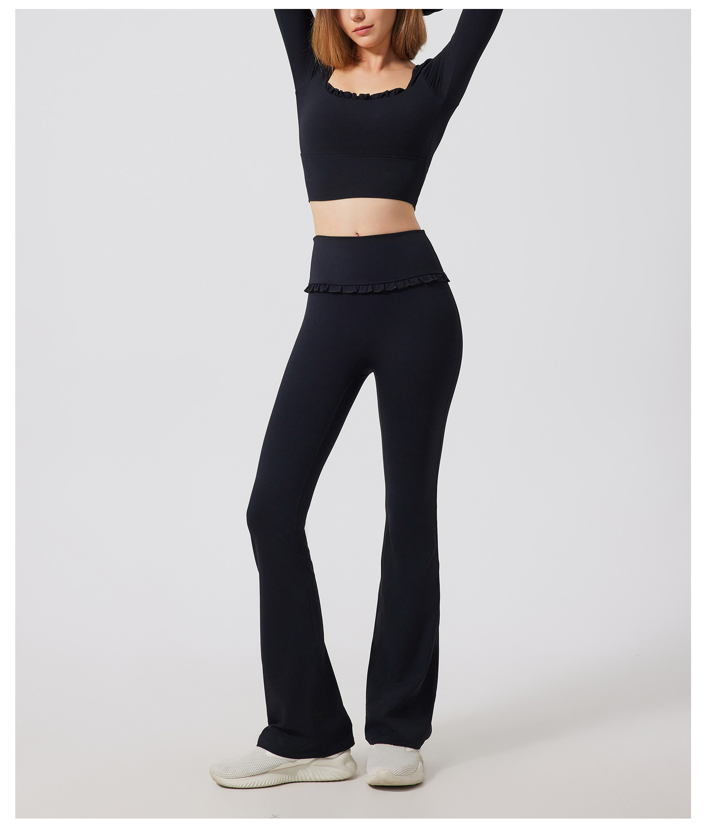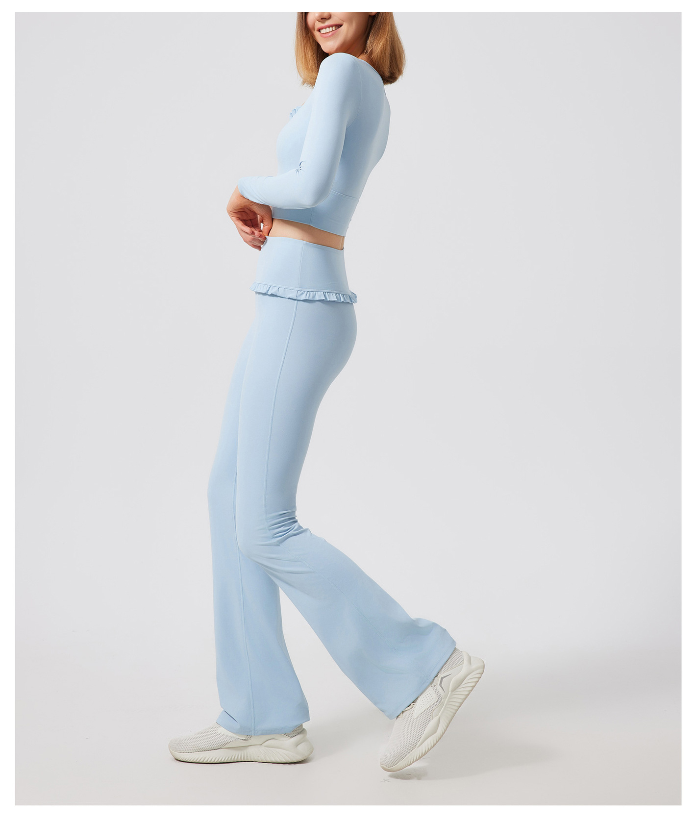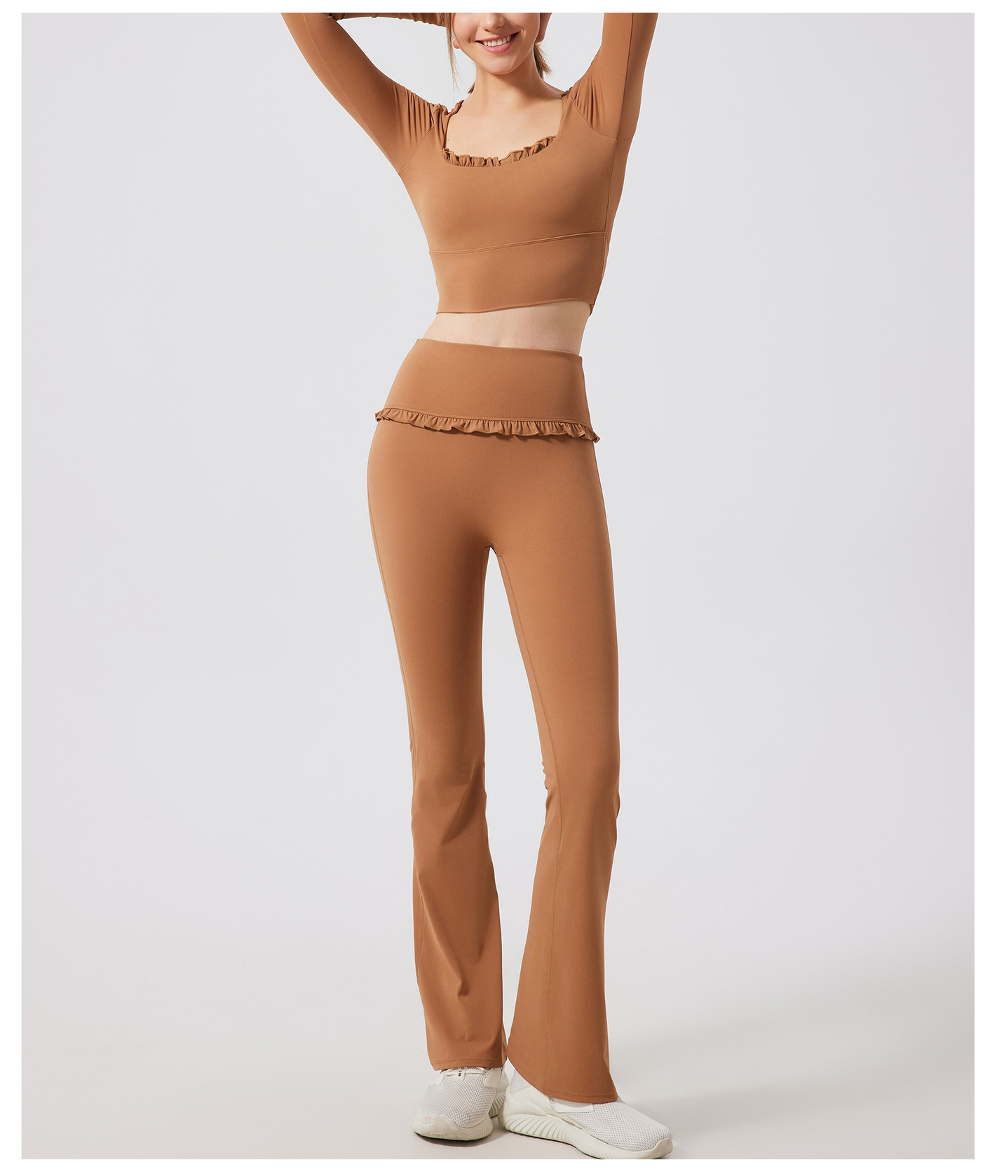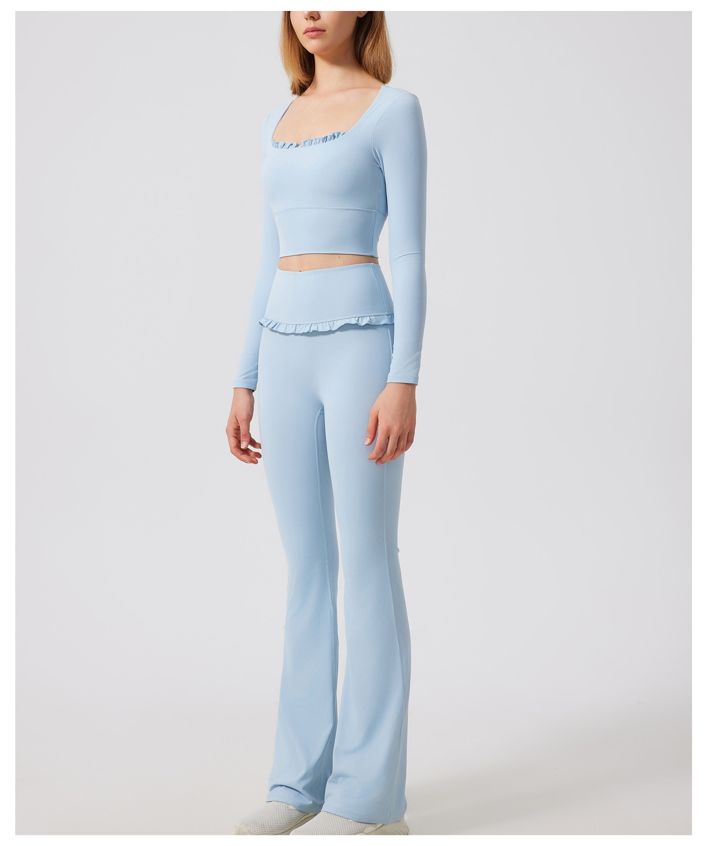 跃牌【禅语梵心】秋冬裸感花边瑜伽服长袖半固定杯跑步修身运动文胸透气健身服上衣CX5027