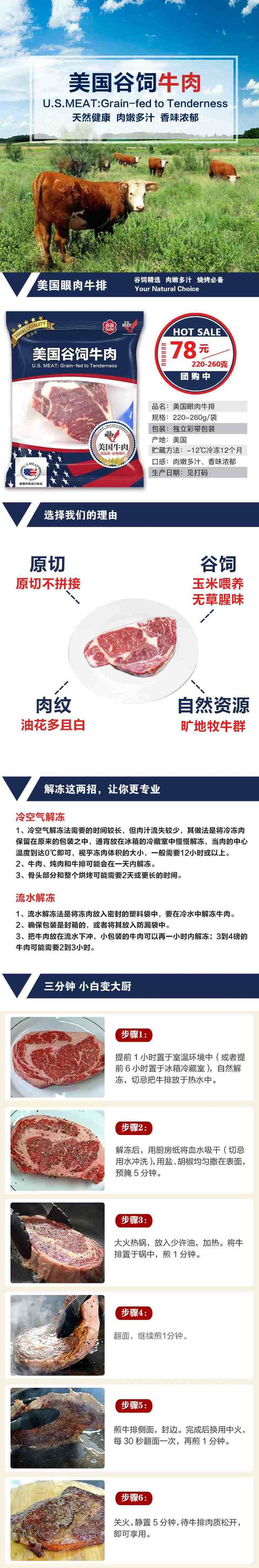 美国谷饲眼肉牛排(220-260g)【021】